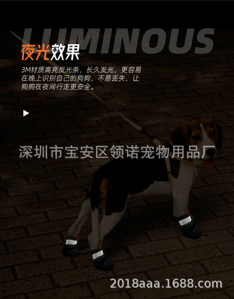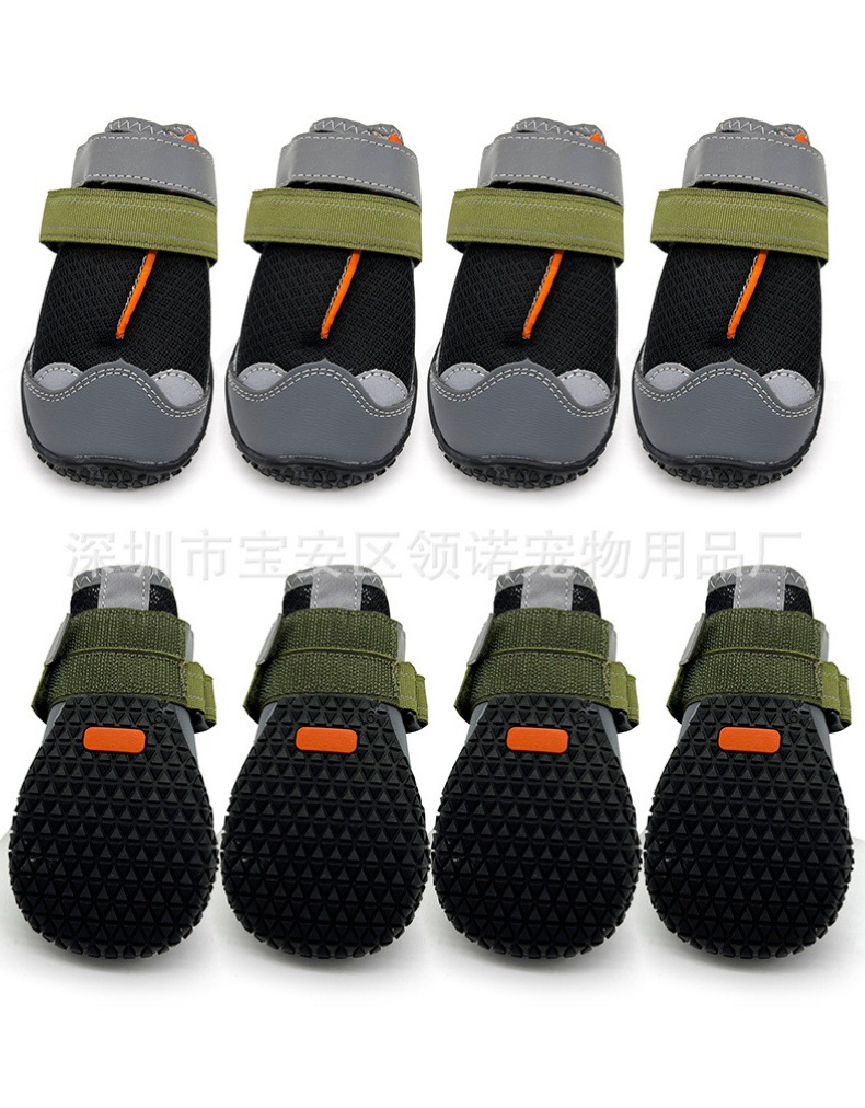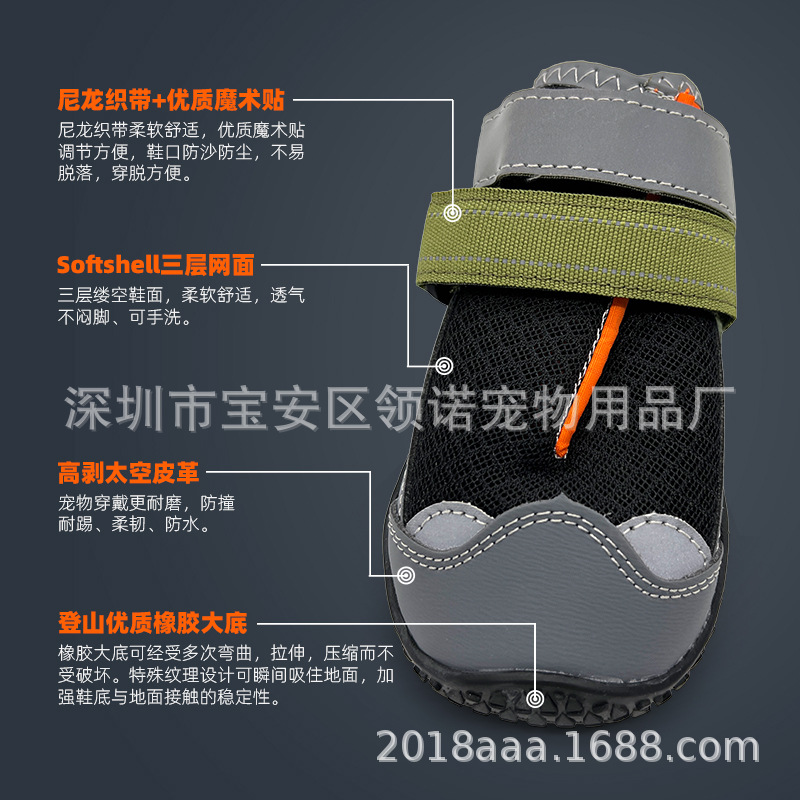 【本品特点】:本品采用定制9孔网设计,提供良好的透气性;高亮反光条增强夜间可见性,提升性;防尘超纤布料防撞耐踢,易清洗维护;橡胶大底提供稳定抓地力,支撑宠物足部。这些特点结合在一起,让这款宠物鞋具有透气、、易清洁和支撑的优势,为您的爱宠带来的穿着体验。