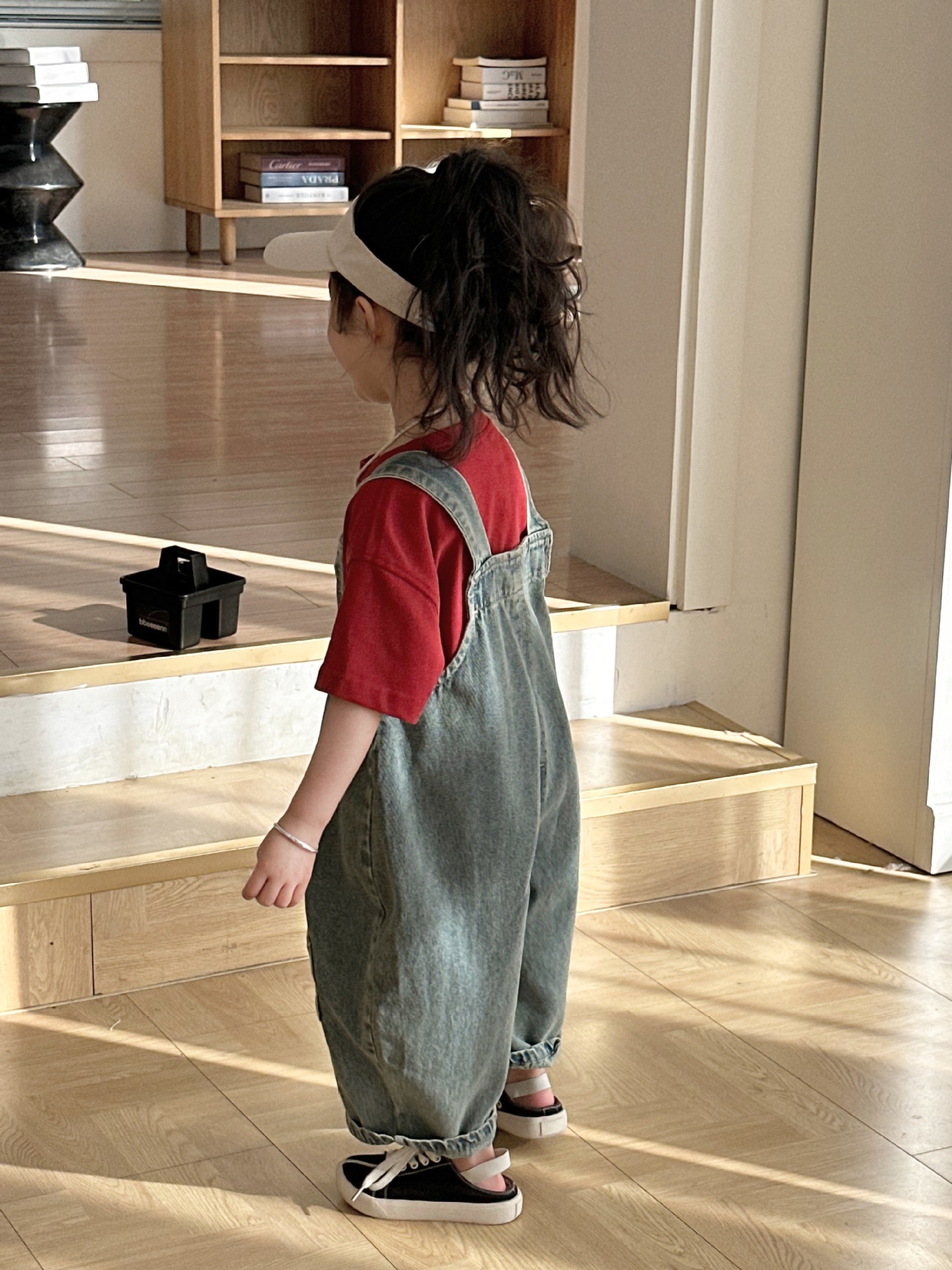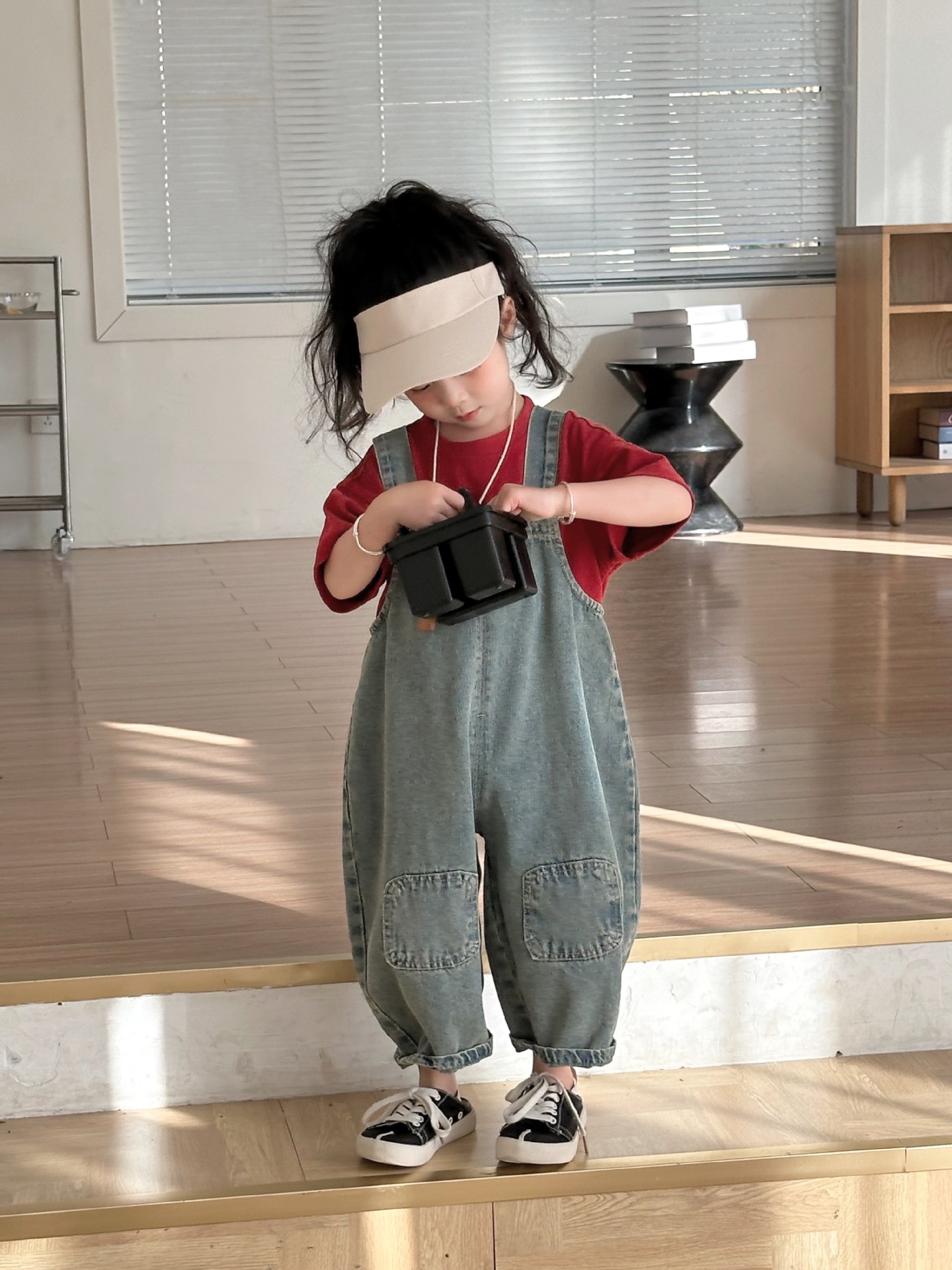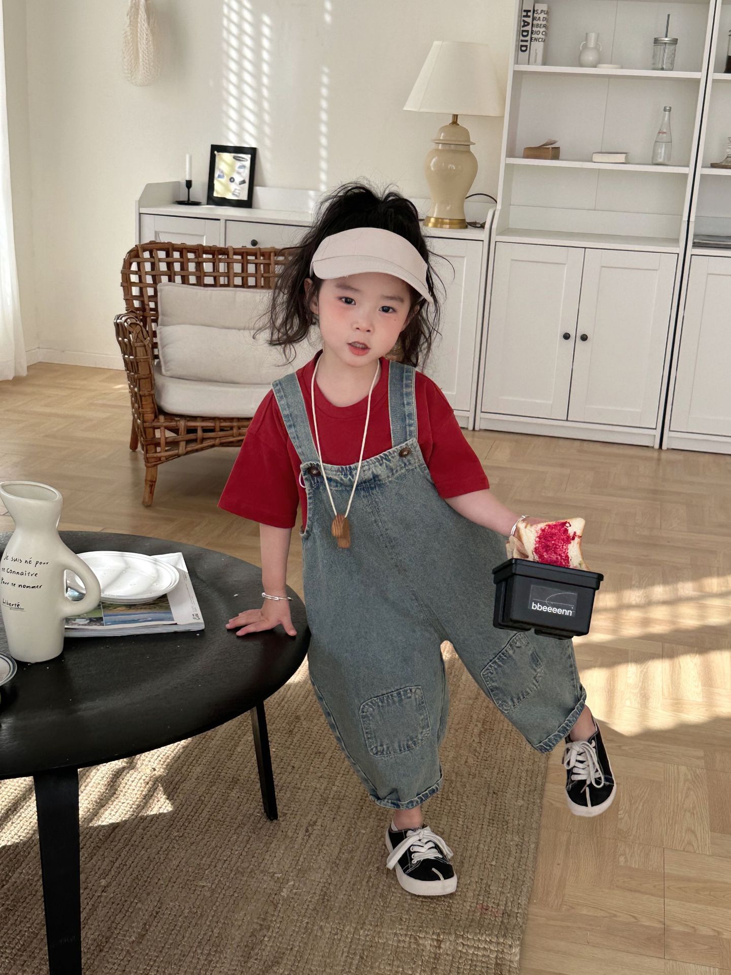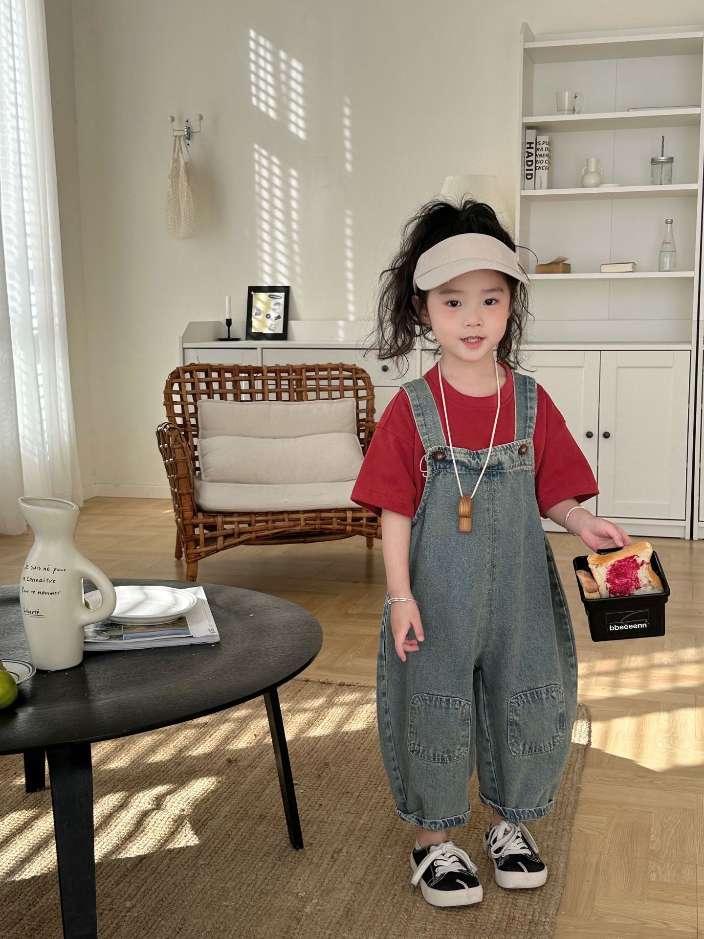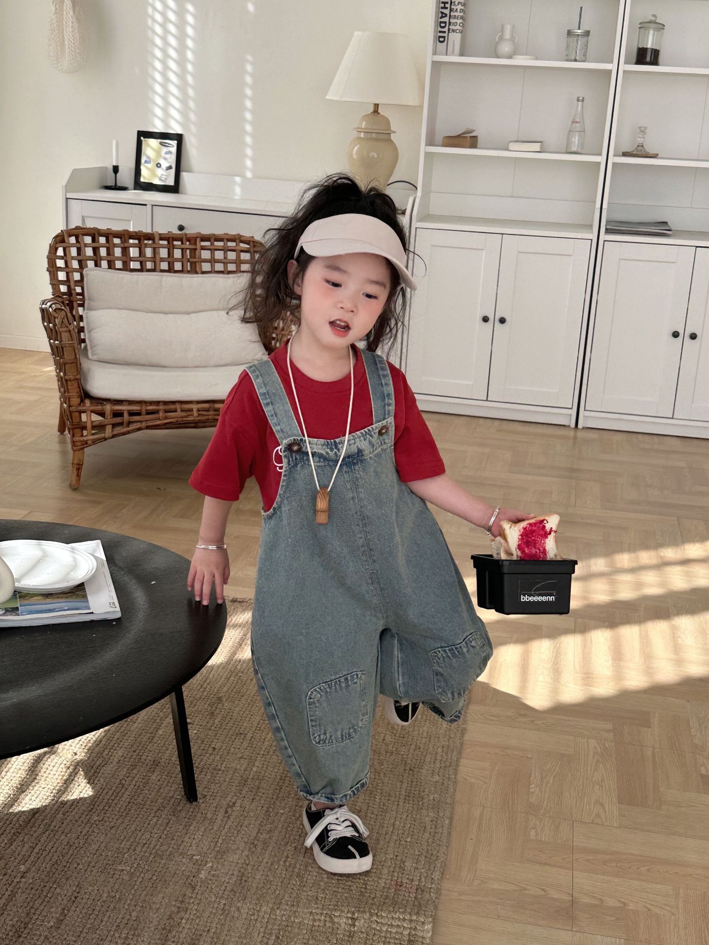 2024 여름 새 소녀 복고풍 패치 데님 서스펜더 바지 한국식 아기 소년의 귀여운 서스펜더 점프 수트스토어 가기