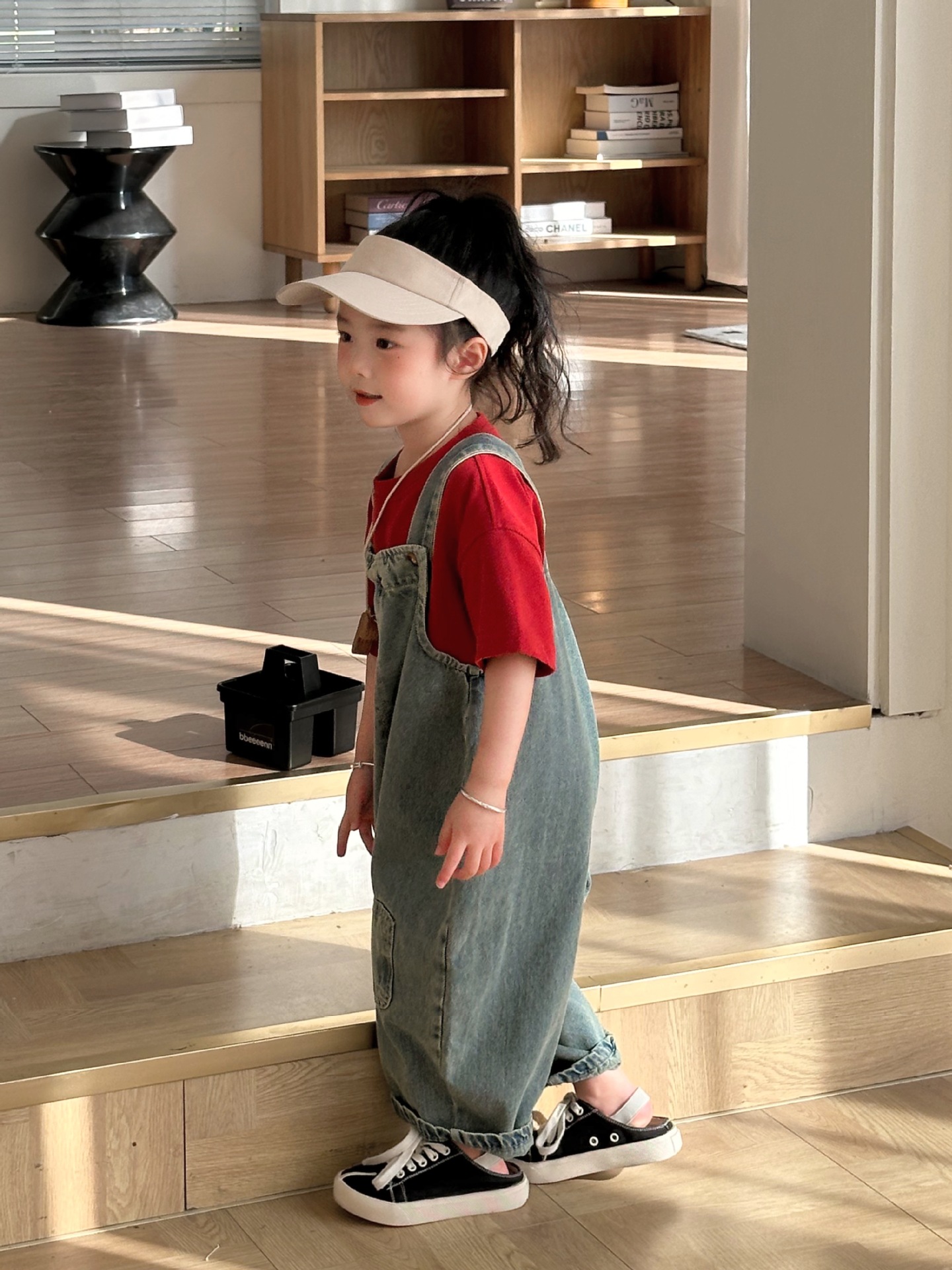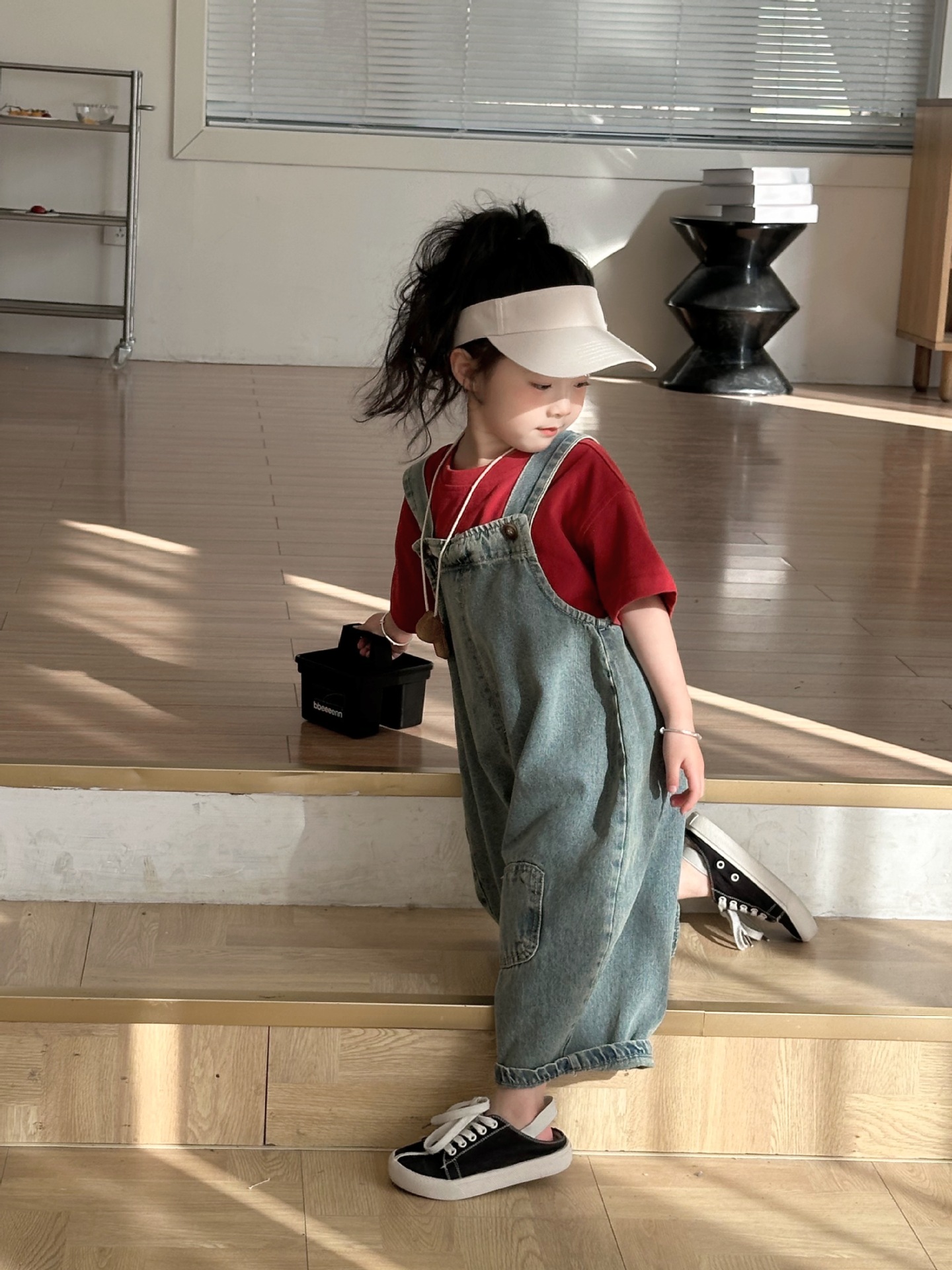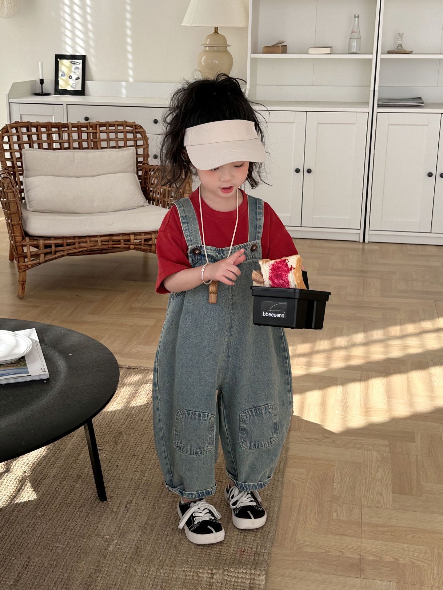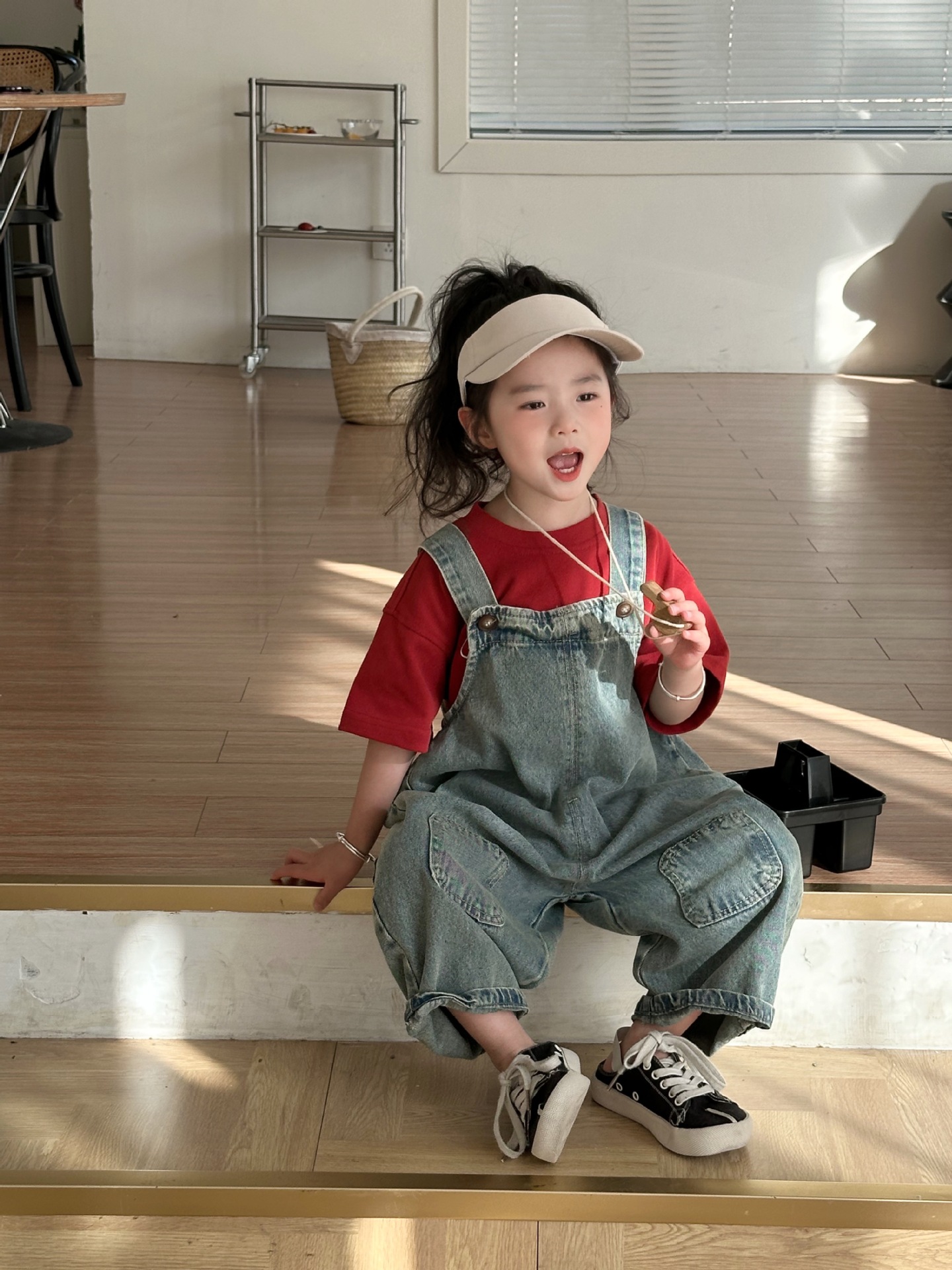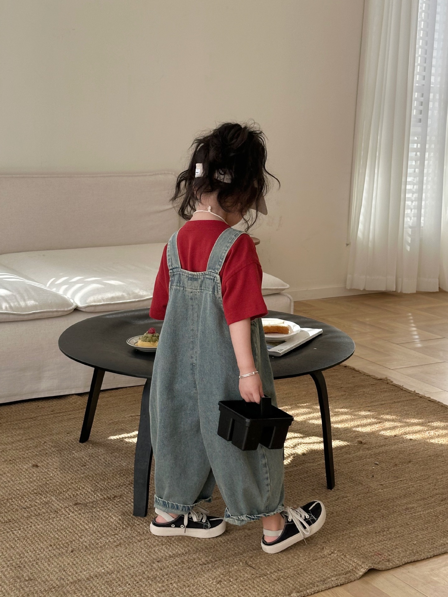 2024 여름 새 소녀 복고풍 패치 데님 서스펜더 바지 한국식 아기 소년의 귀여운 서스펜더 점프 수트스토어 가기