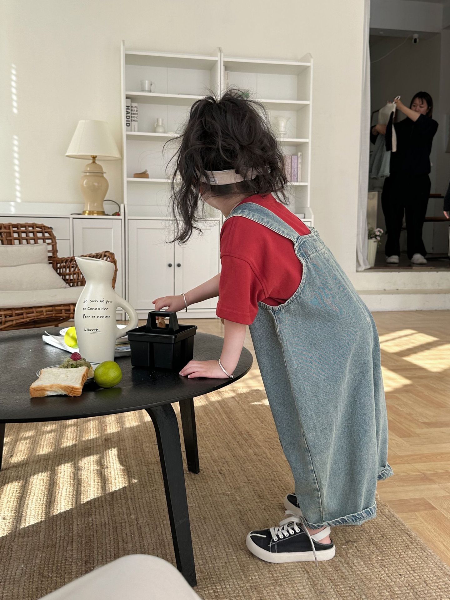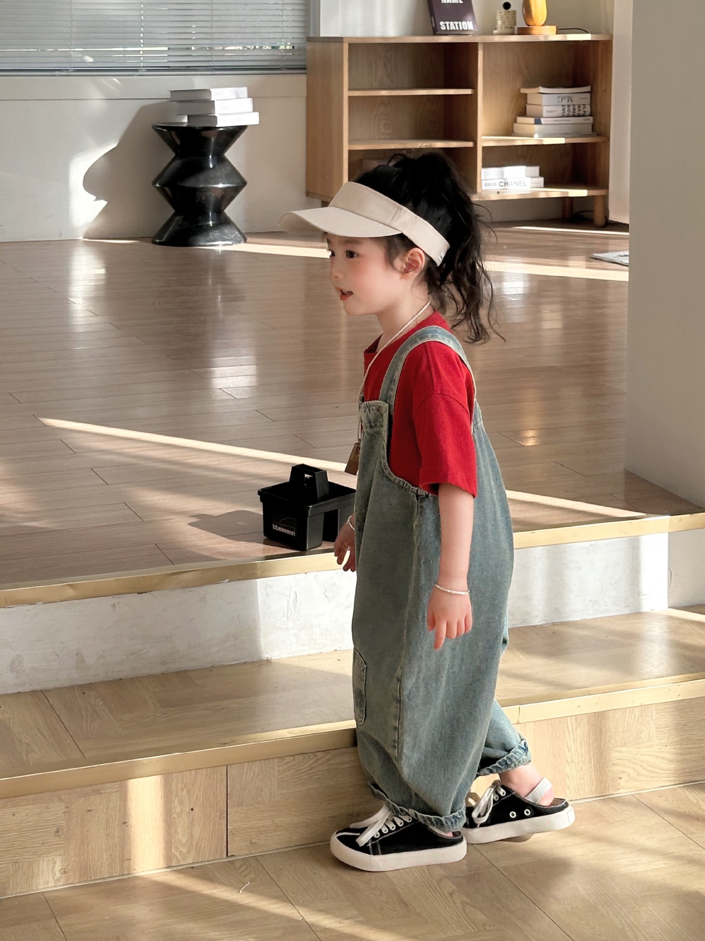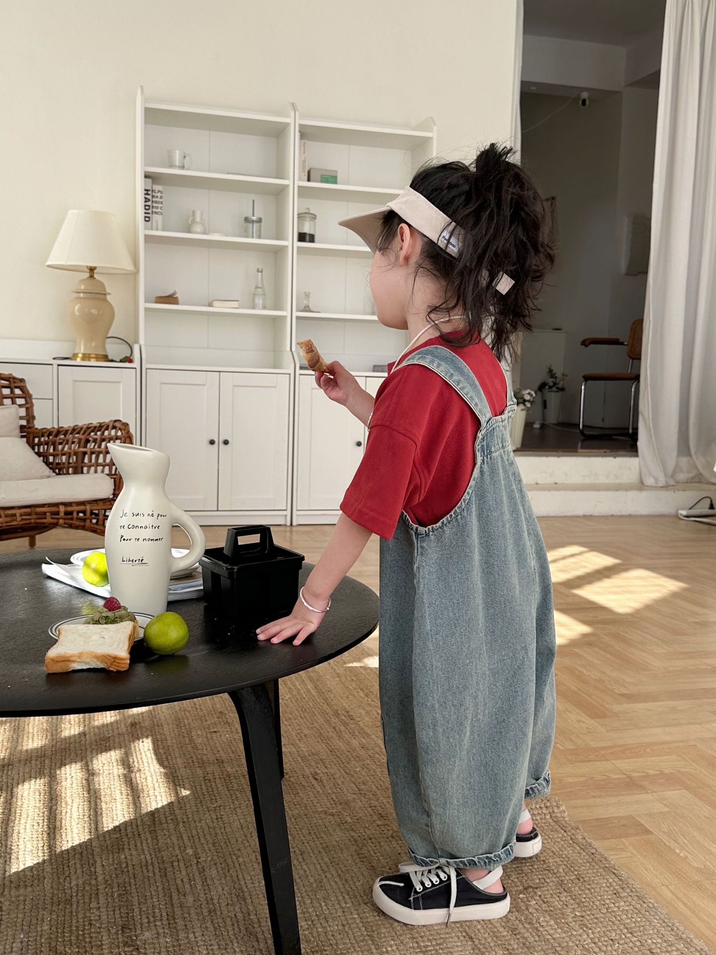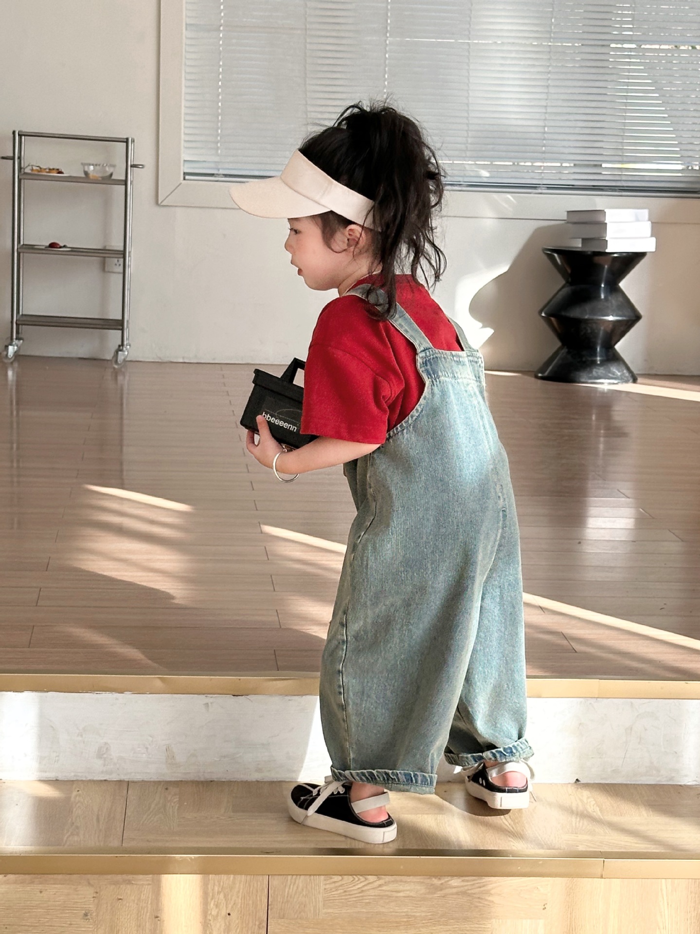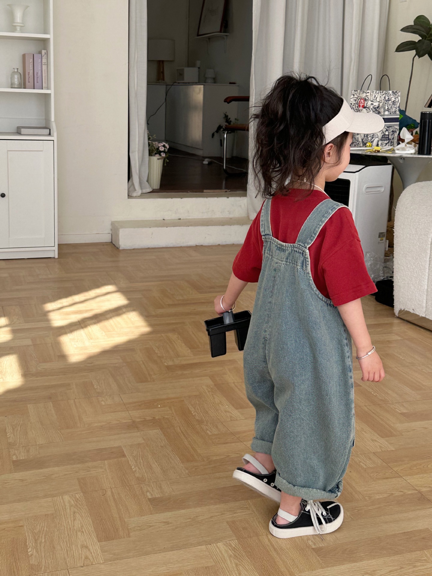 2024 여름 새 소녀 복고풍 패치 데님 서스펜더 바지 한국식 아기 소년의 귀여운 서스펜더 점프 수트스토어 가기
