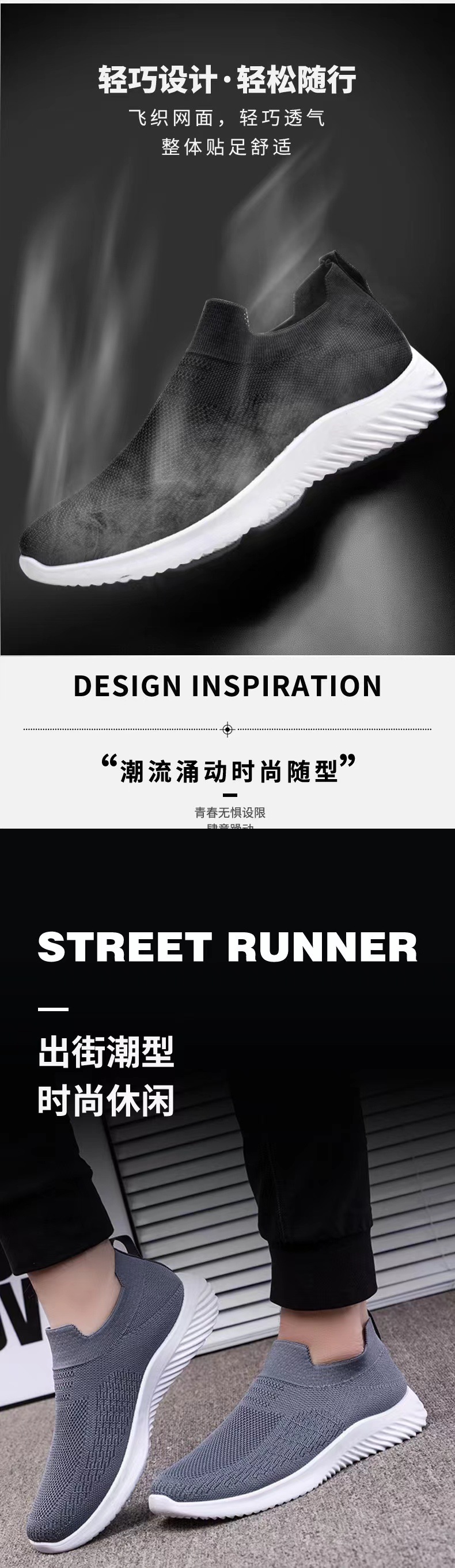 2025 봄 여름 슬립온 캐주얼 슈즈, 플랫 힐 슈즈, 남성용 대외 무역 슈즈, 양말, 플라이 니트 통기성 운동화스토어 가기