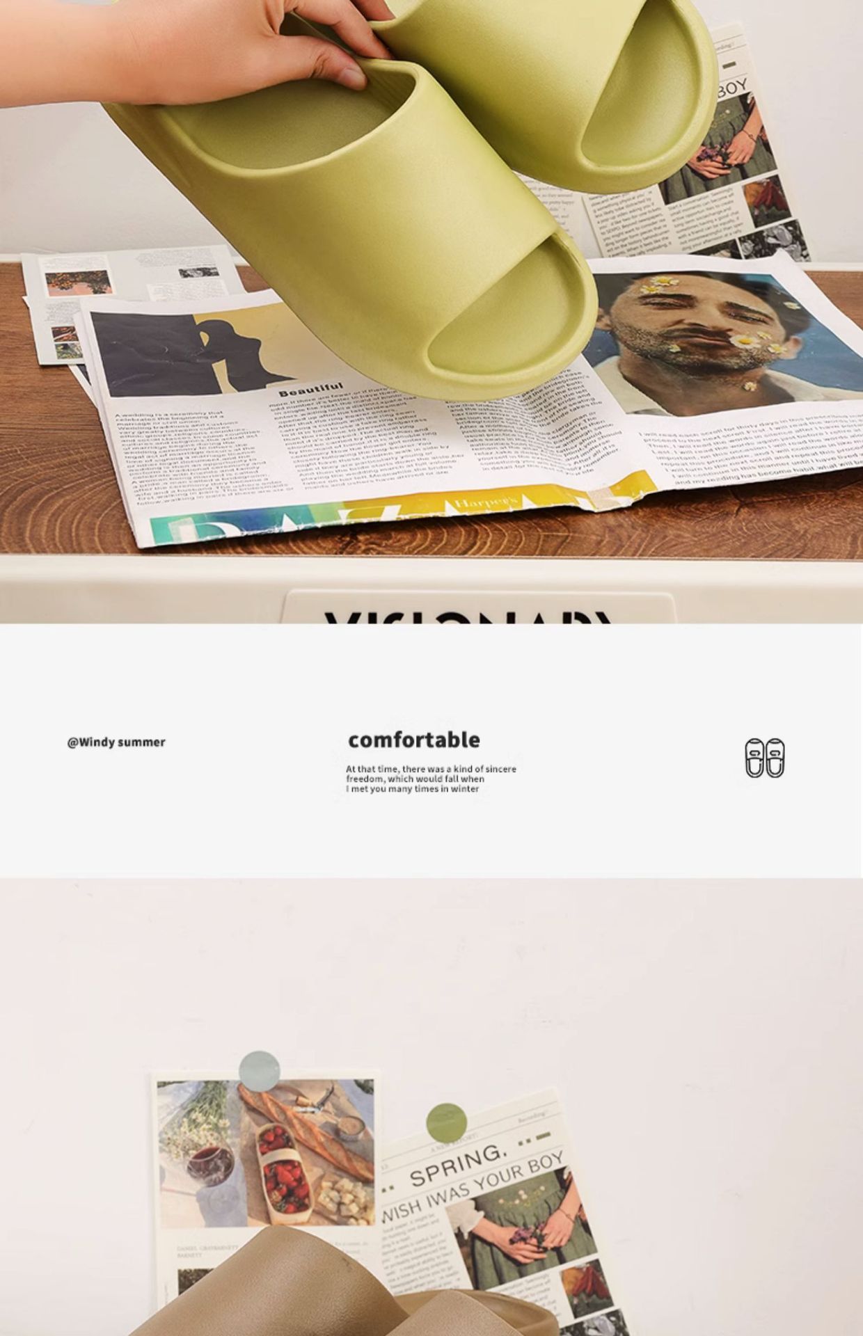 코코넛 슬리퍼, 이지 두꺼운 밑창 슬리퍼, 커플이 집과 밖에서 신을 수 있는 슬리퍼, 카니예와 같은 스타일, 통기성과 미끄럼 방지 기능