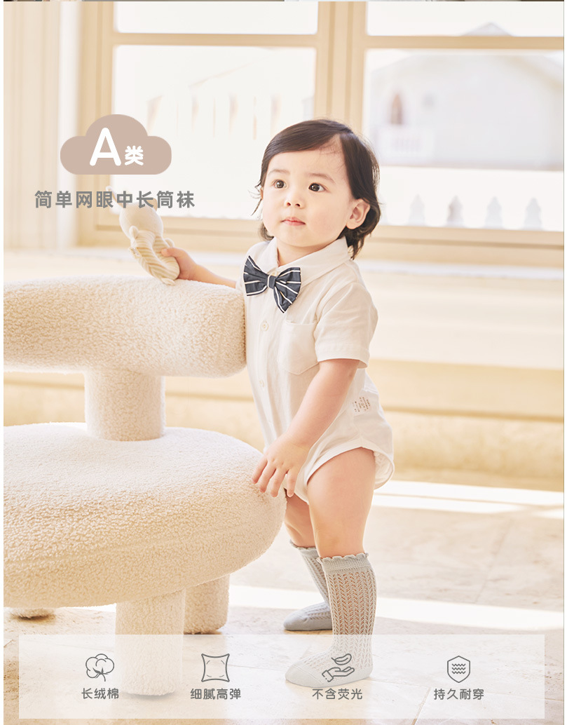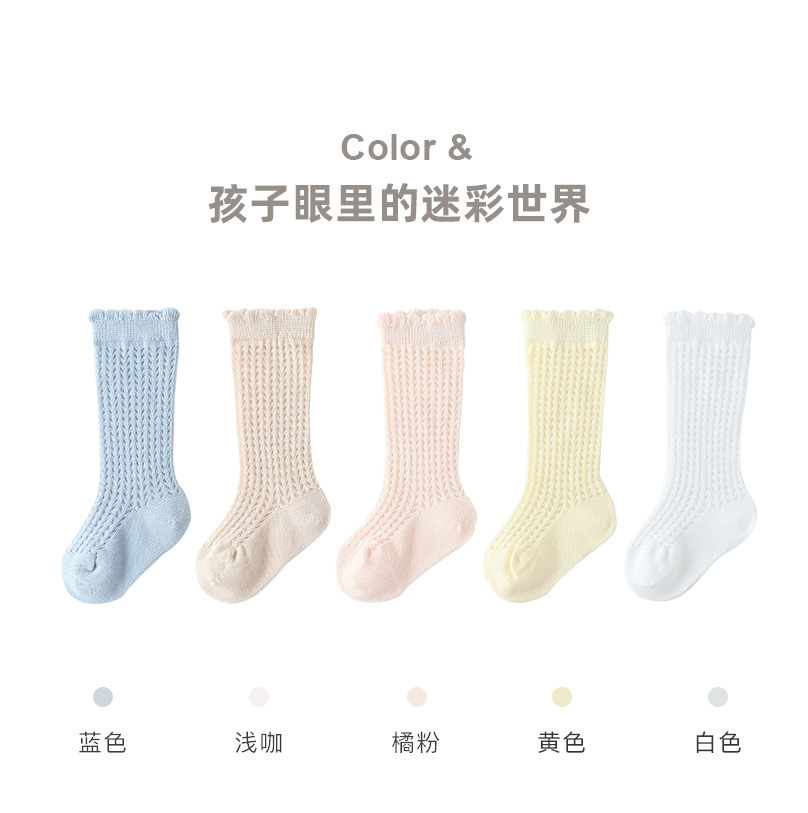 남학생과 여학생을위한 24 여름 일반 메쉬 중간 종아리 길이 양말 작은 달 신생아 도매 원피스 배달 아기 양말