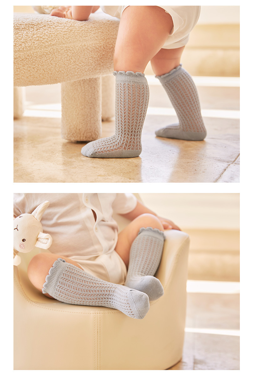 남학생과 여학생을위한 24 여름 일반 메쉬 중간 종아리 길이 양말 작은 달 신생아 도매 원피스 배달 아기 양말스토어 가기