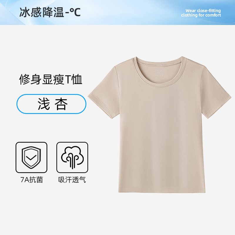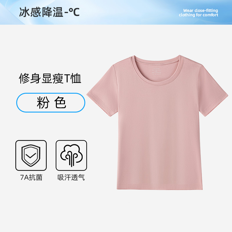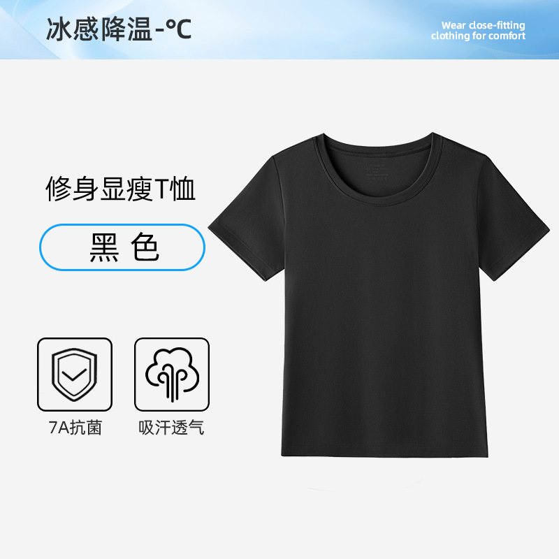 양면 모달 쿨 센스 여성 여름 솔리드 컬러 숄더 짧은 소매 티셔츠 남성과 여성의 크루 넥 7A 항균 헤어