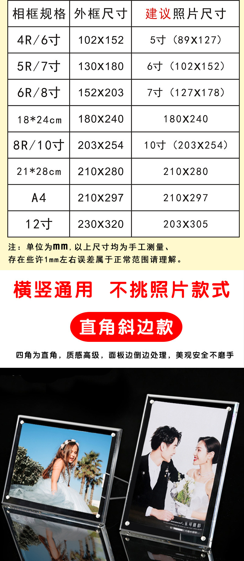 국경을 넘어 인기 있는 아크릴 액자 67810inch 사진 액자 디스플레이 액자 자석 스탠드 액자 도매
