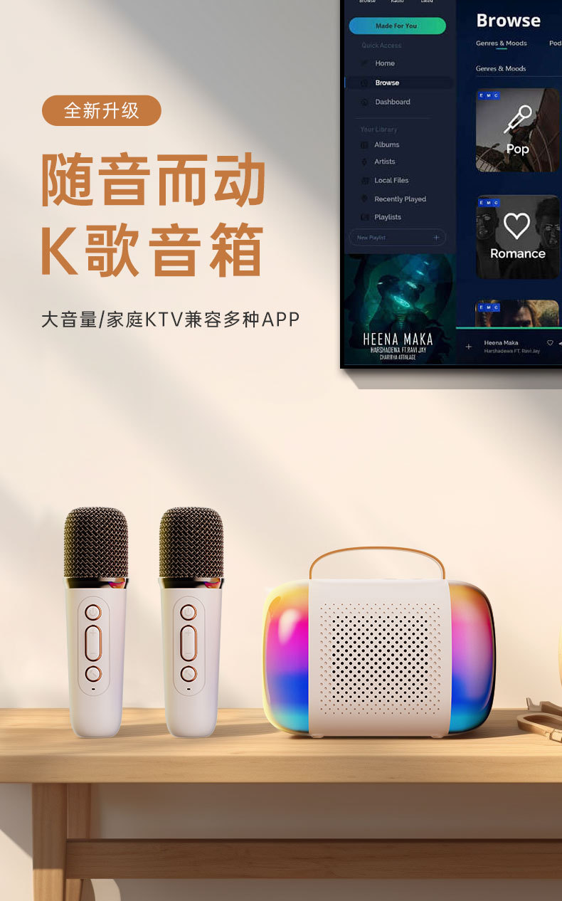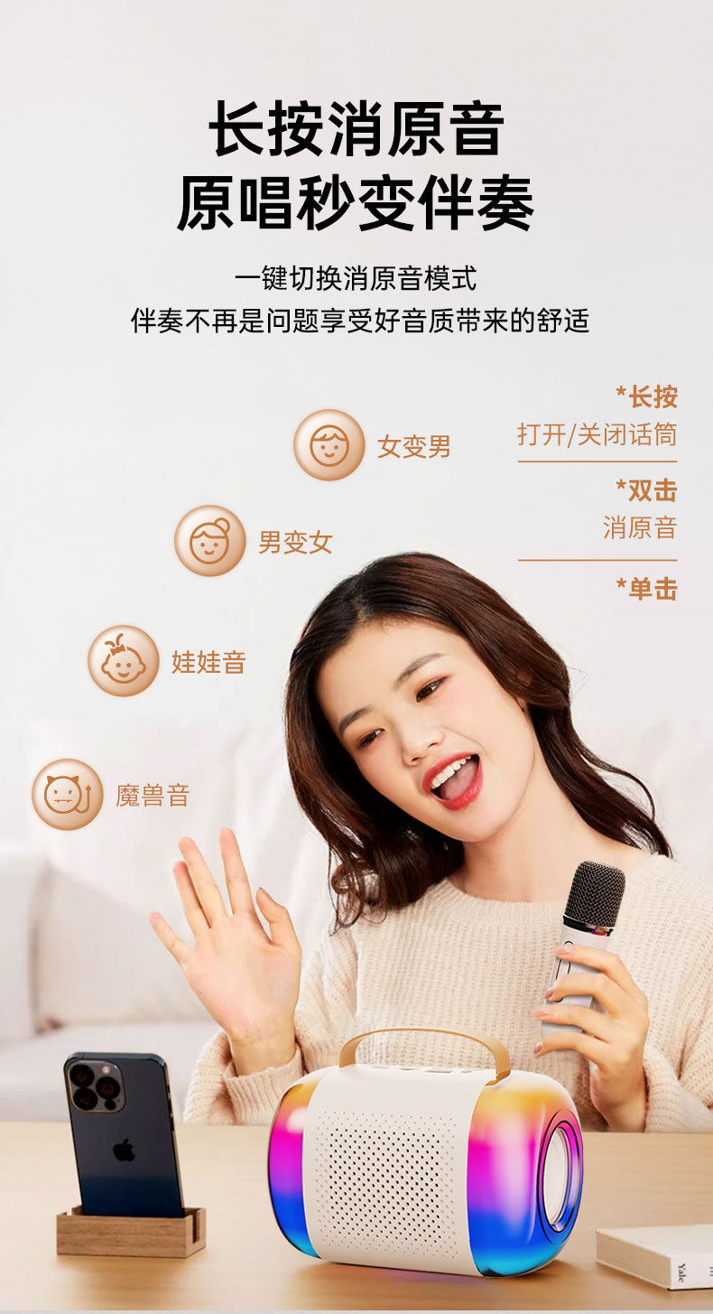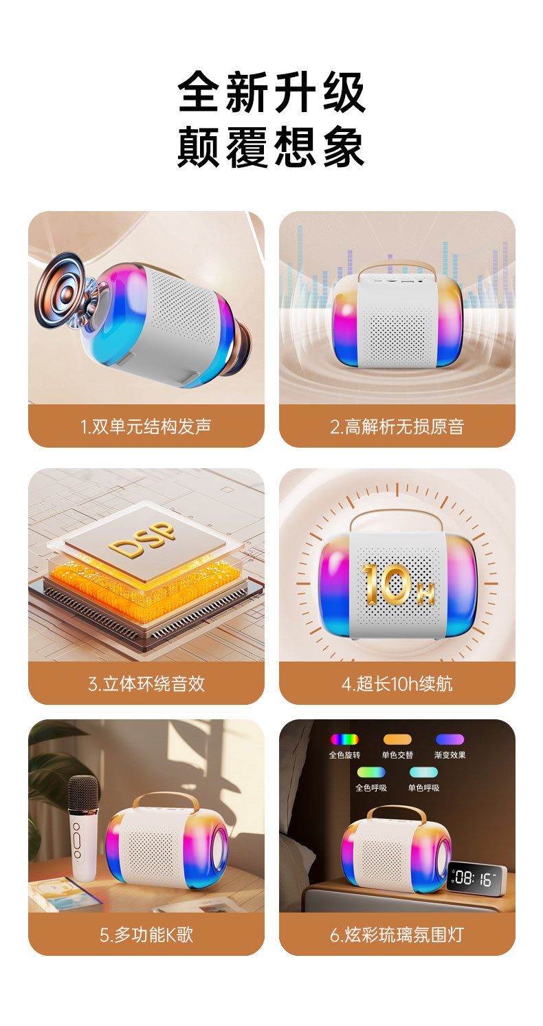 폭발 Y5K 노래 보물 홈 무선 노래하는 블루투스 스피커 K 노래 오디오 마이크 작은 가족 KTV스토어 가기