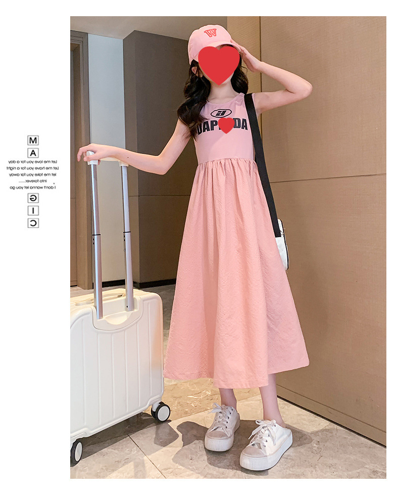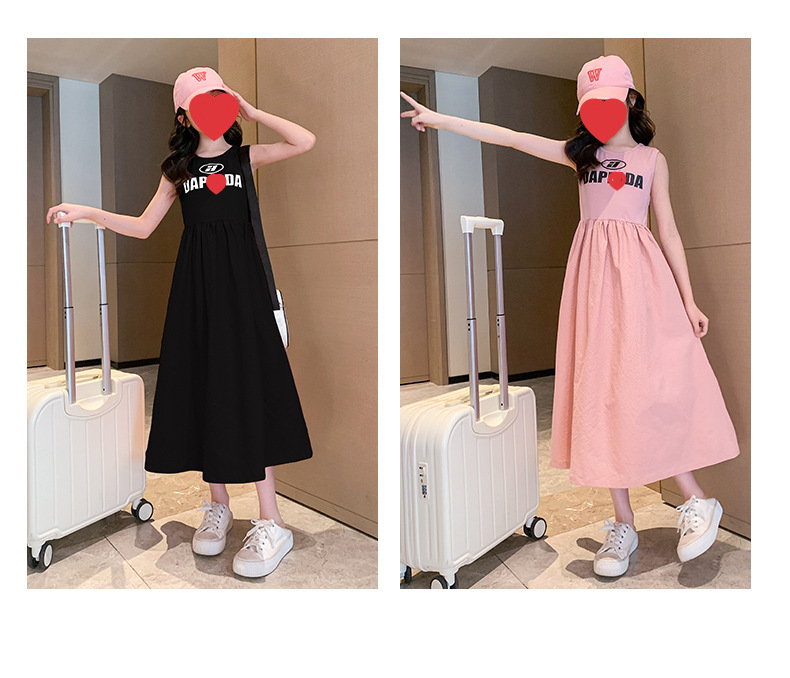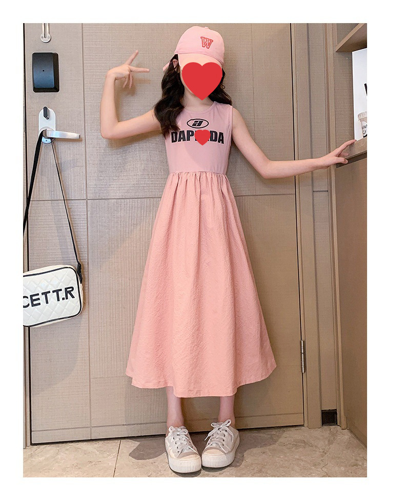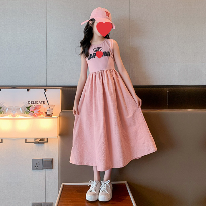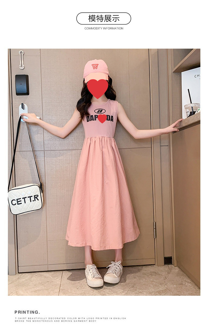 소녀 아기 한국 스타일 서양식 단색 민소매 원피스 어린이 여름 새로운 유행 편지 캐주얼 공주 원피스스토어 가기