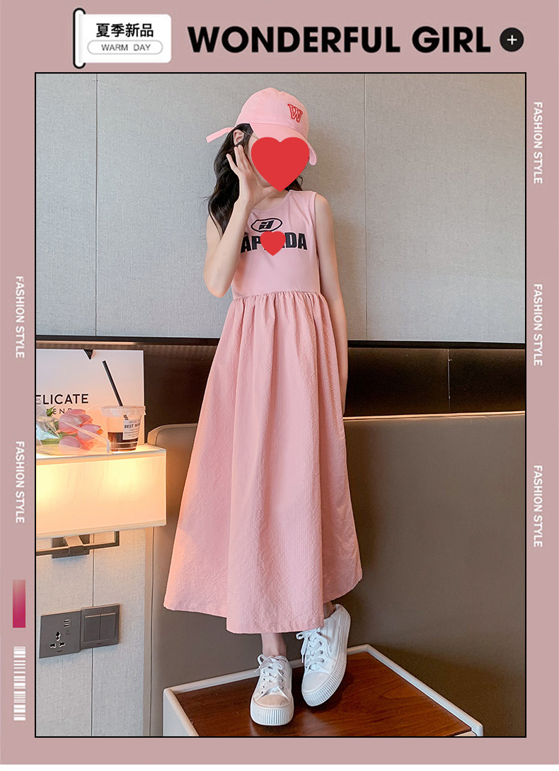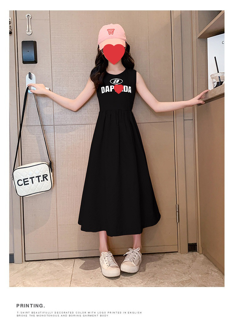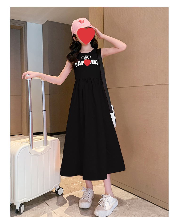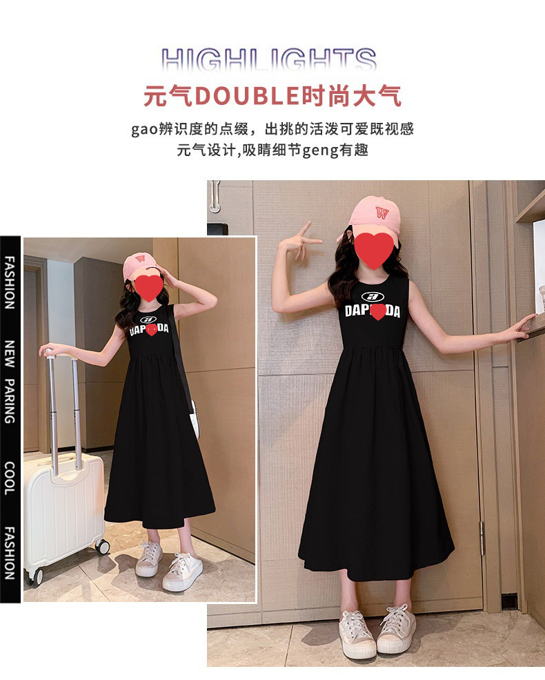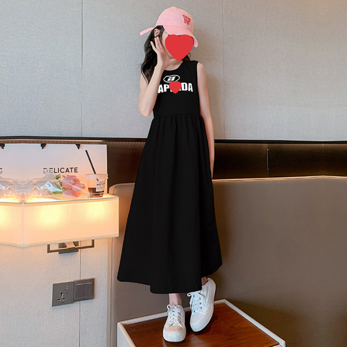 소녀 아기 한국 스타일 서양식 단색 민소매 원피스 어린이 여름 새로운 유행 편지 캐주얼 공주 원피스스토어 가기