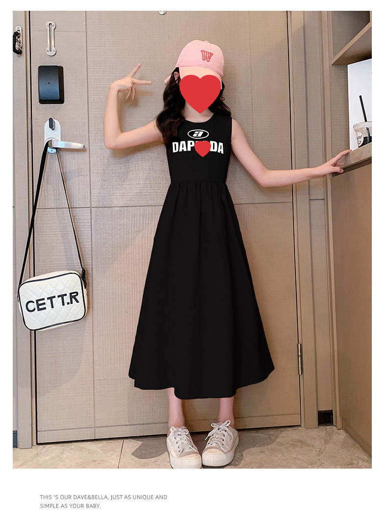 소녀 아기 한국 스타일 서양식 단색 민소매 원피스 어린이 여름 새로운 유행 편지 캐주얼 공주 원피스