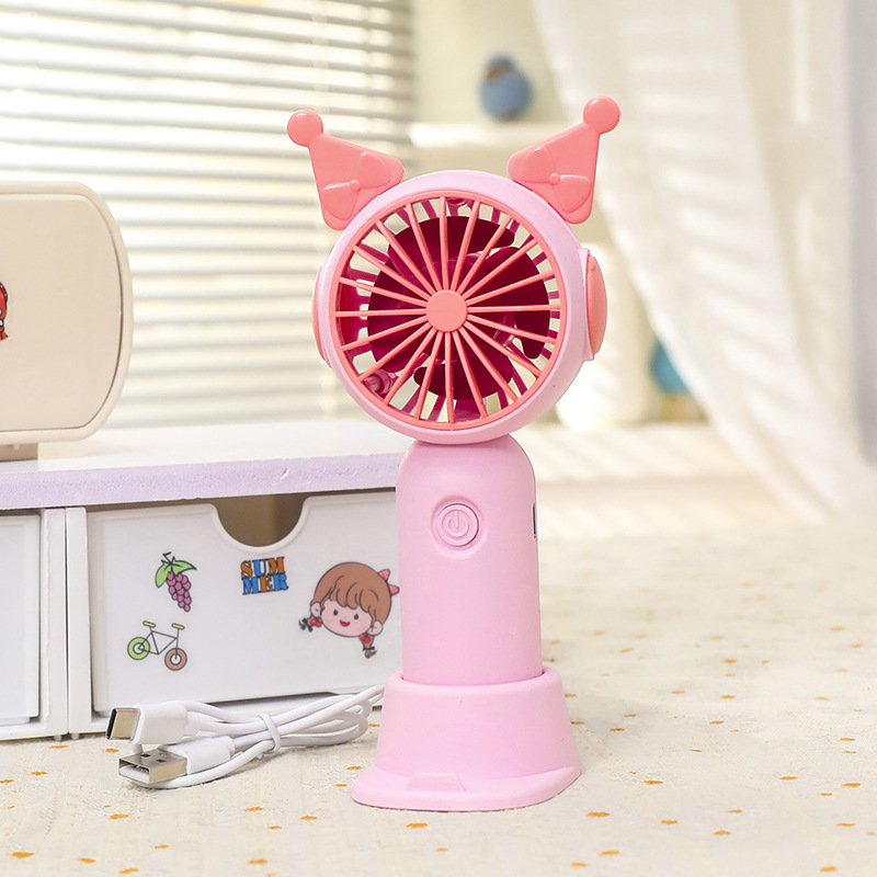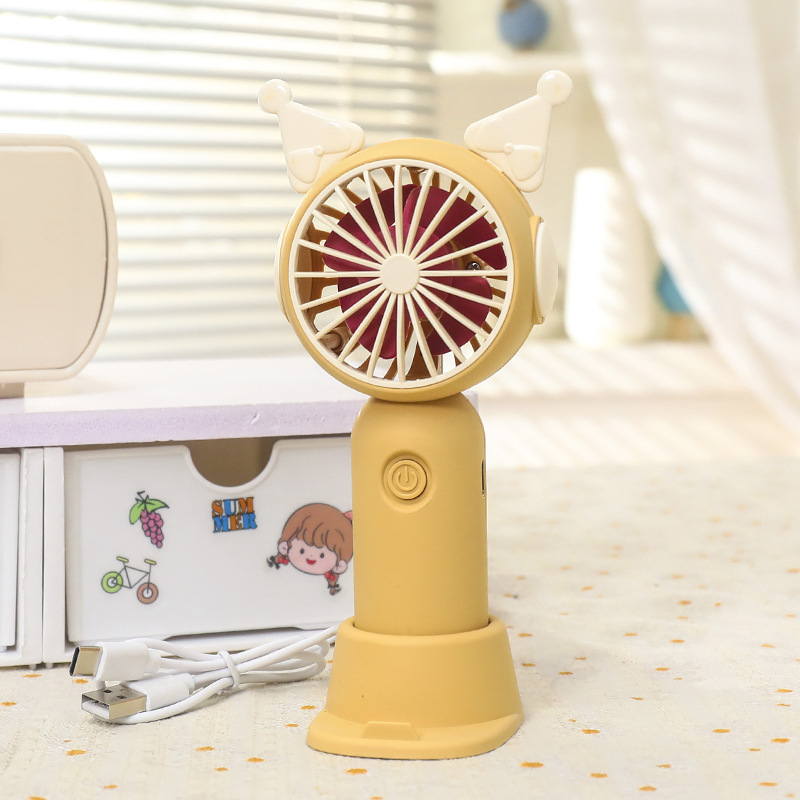 귀여운 만화 귀 디자인의 휴대용 충전식 미니 선풍기, 학생용 휴대폰 거치대 겸용 데스크탑 팬