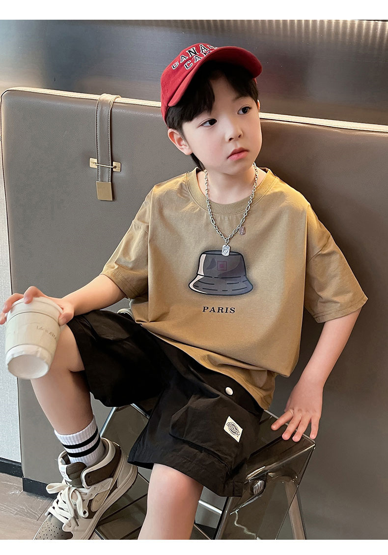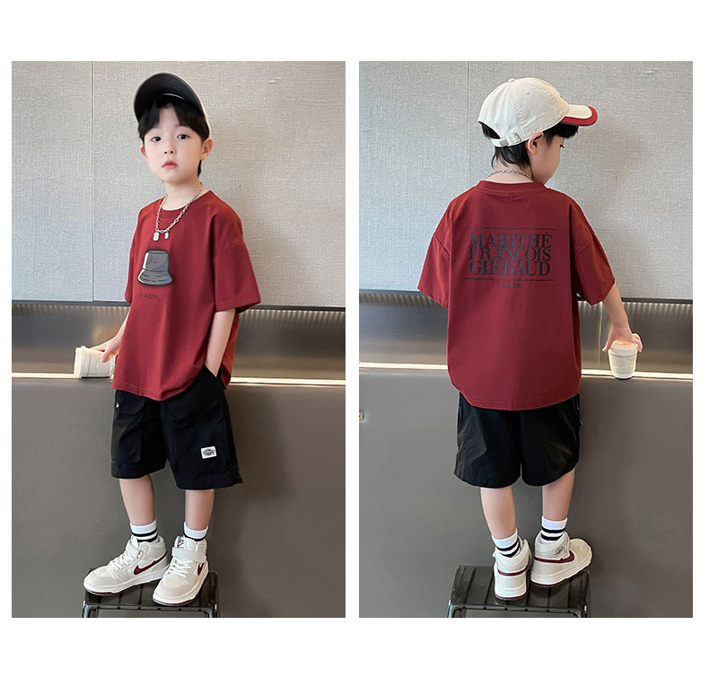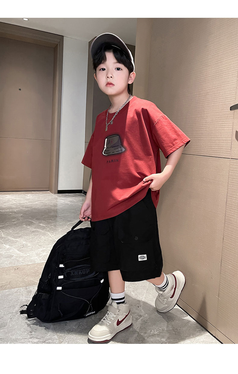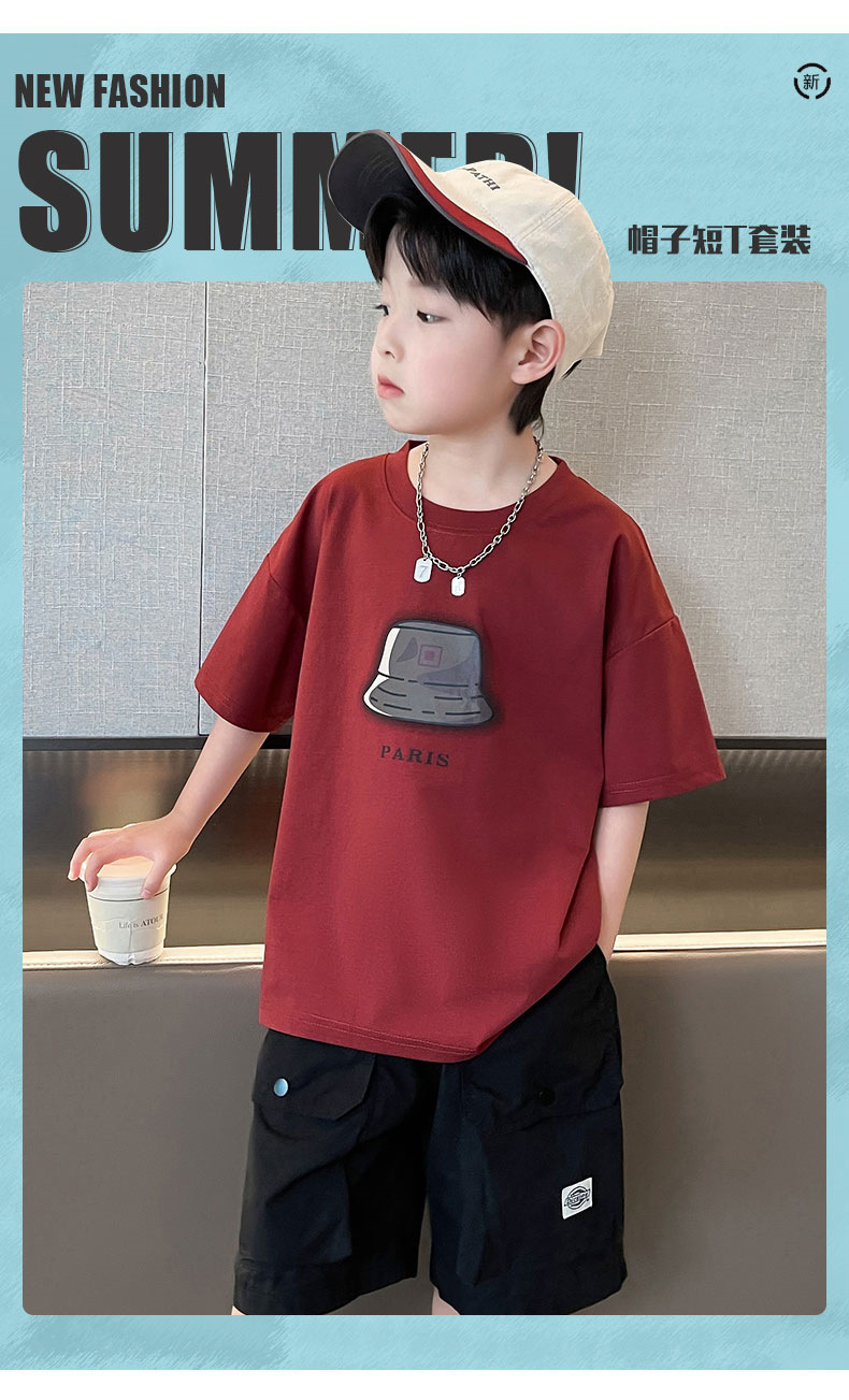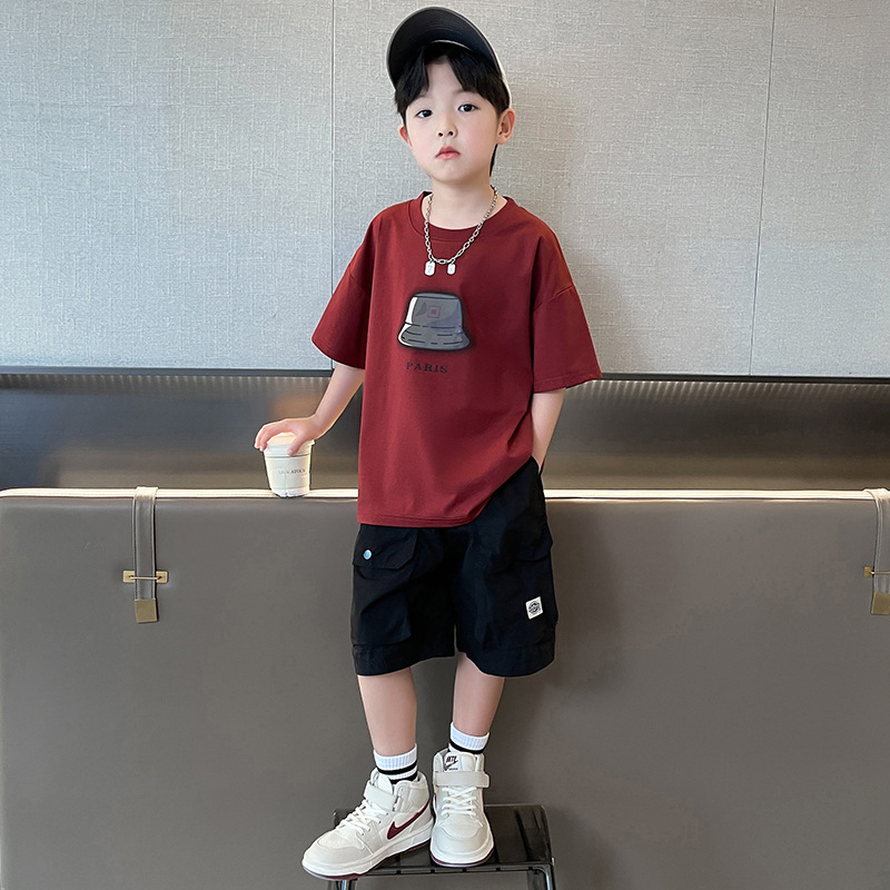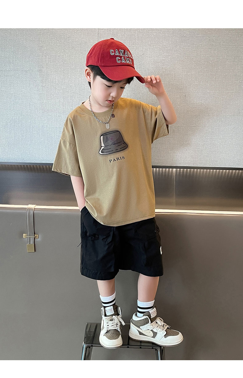 아동복 소년 정장 여름 옷 2025 새로운 중대형 어린이 여름 얇은 반팔 티셔츠 투피스 세트 유행 t스토어 가기
