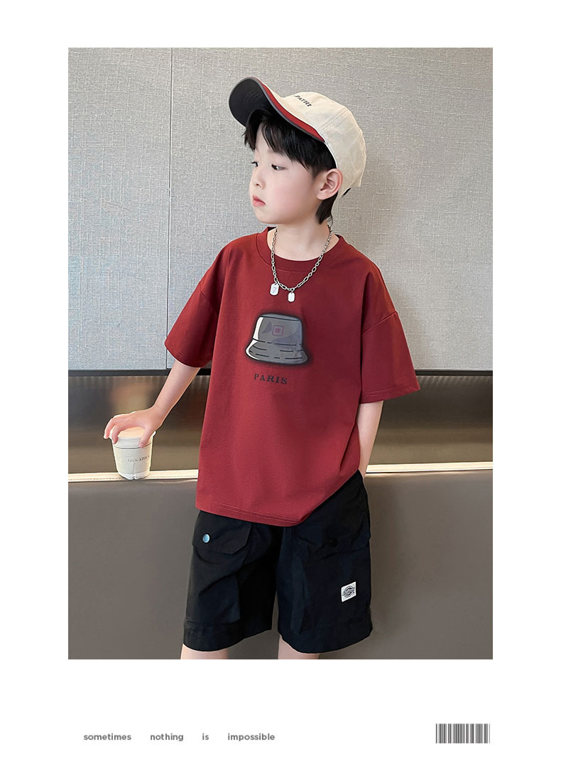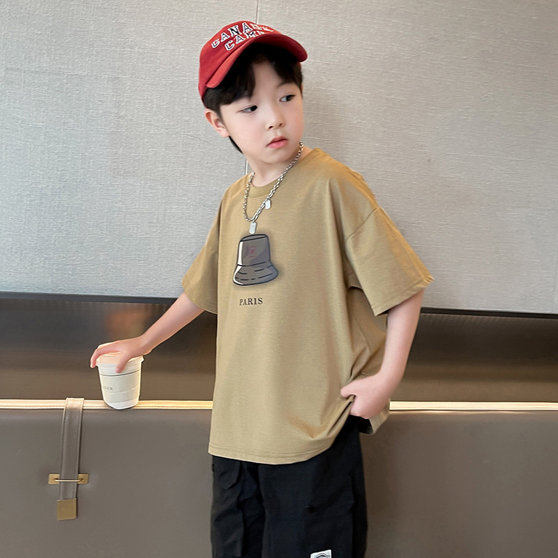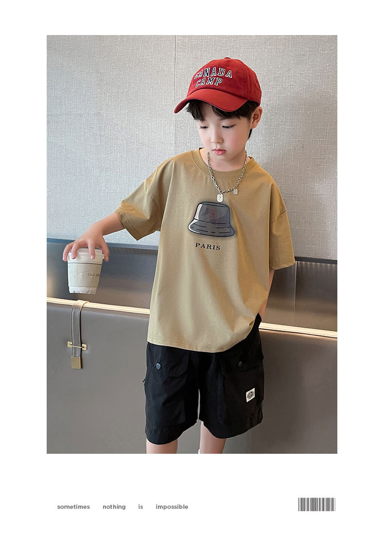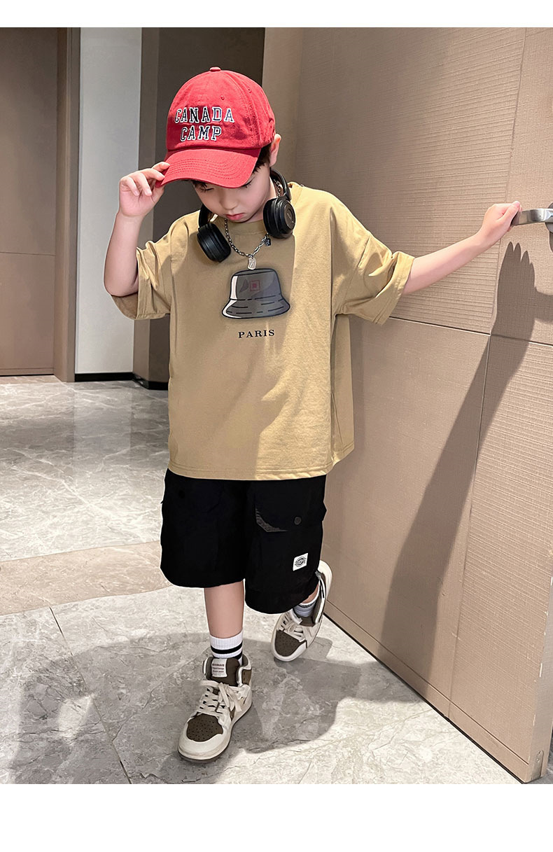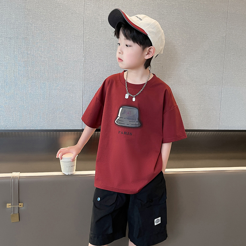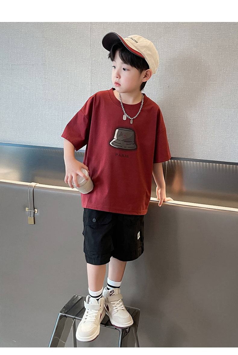 아동복 소년 정장 여름 옷 2025 새로운 중대형 어린이 여름 얇은 반팔 티셔츠 투피스 세트 유행 t스토어 가기