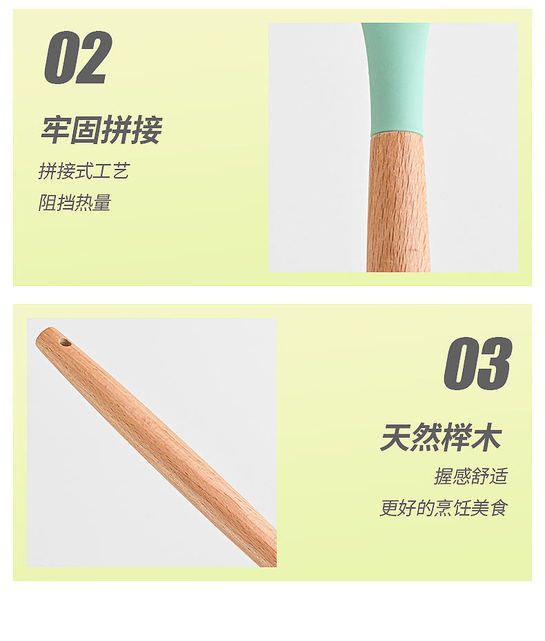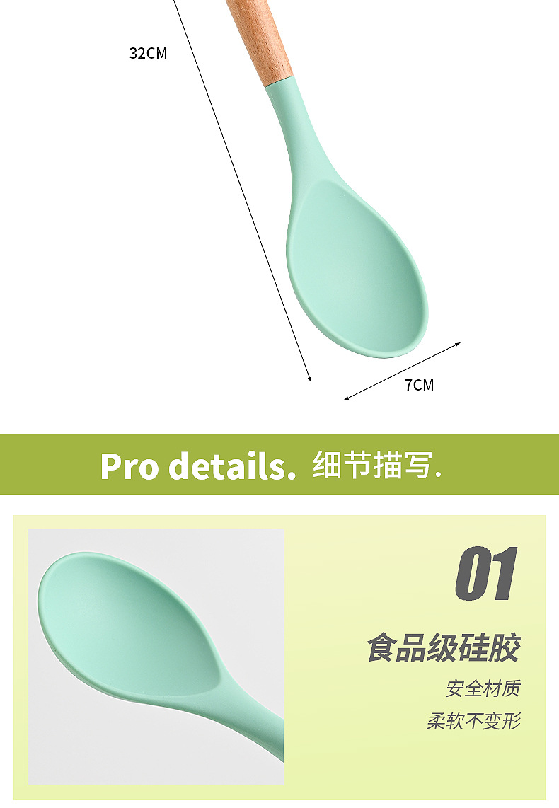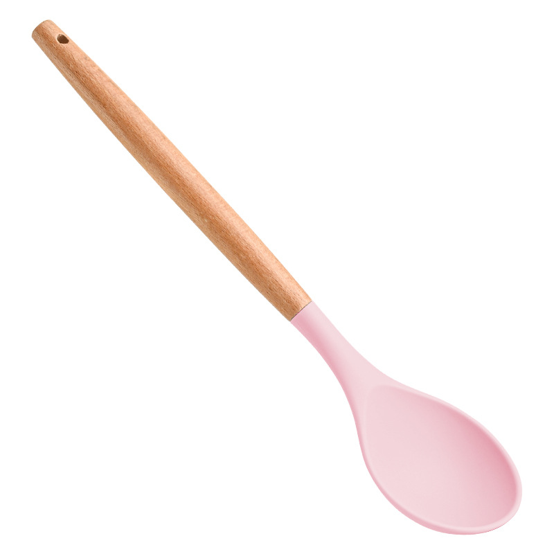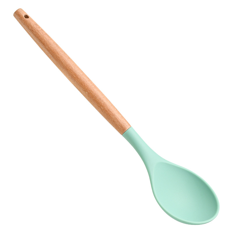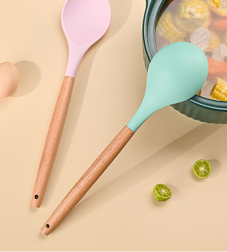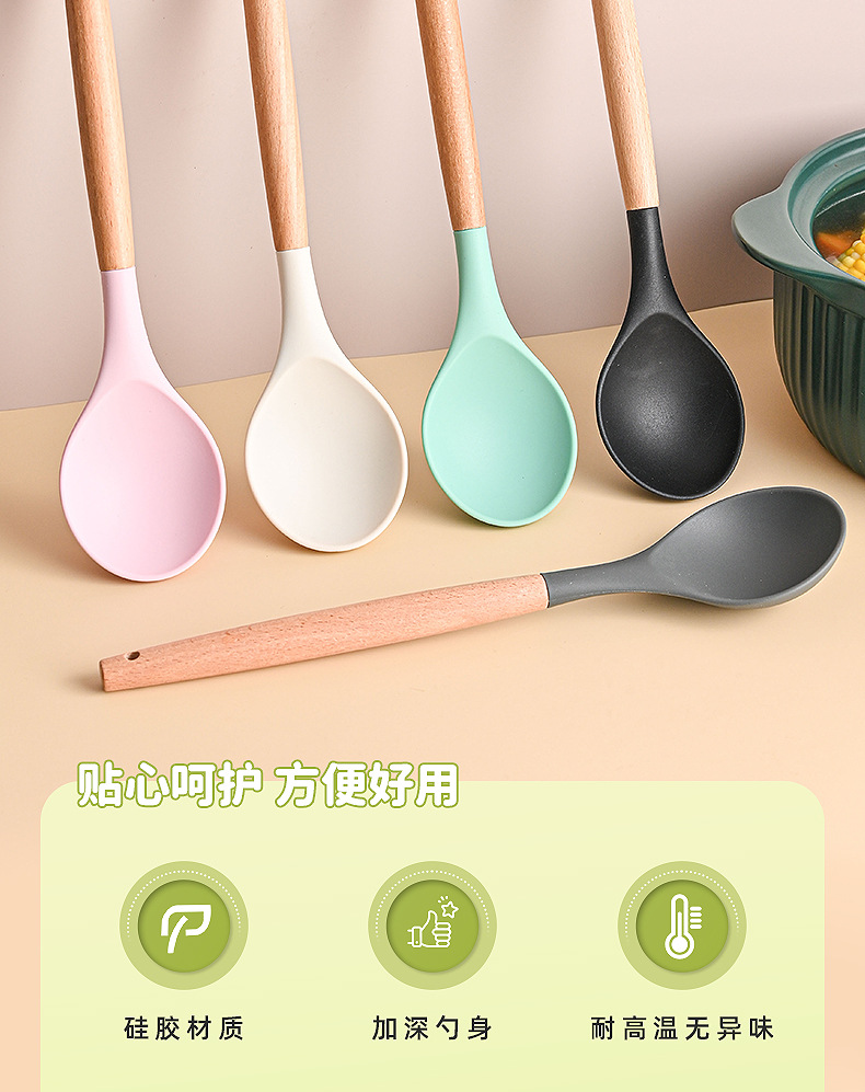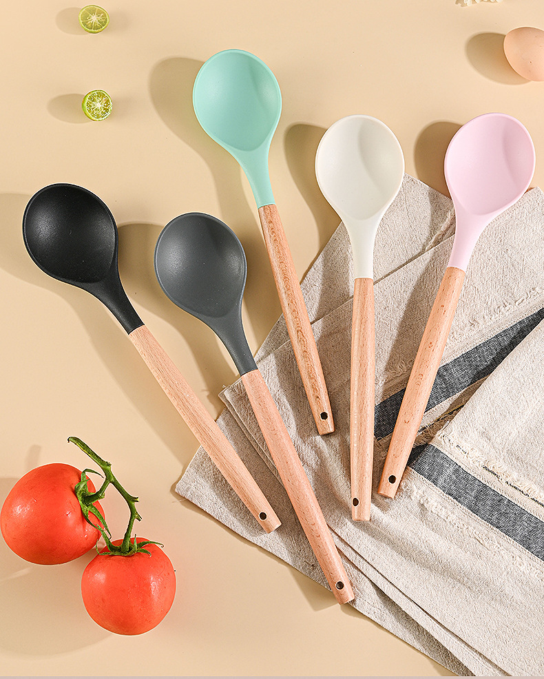 재고 나무 손잡이 실리콘 수프 숟가락 가정용 주방 도구 고온 저항성 비 스틱 팬 밀도가 더 많은 식사 숟가락 요리 도구스토어 가기