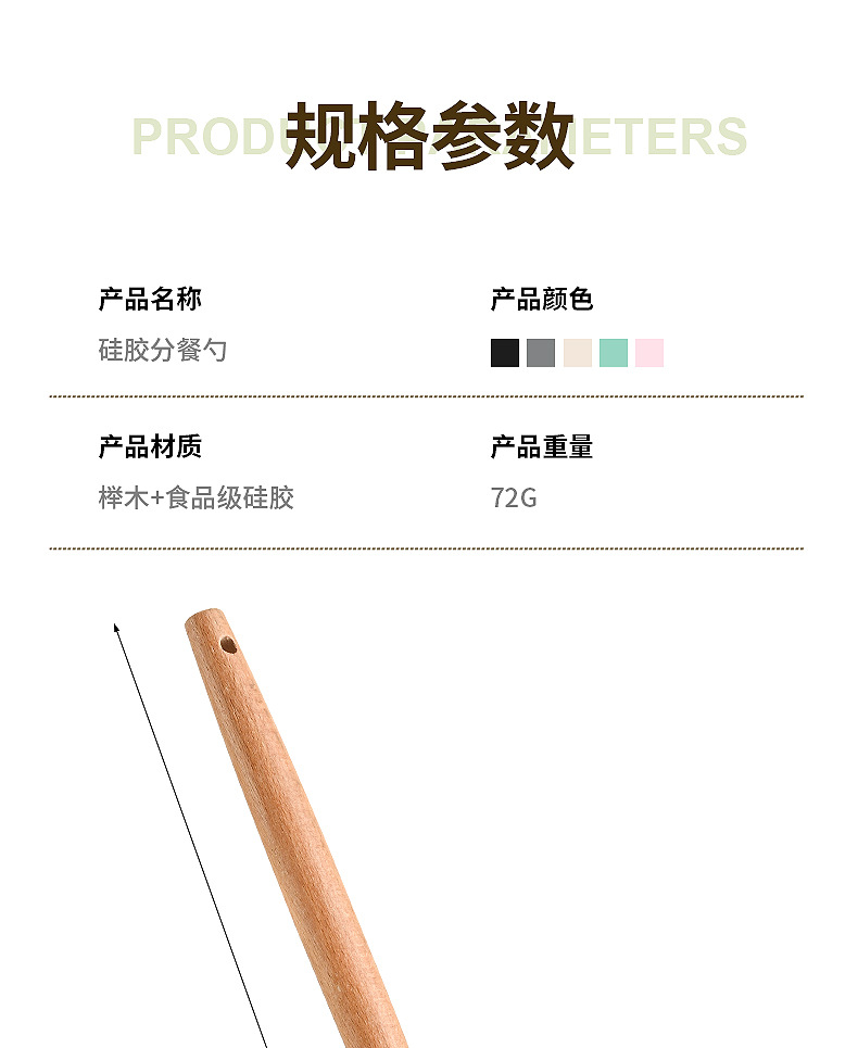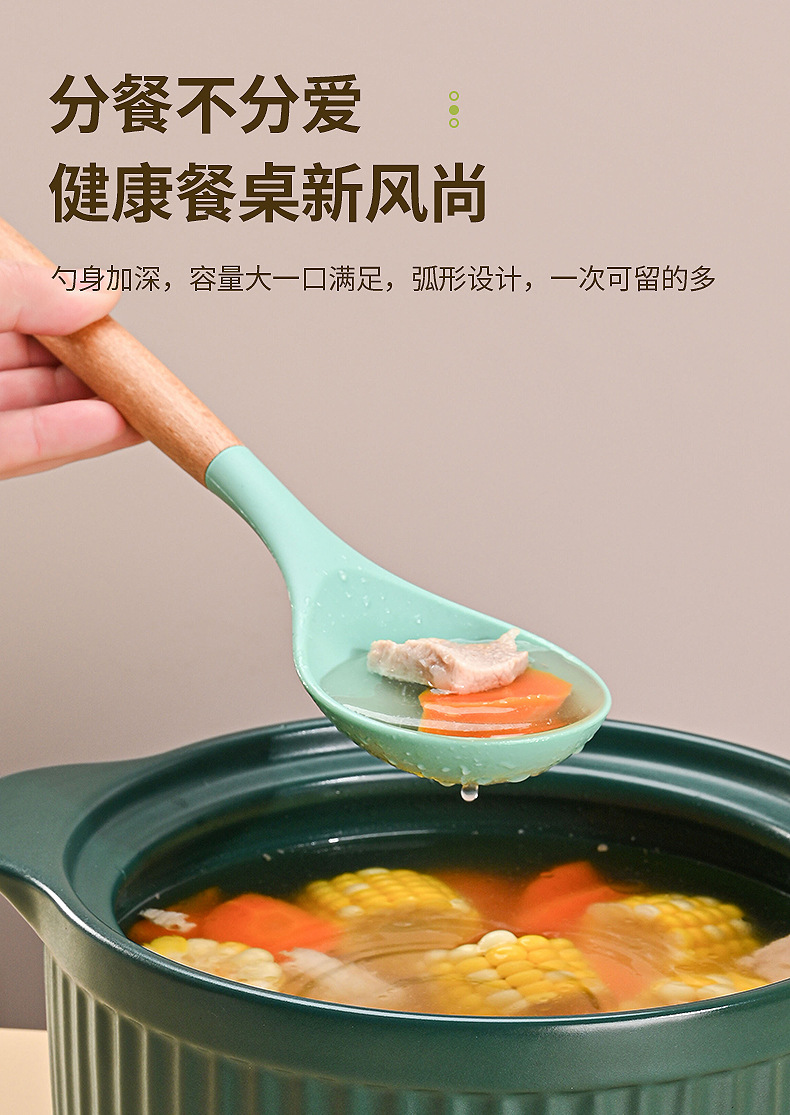 재고 나무 손잡이 실리콘 수프 숟가락 가정용 주방 도구 고온 저항성 비 스틱 팬 밀도가 더 많은 식사 숟가락 요리 도구