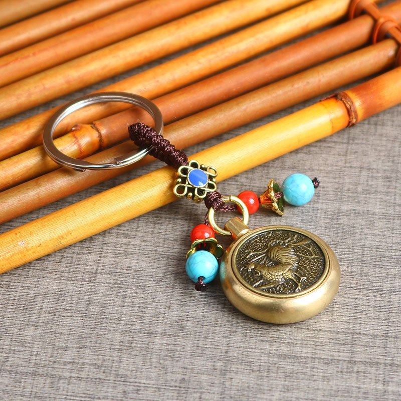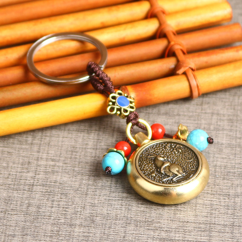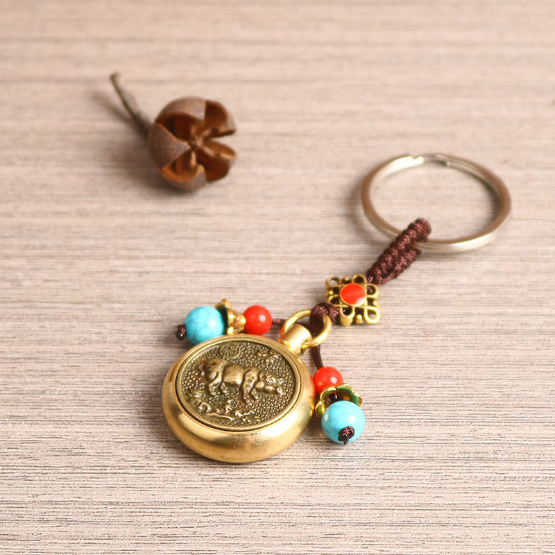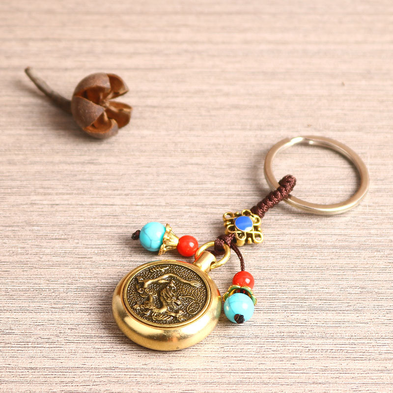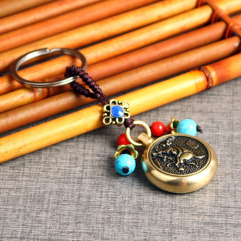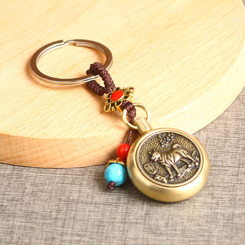 厂家直销黄铜生肖可360旋转的手把件复古创意汽车钥匙扣挂件批发