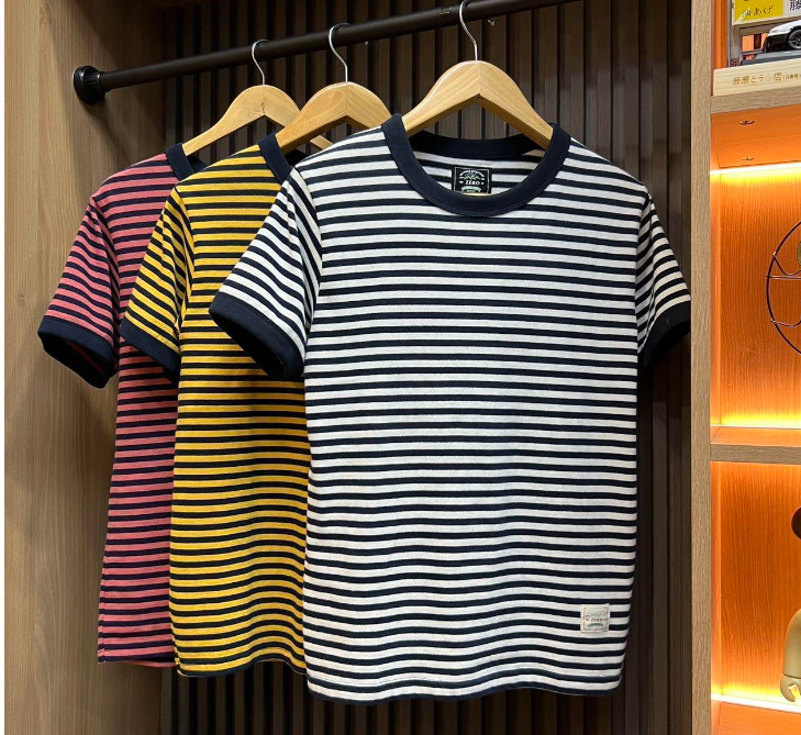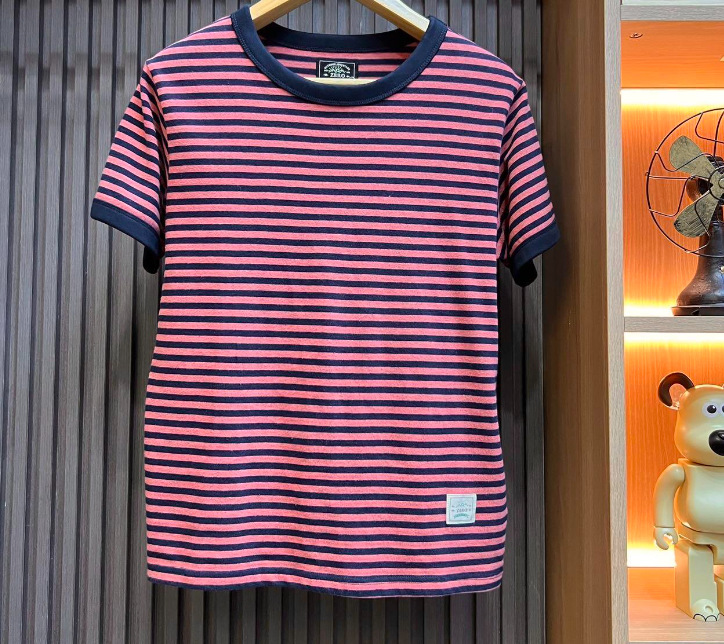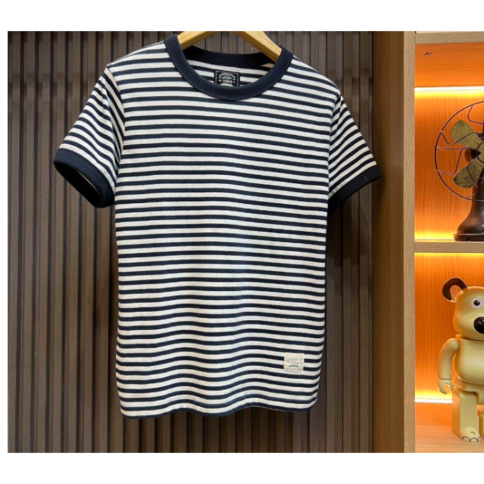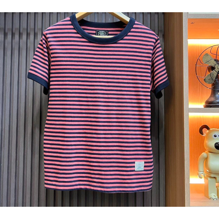 Tiktok 인기있는 스트라이프 반팔 티셔츠 남성용 여름 얇은 스웨터 남성과 여성의 반소매 라운드 넥 티셔츠 탑스토어 가기