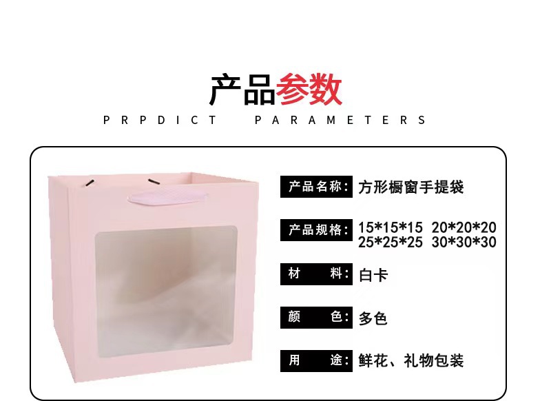 선물 가방 베이킹 화이트 카드 선물 가방 정사각형 투명 선물 상자 포장 가방 꽃 인형 선물 핸드백