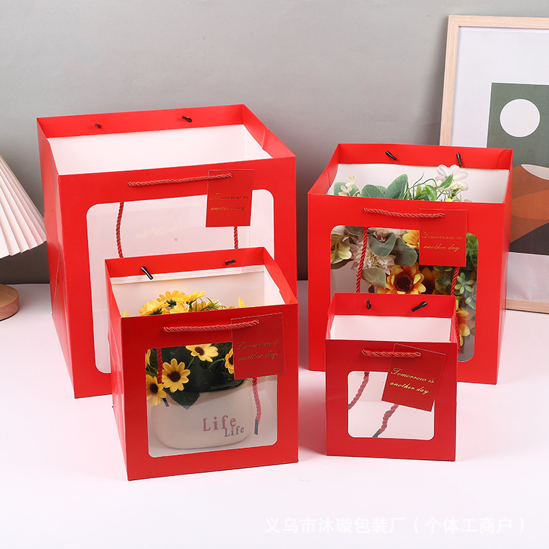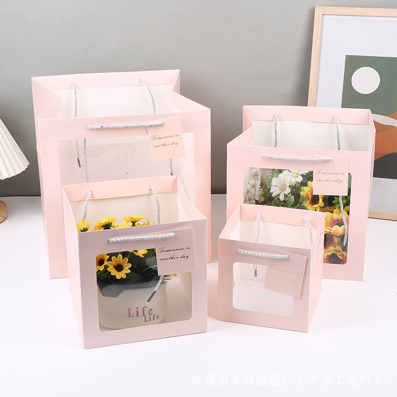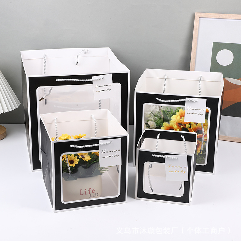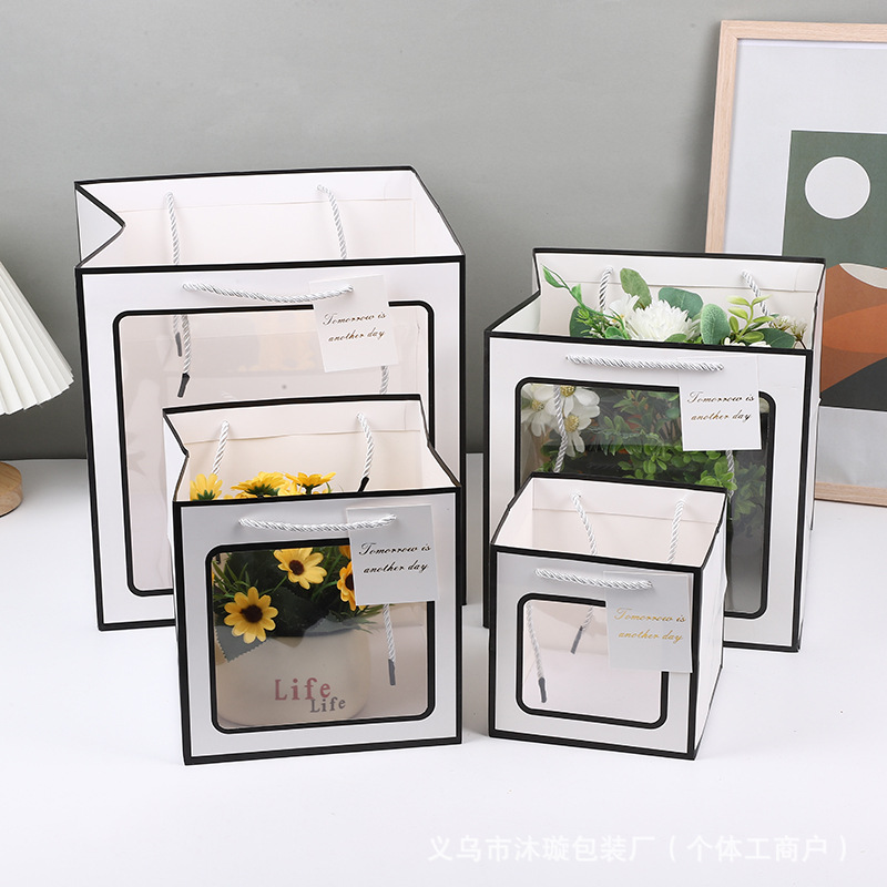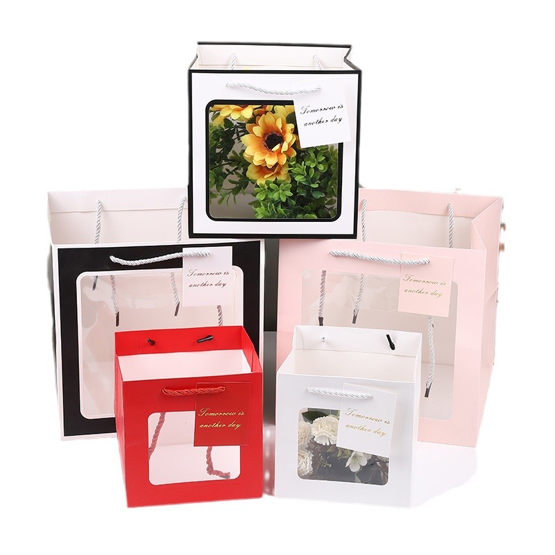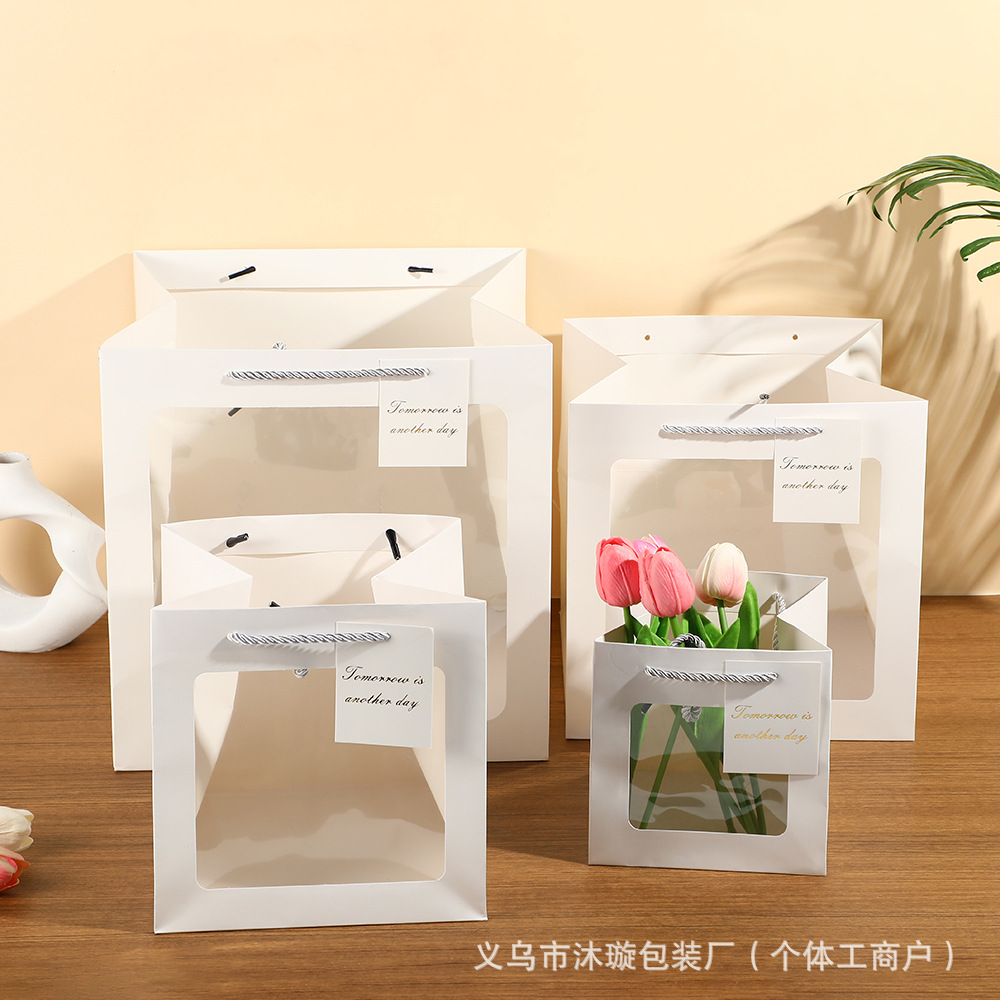 선물 가방 베이킹 화이트 카드 선물 가방 정사각형 투명 선물 상자 포장 가방 꽃 인형 선물 핸드백스토어 가기