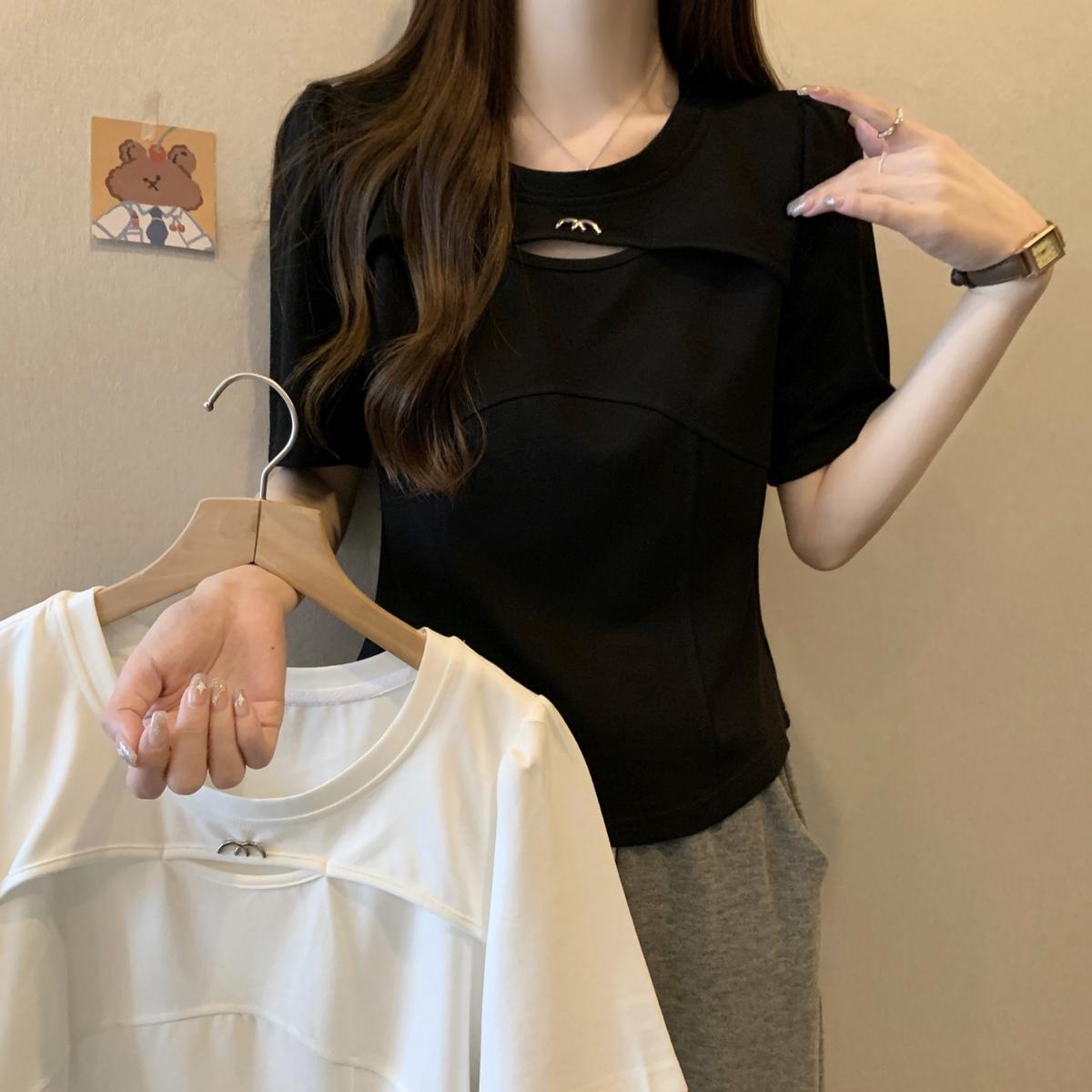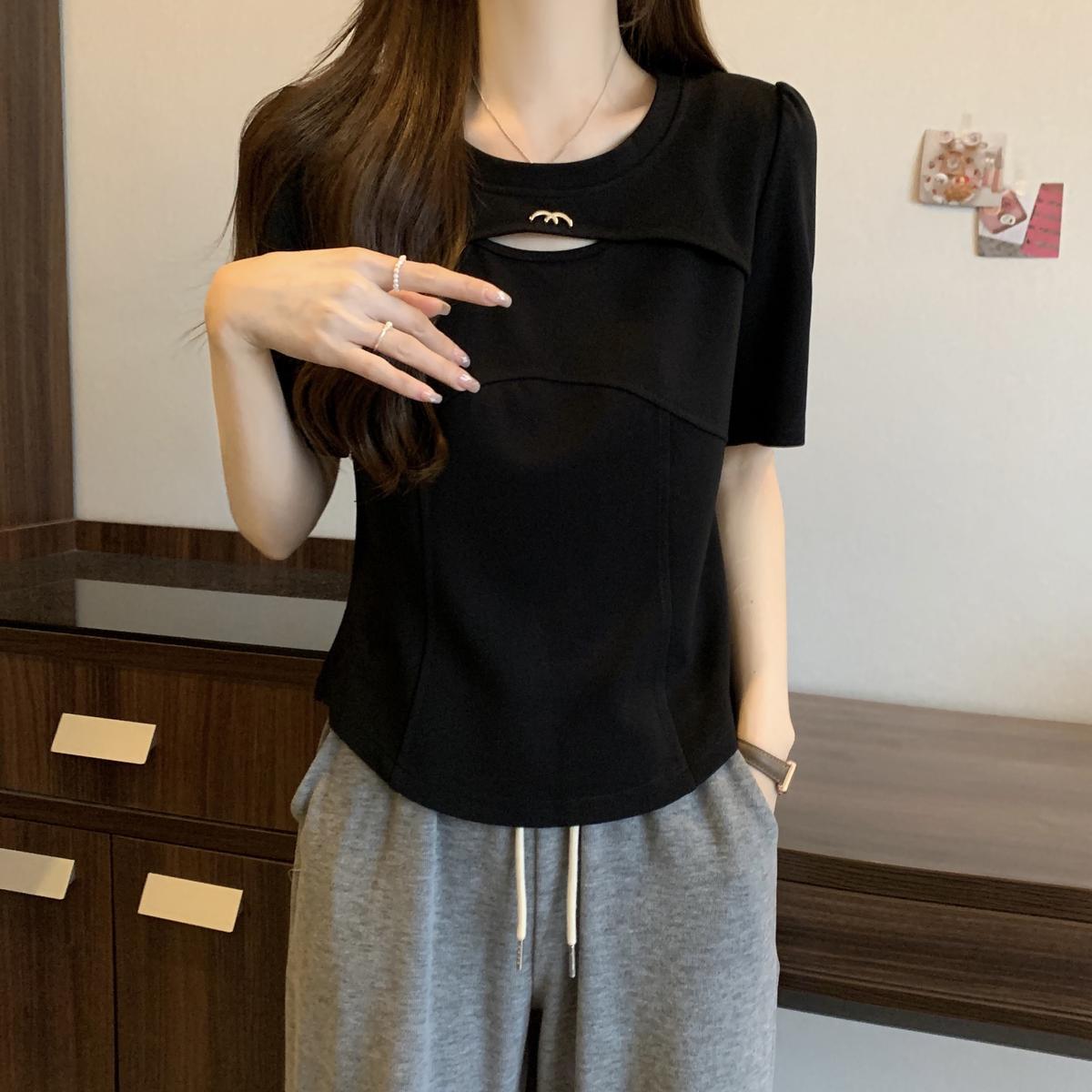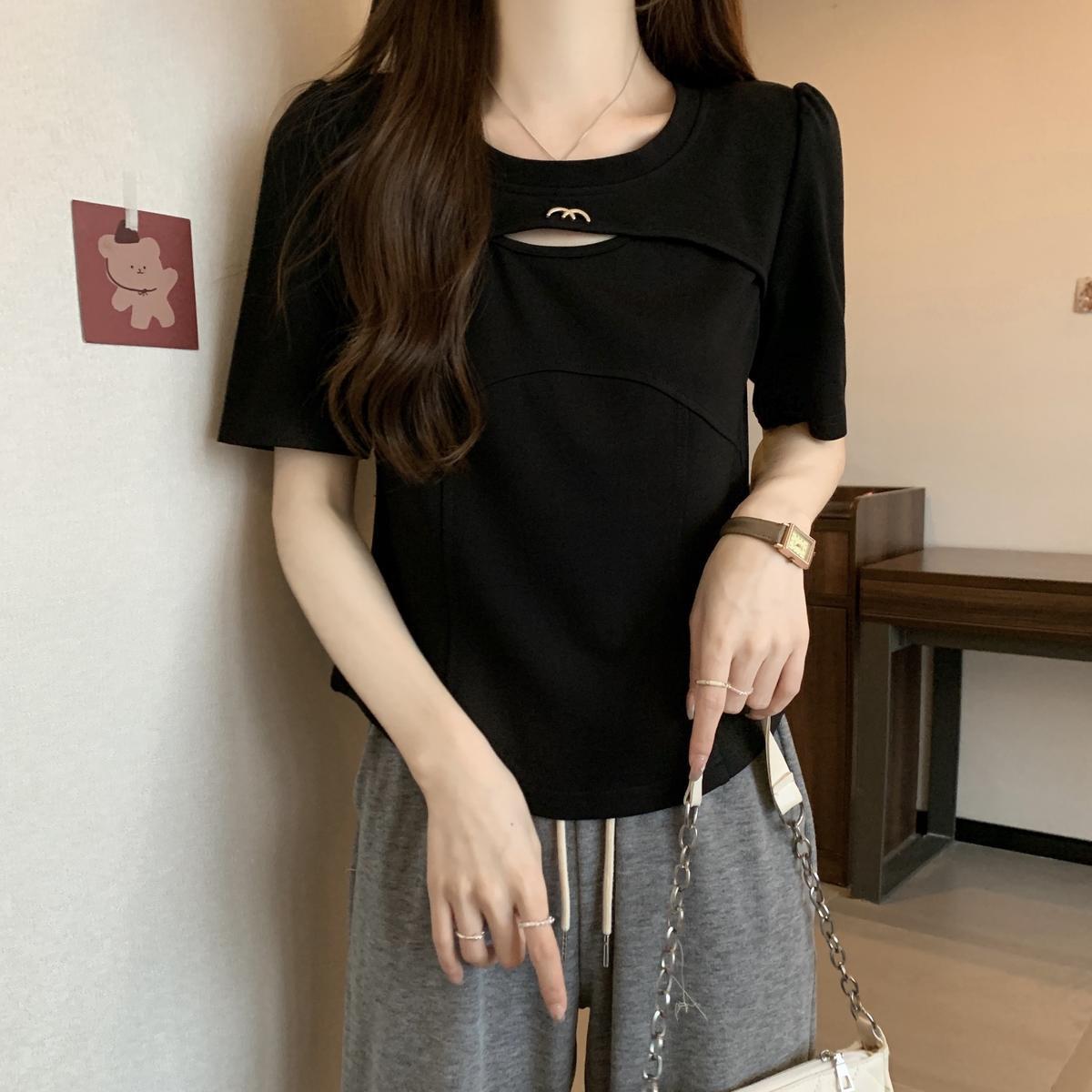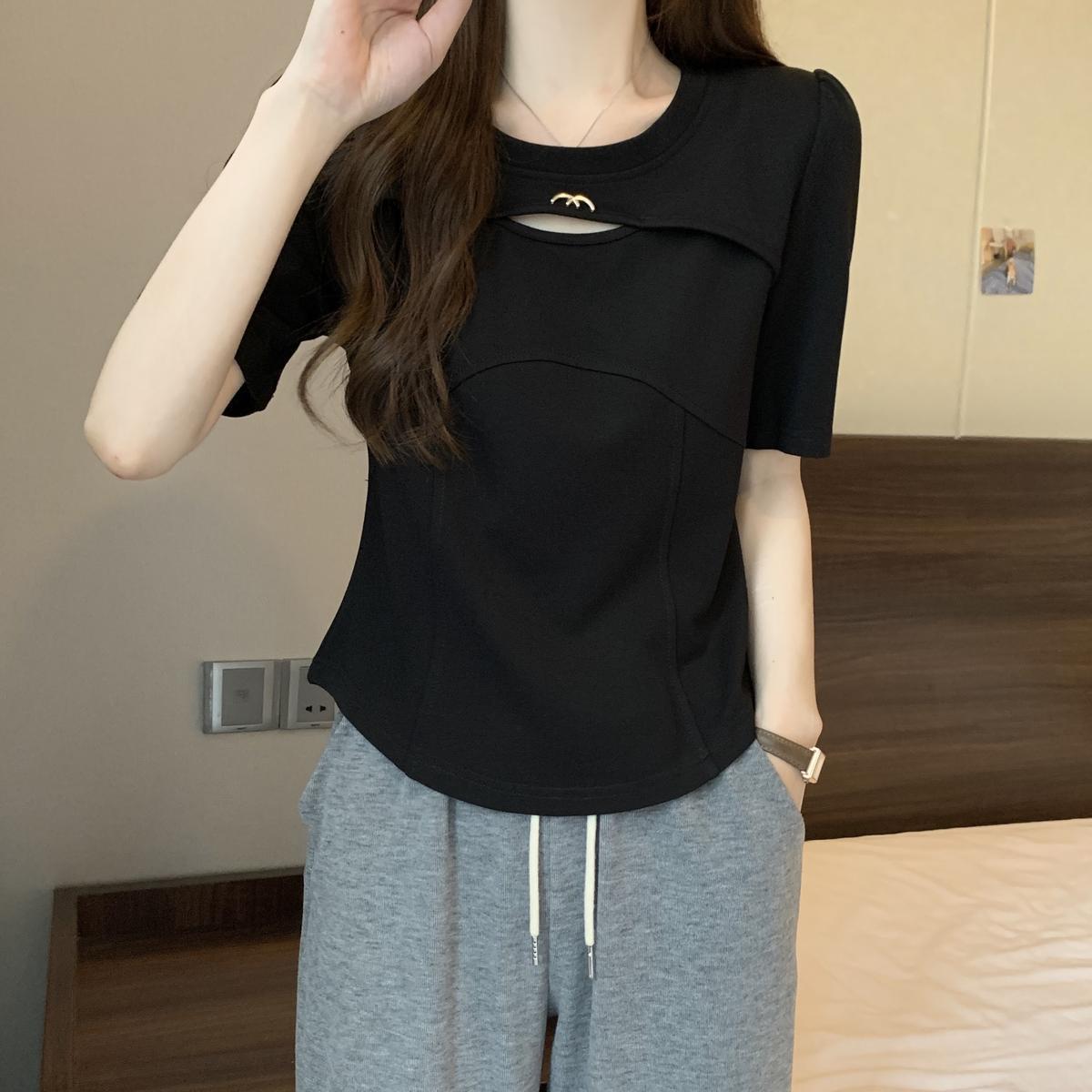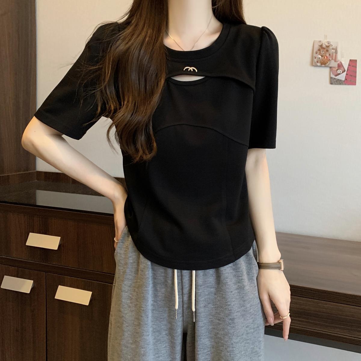 여름 곡선 형 벨리 커버 반팔 티셔츠 여성용 탑 통통녀 플러스 사이즈 어깨 슬리밍면 반소매 티셔츠 200kg스토어 가기