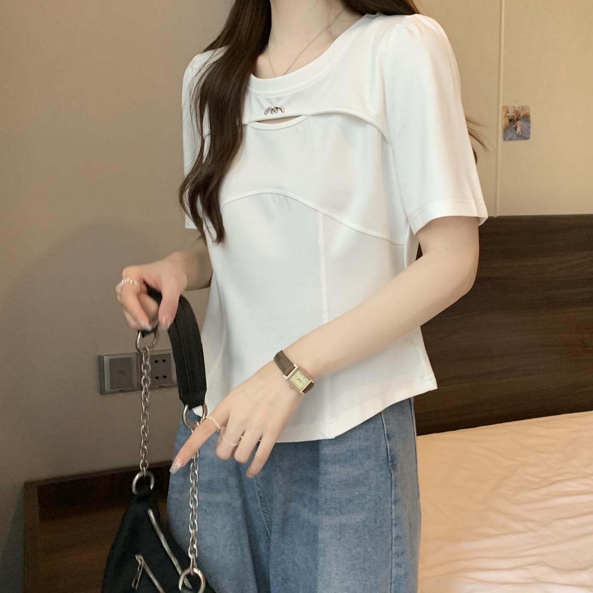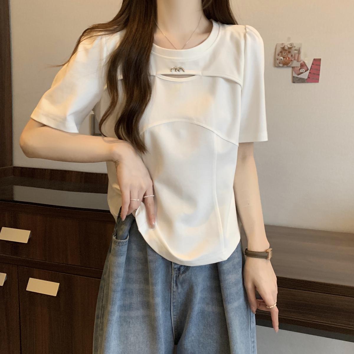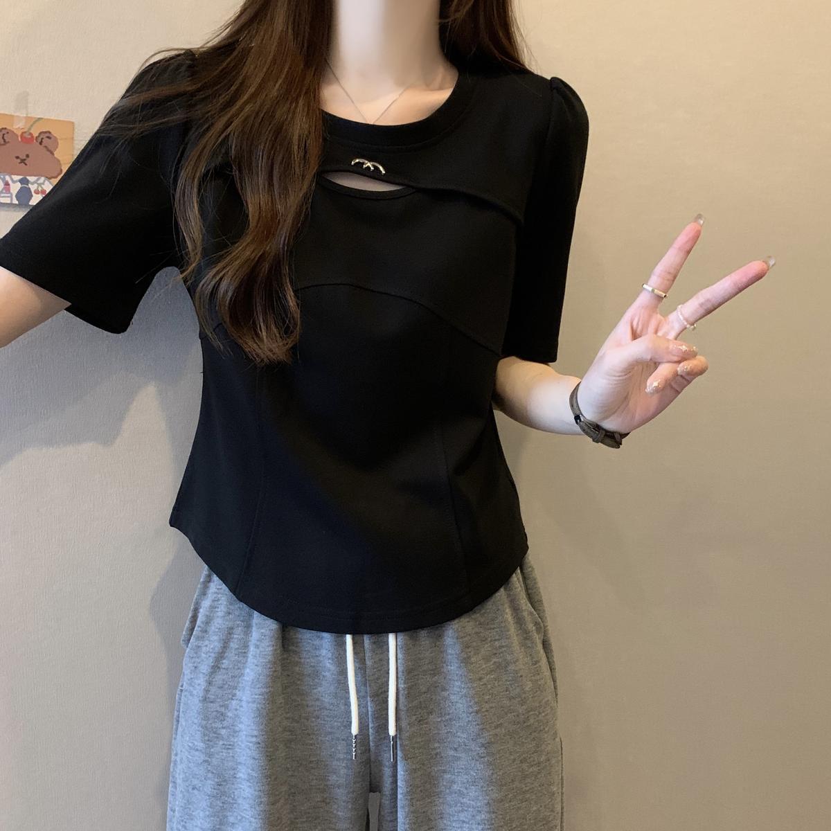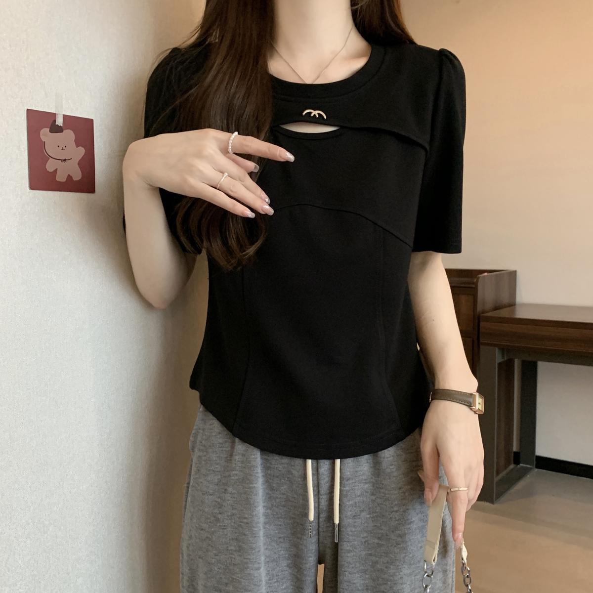 여름 곡선 형 벨리 커버 반팔 티셔츠 여성용 탑 통통녀 플러스 사이즈 어깨 슬리밍면 반소매 티셔츠 200kg스토어 가기