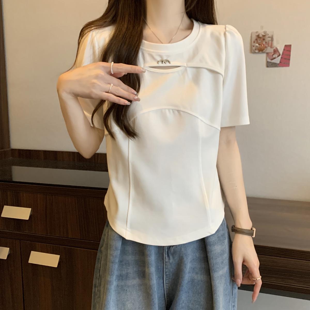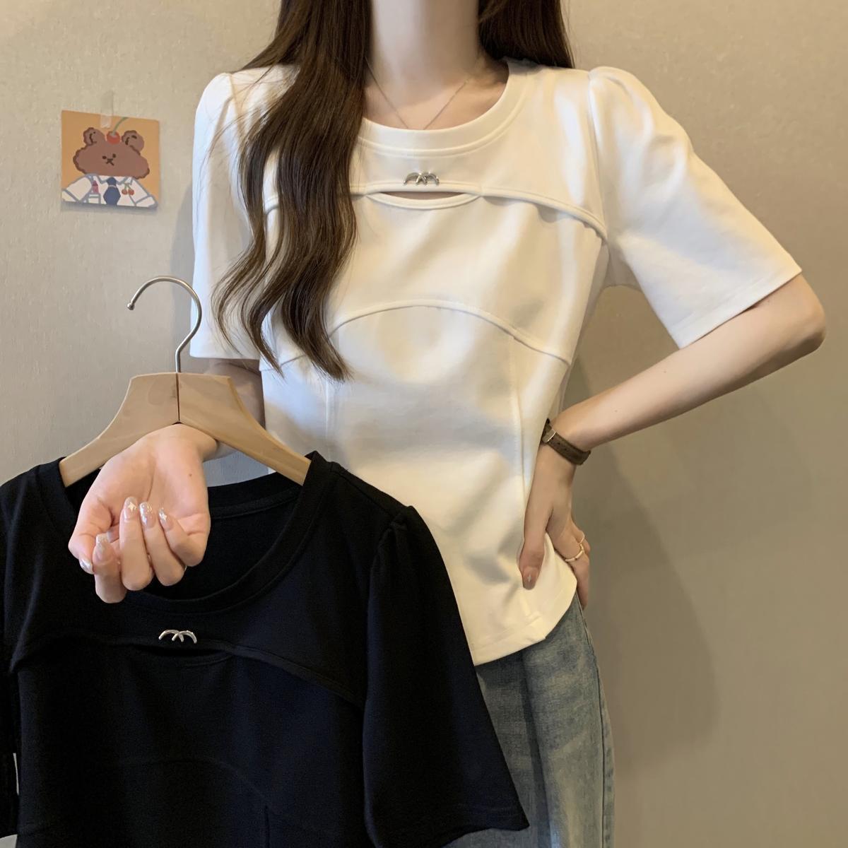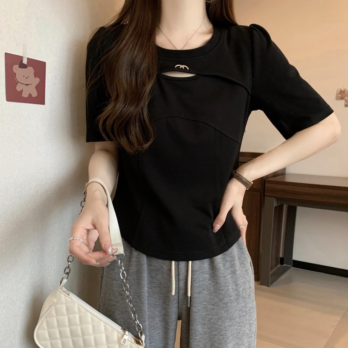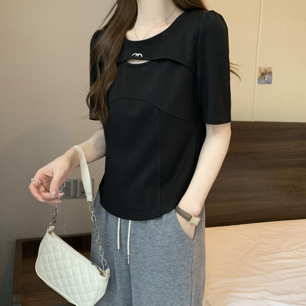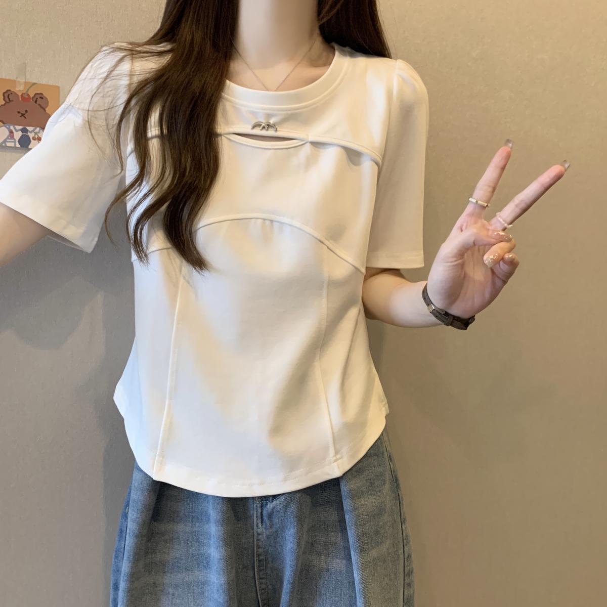 여름 곡선 형 벨리 커버 반팔 티셔츠 여성용 탑 통통녀 플러스 사이즈 어깨 슬리밍면 반소매 티셔츠 200kg스토어 가기