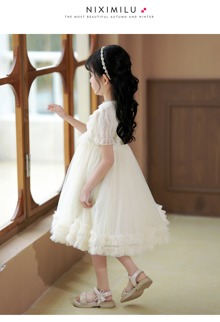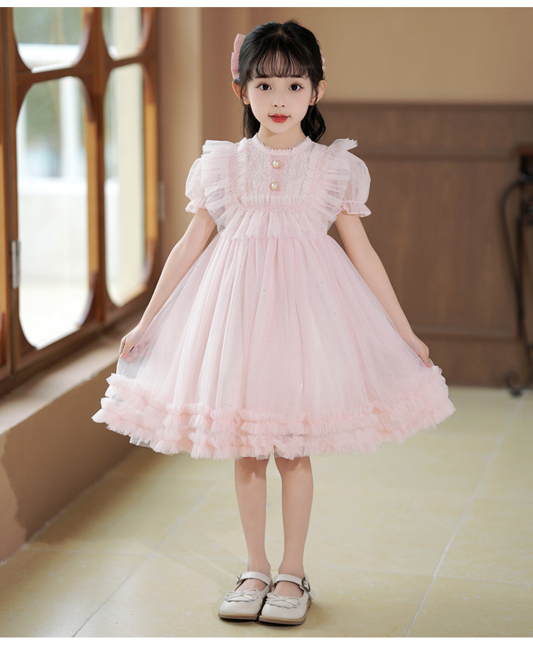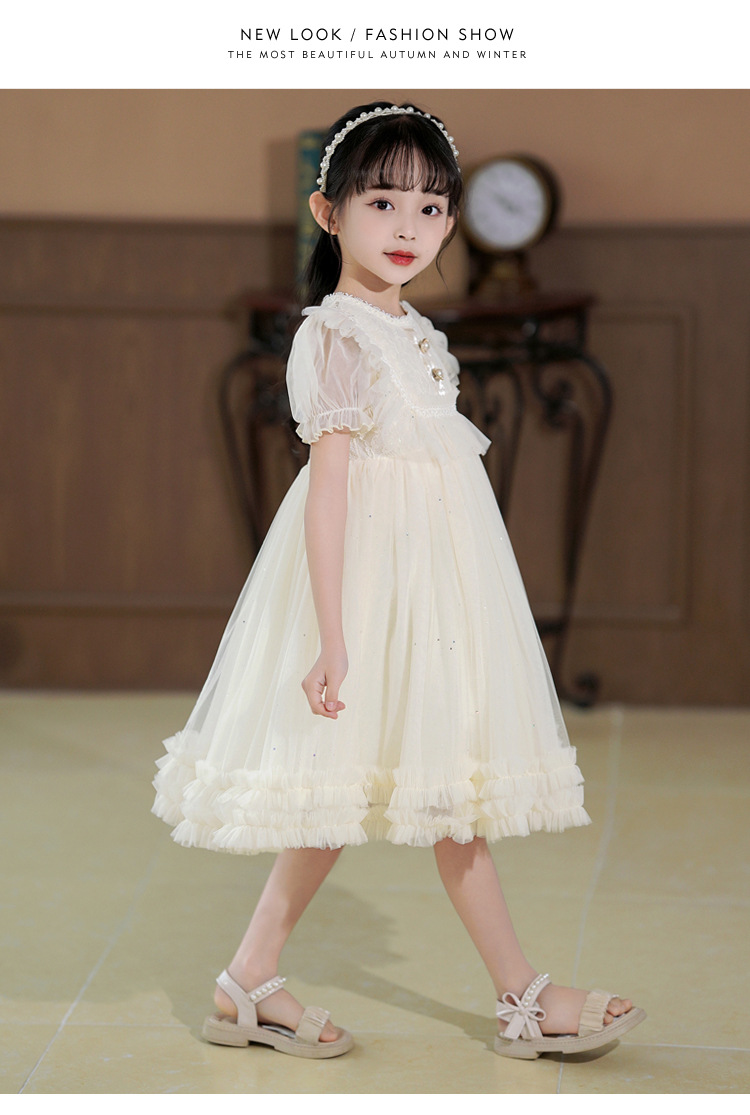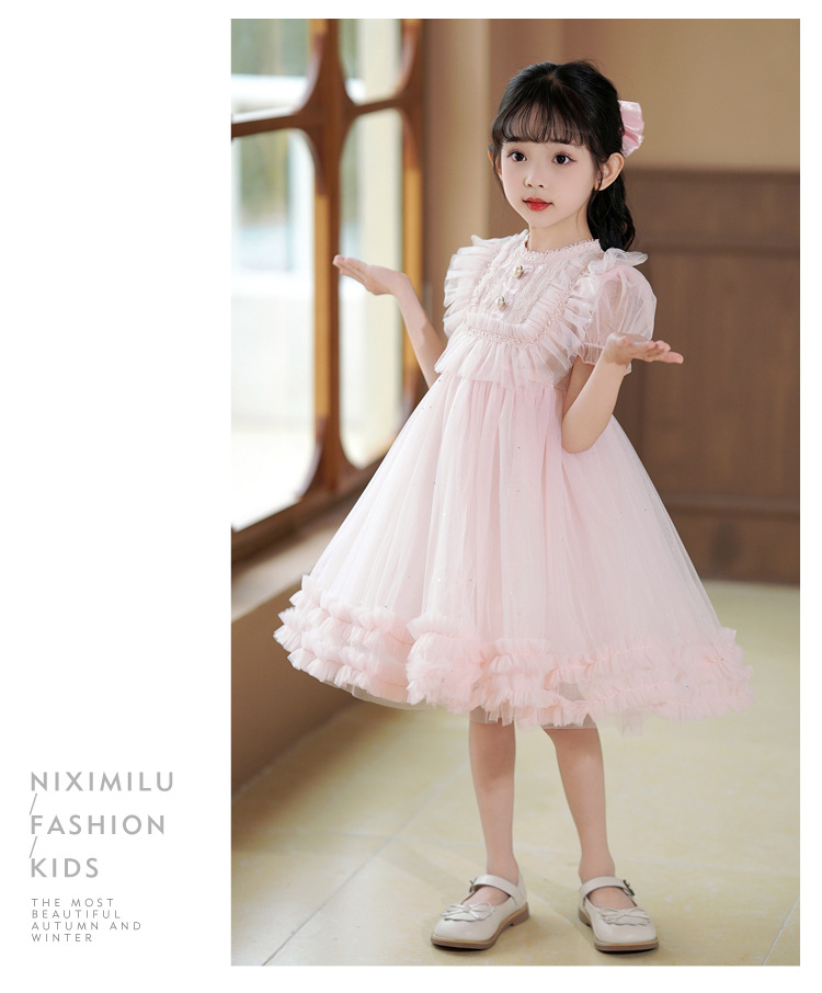 여름 새 소녀 공주 원피스 서양식 아기 짧은 소매 솜털 원사 원피스 어린이 댄스 공연 원피스스토어 가기