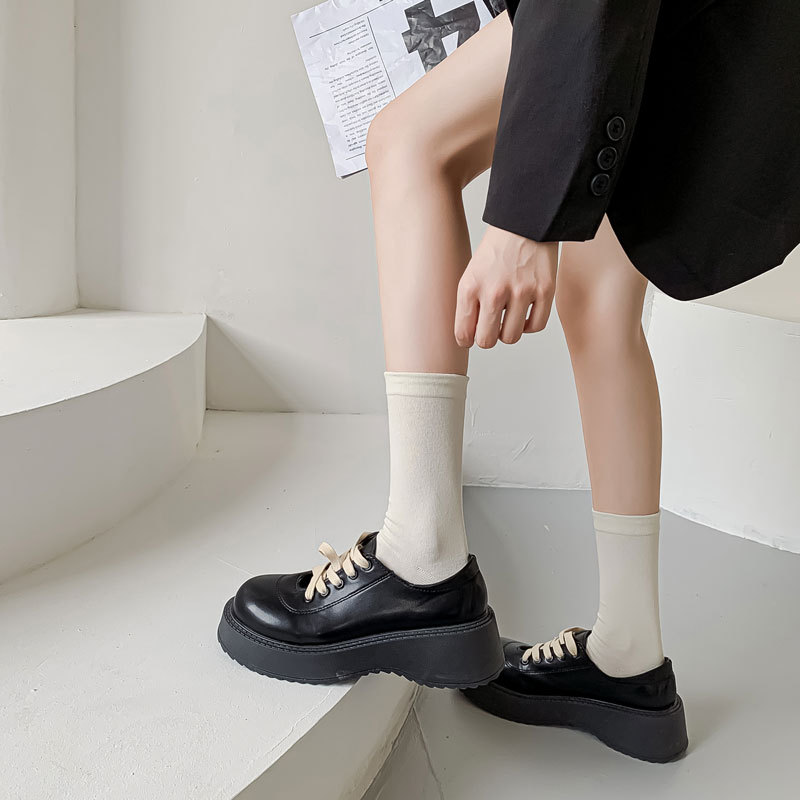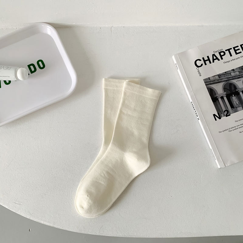 퓨어 컬러 일본식 뼈없는 재봉 헤드 올 매치 감금 양말 한국식 신선한 느슨한 입 부드러운 더미 양말 중간 종아리 길이 양말스토어 가기
