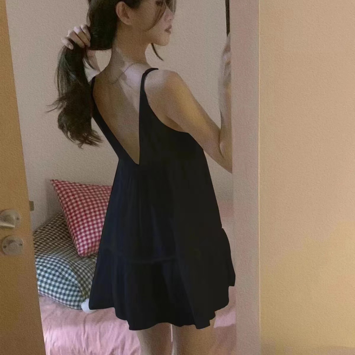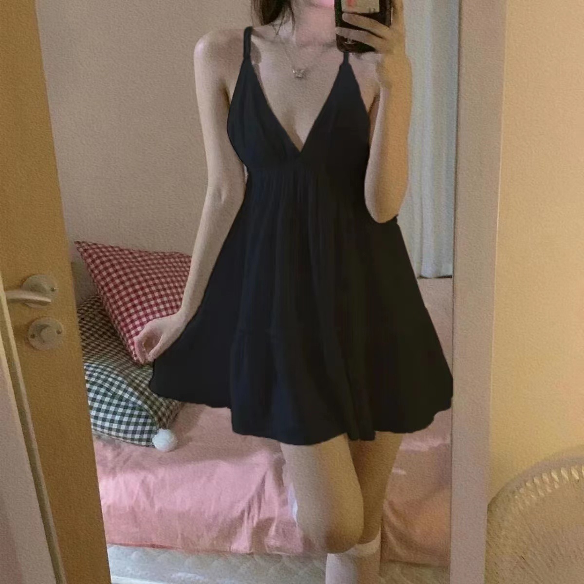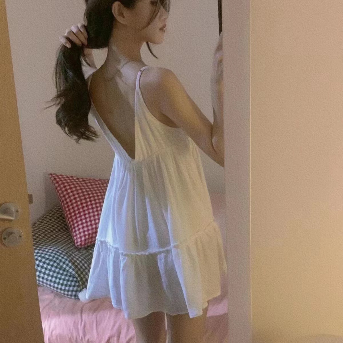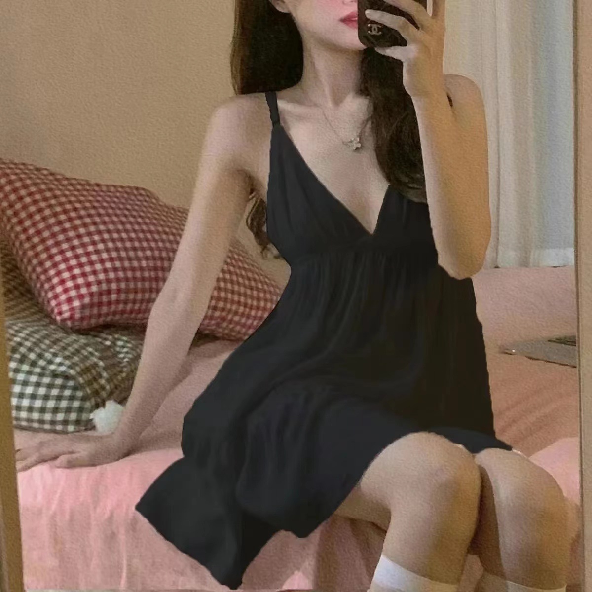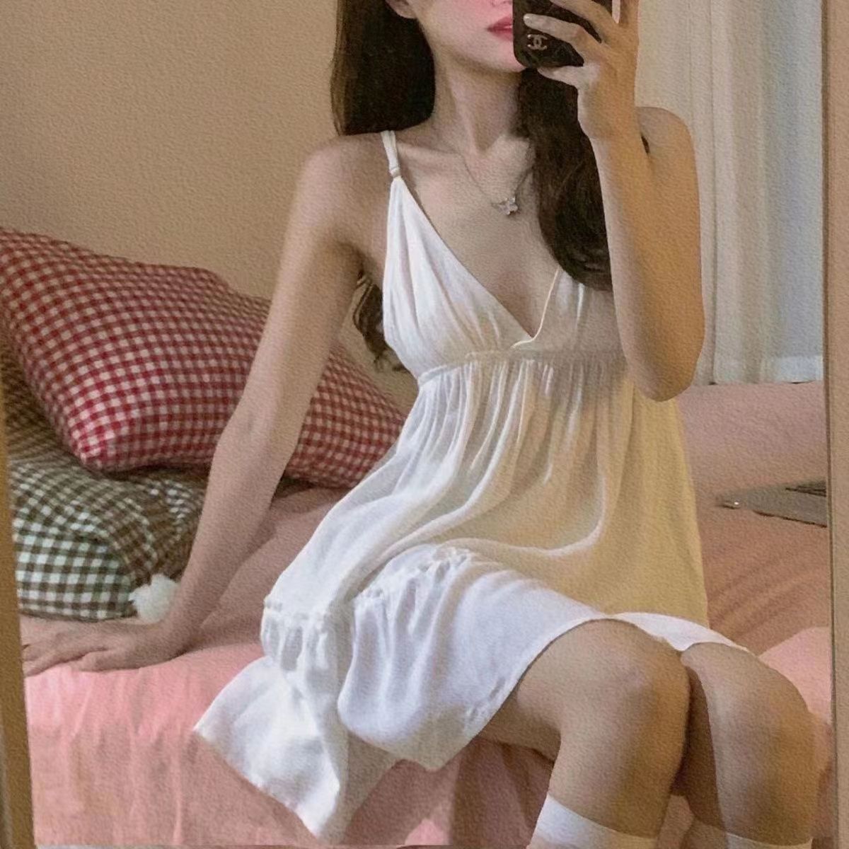 여름 섹시한 잠옷 여성의 순수한 욕망 바람 스트랩 나이트 드레스 아이스 실크 피트 달콤한 귀여운 짧은 치마 감정적 인 홈 웨어스토어 가기