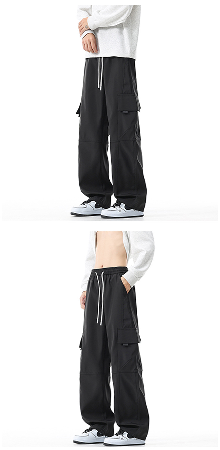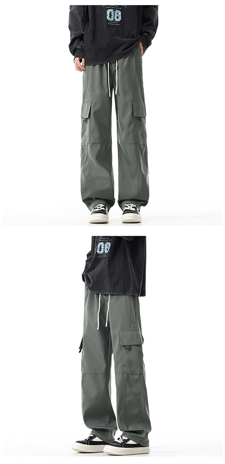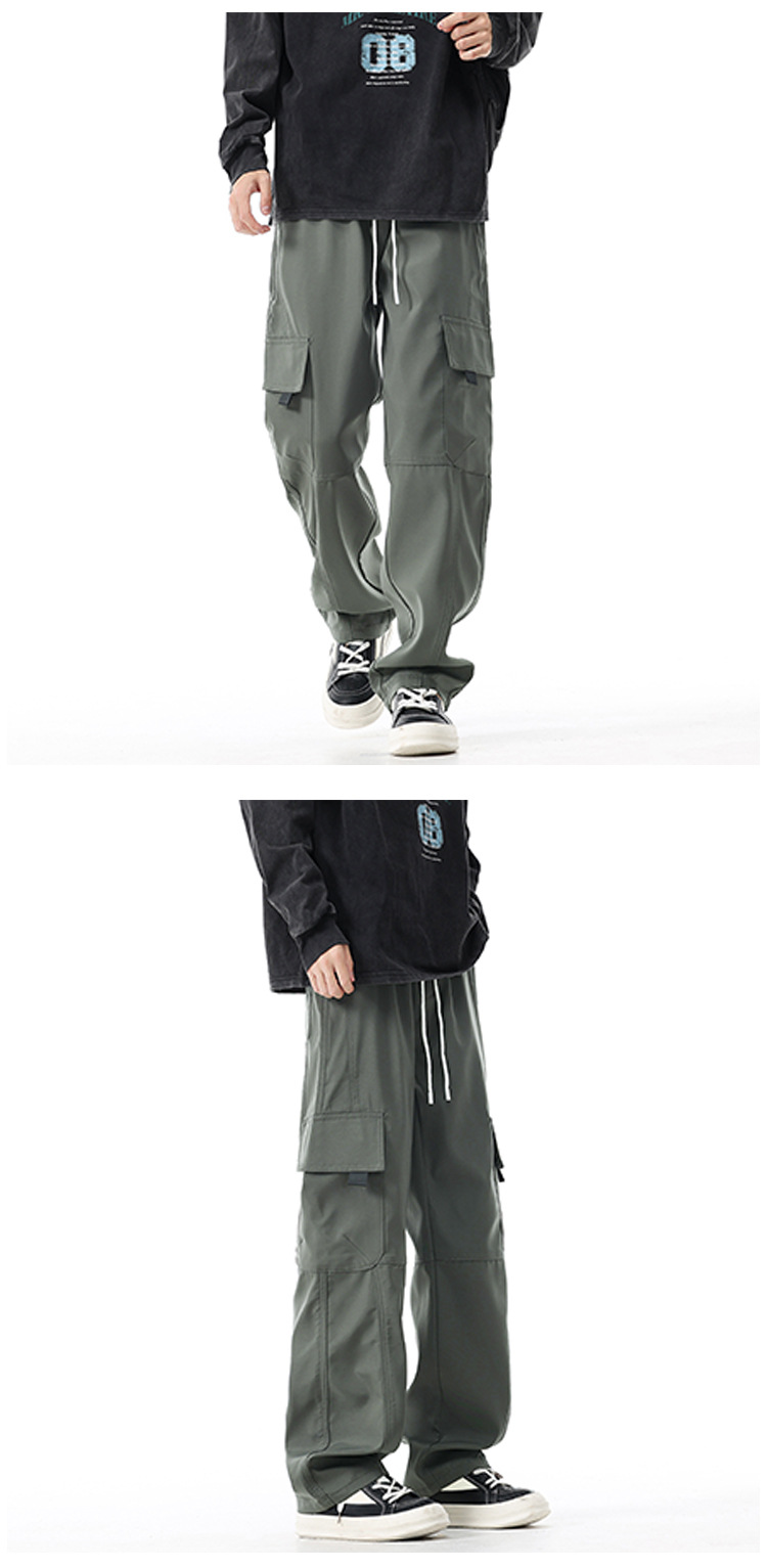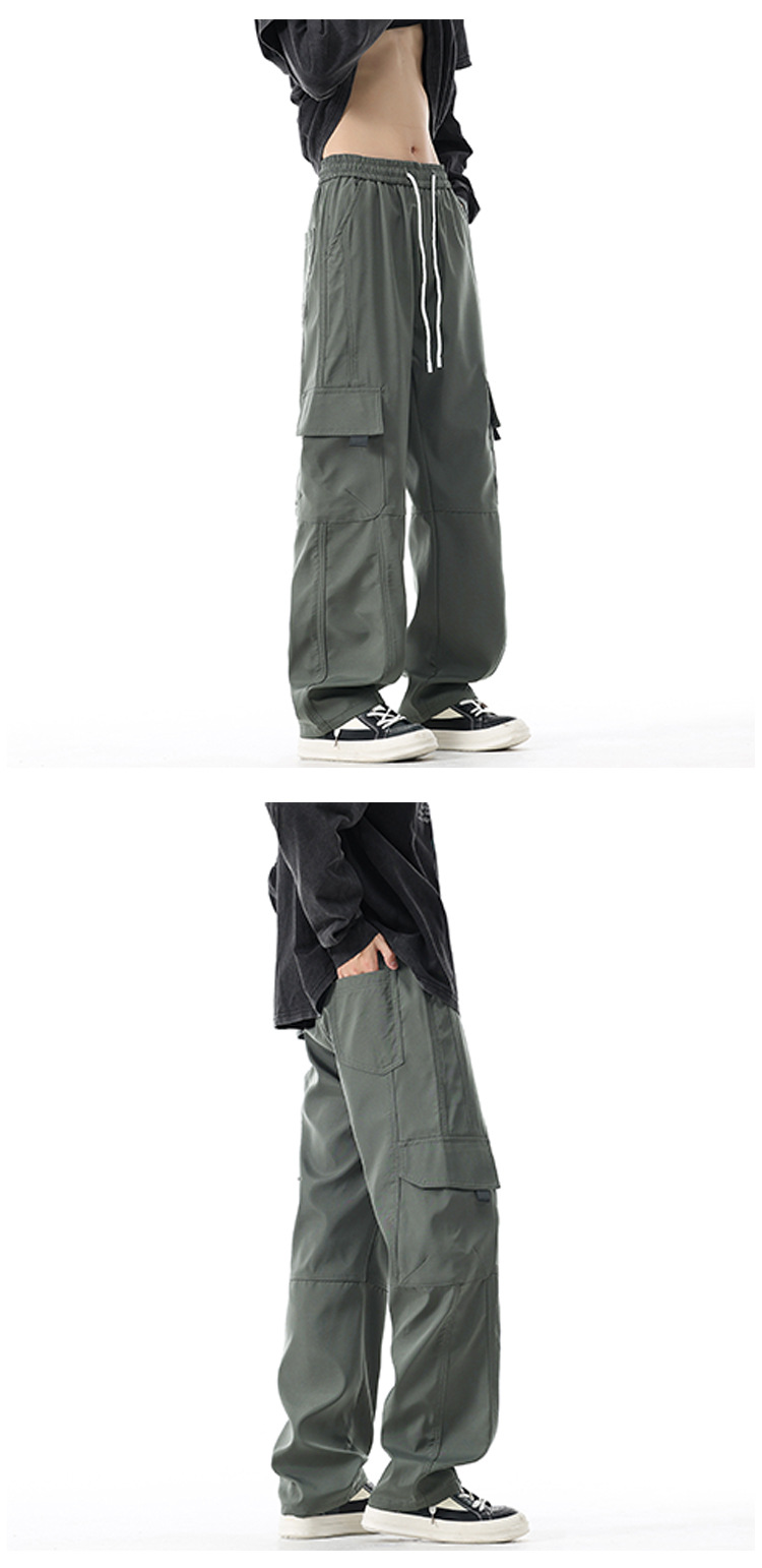 미국 스타일 남성용 출퇴근 바지 2025년 봄/가을용, 길어진 루즈핏 스트레이트 팬츠, 남성용 아이스 실크 사계절 야외 캐주얼 바지스토어 가기