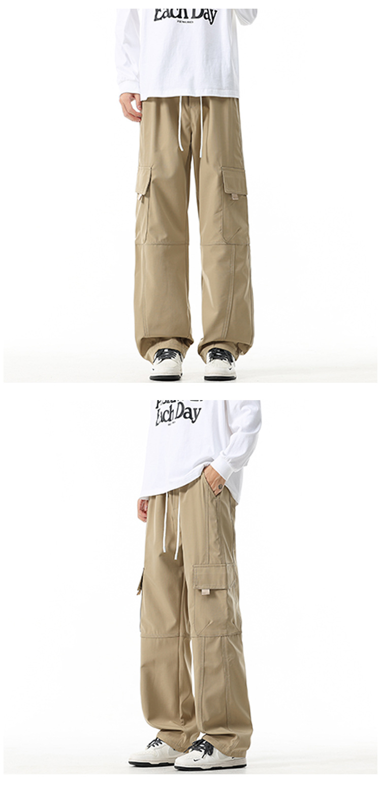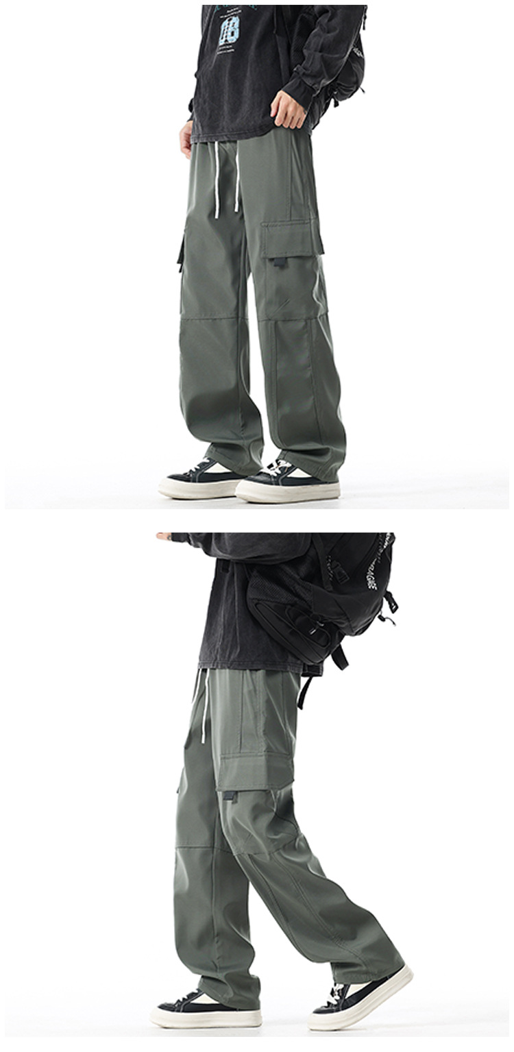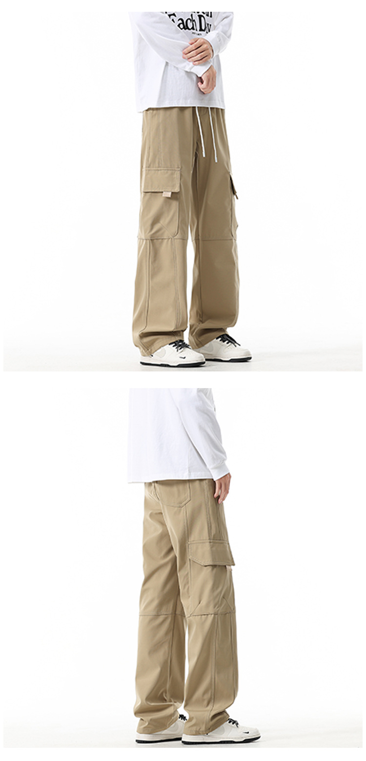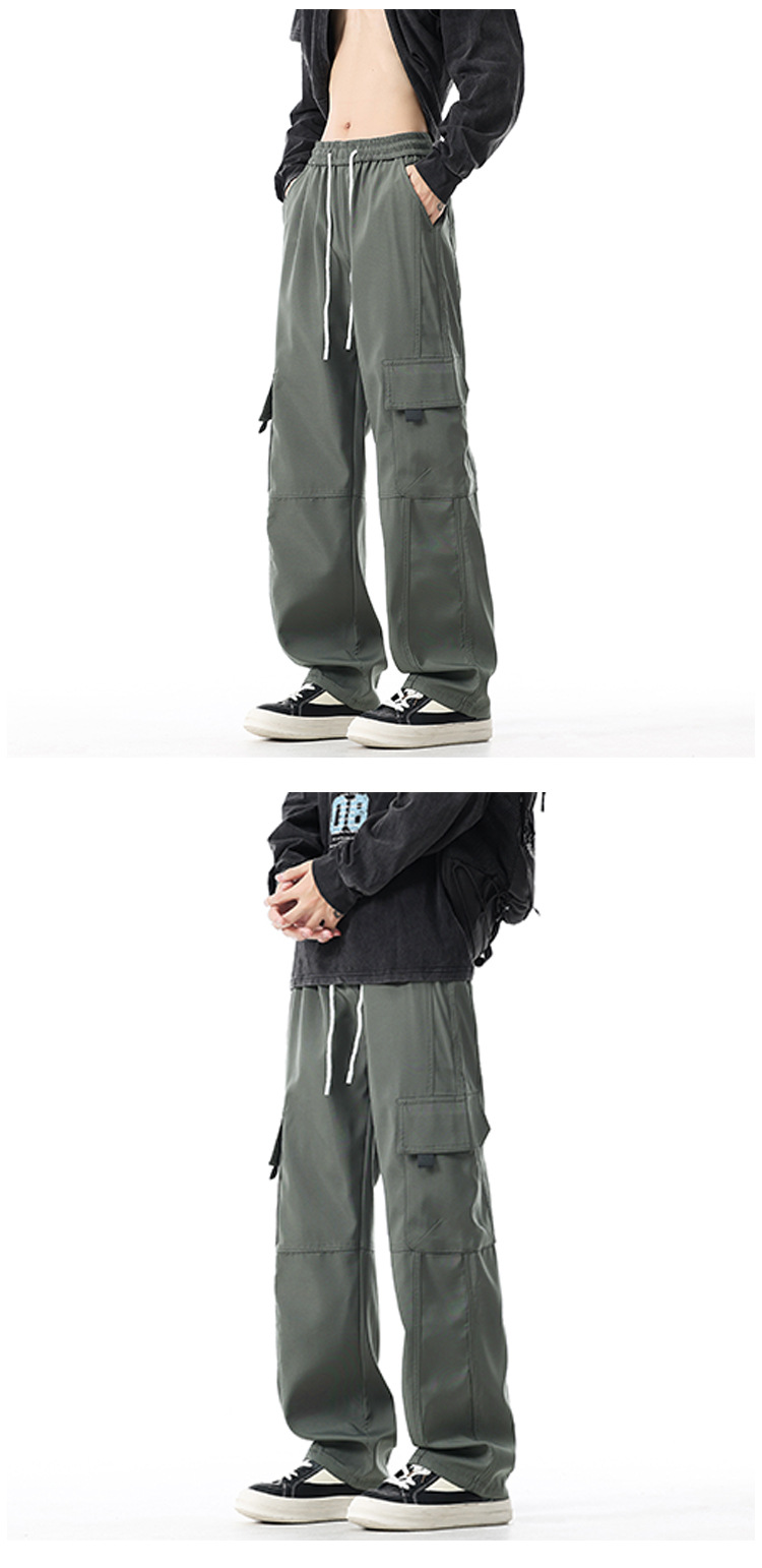 미국 스타일 남성용 출퇴근 바지 2025년 봄/가을용, 길어진 루즈핏 스트레이트 팬츠, 남성용 아이스 실크 사계절 야외 캐주얼 바지스토어 가기