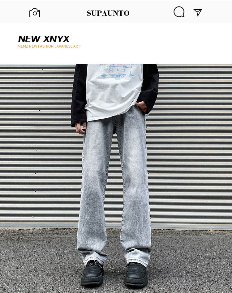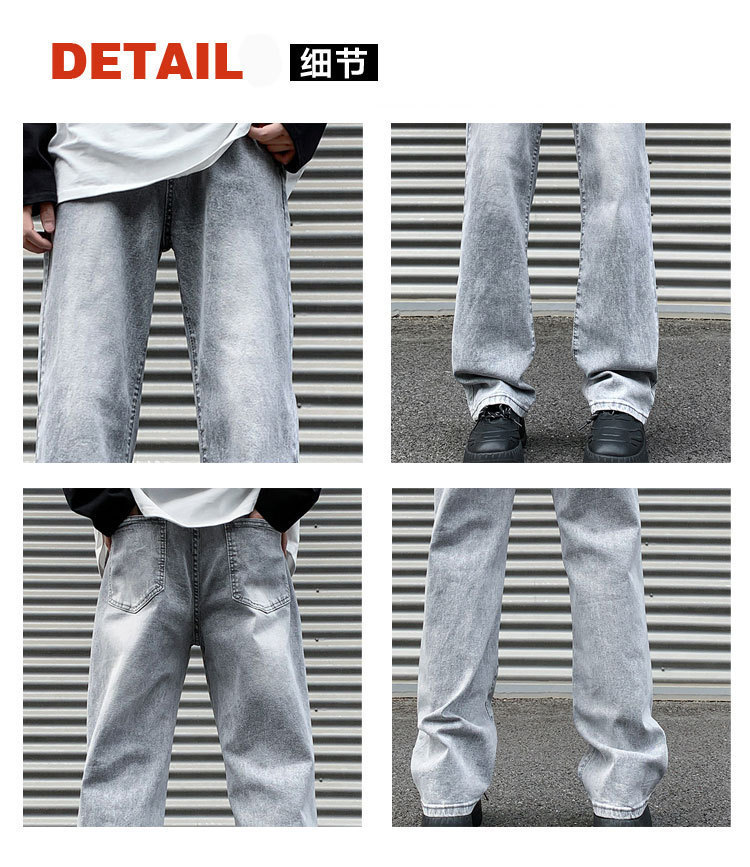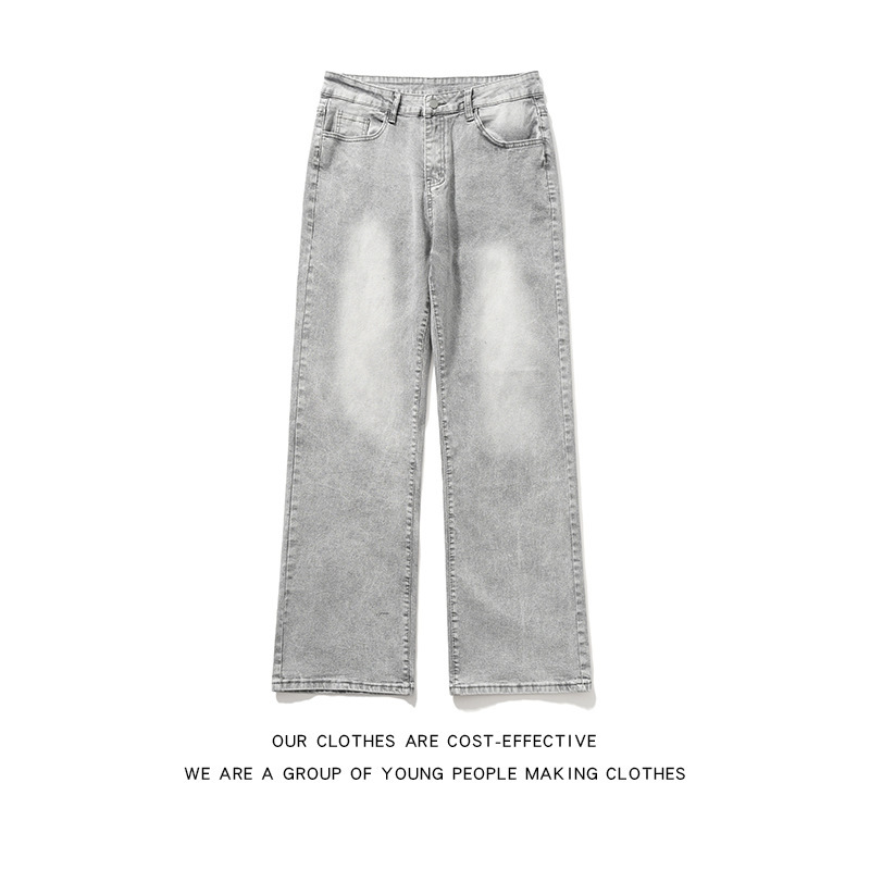 연기가 자욱한 회색 청바지 남성용 미국식 복고풍 분위기 올매치 슬림 핏 유행 스트레이트 트렌디 남성용 롱 팬츠스토어 가기