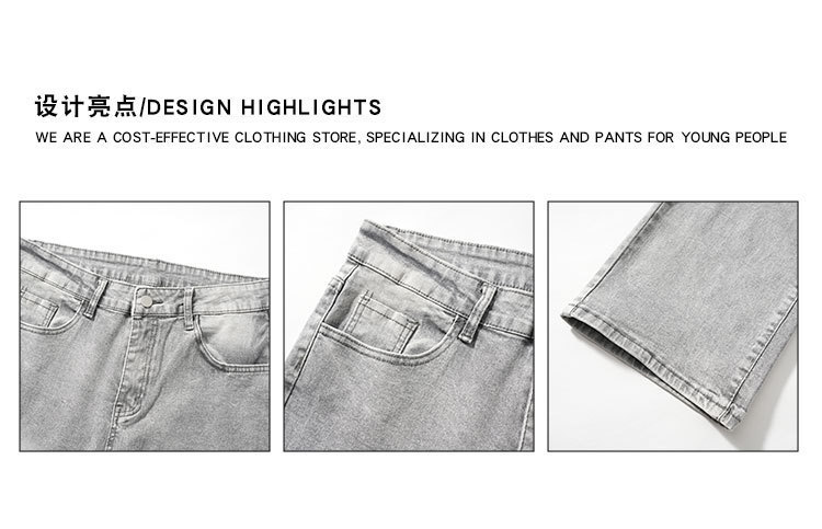 연기가 자욱한 회색 청바지 남성용 미국식 복고풍 분위기 올매치 슬림 핏 유행 스트레이트 트렌디 남성용 롱 팬츠
