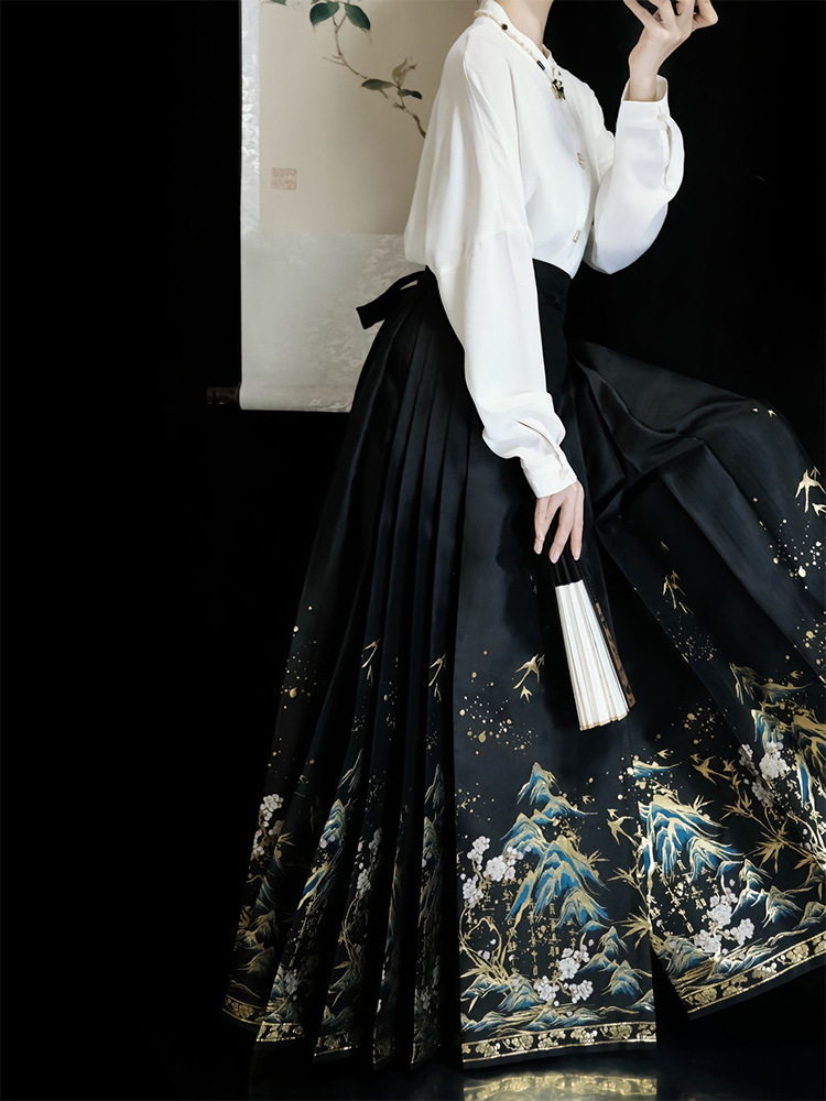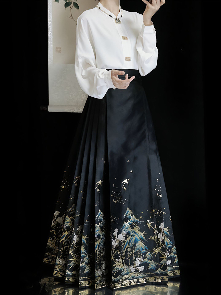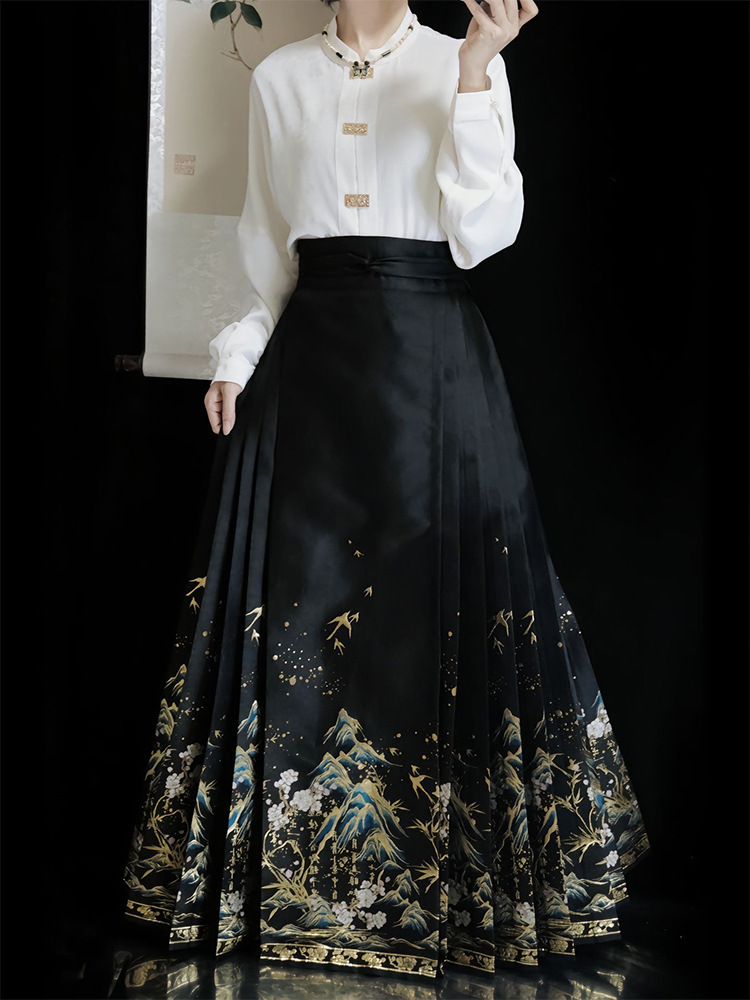 신중국풍 블랙 마면 스커트 상의 세트, 사계절용, 소형 여성용, 중국풍 한복, 2025년 신상스토어 가기