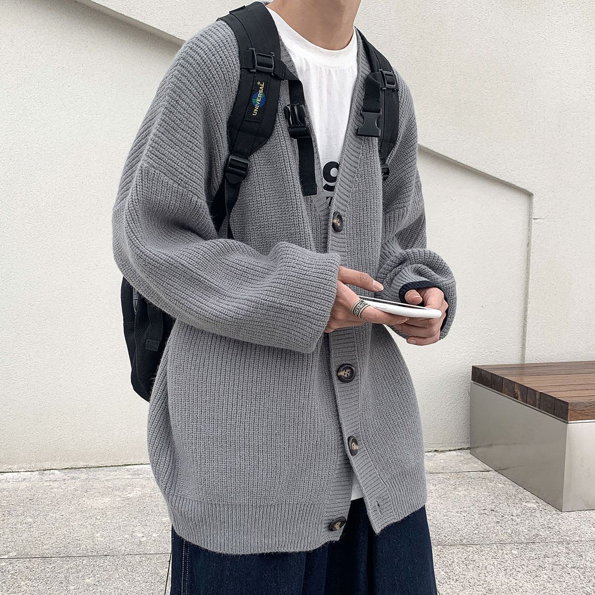 스웨터 남성 가을 새로운 트렌디 한 느슨한 V 넥 니트 카디건 트렌디 브랜드 홍콩 스타일, 학생 다용도 캐주얼 재킷스토어 가기