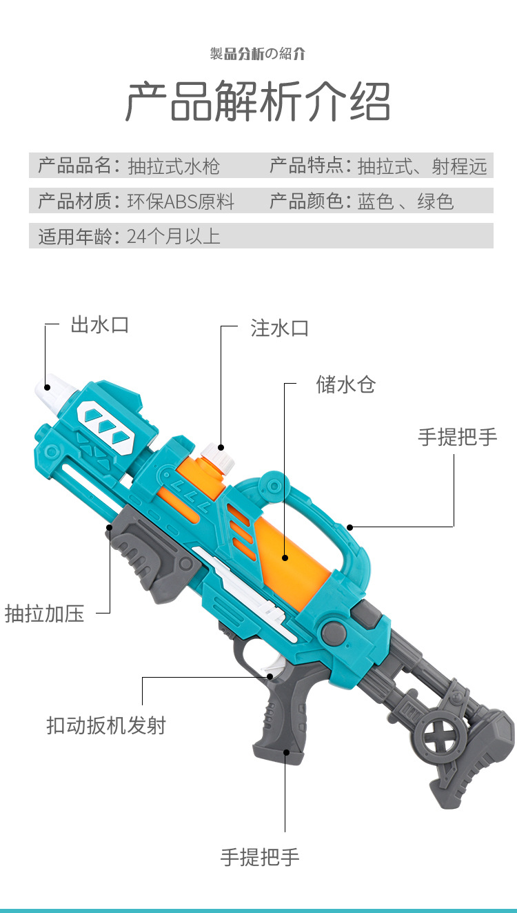 • 녹색 57cm 공간 단일 노즐 물총 [850ml]