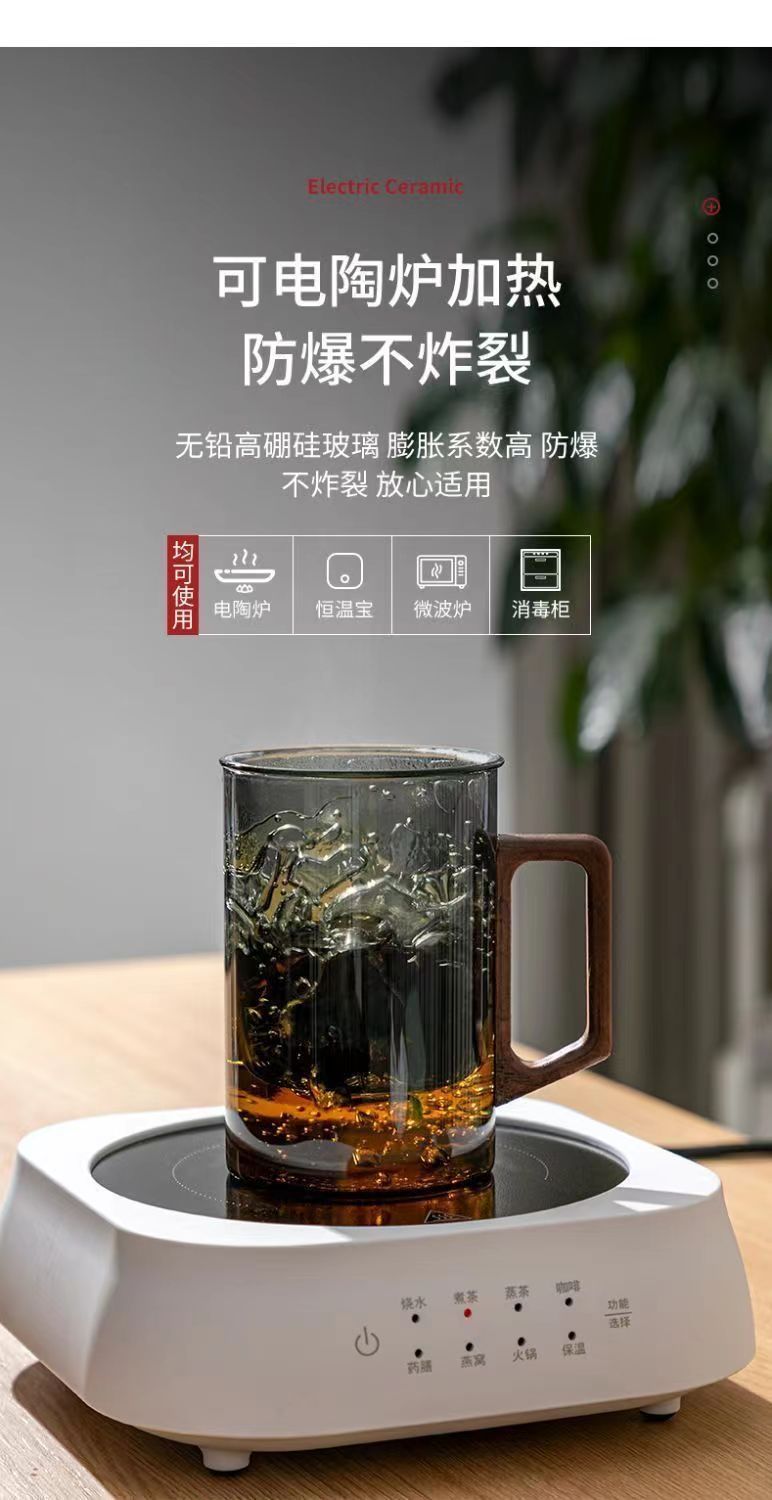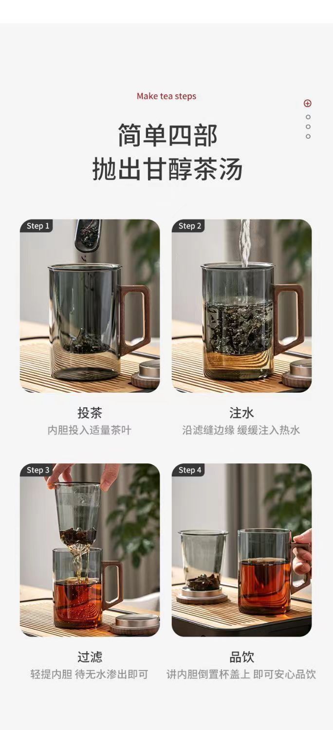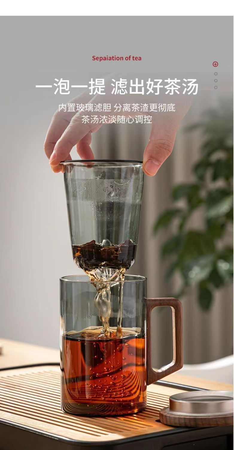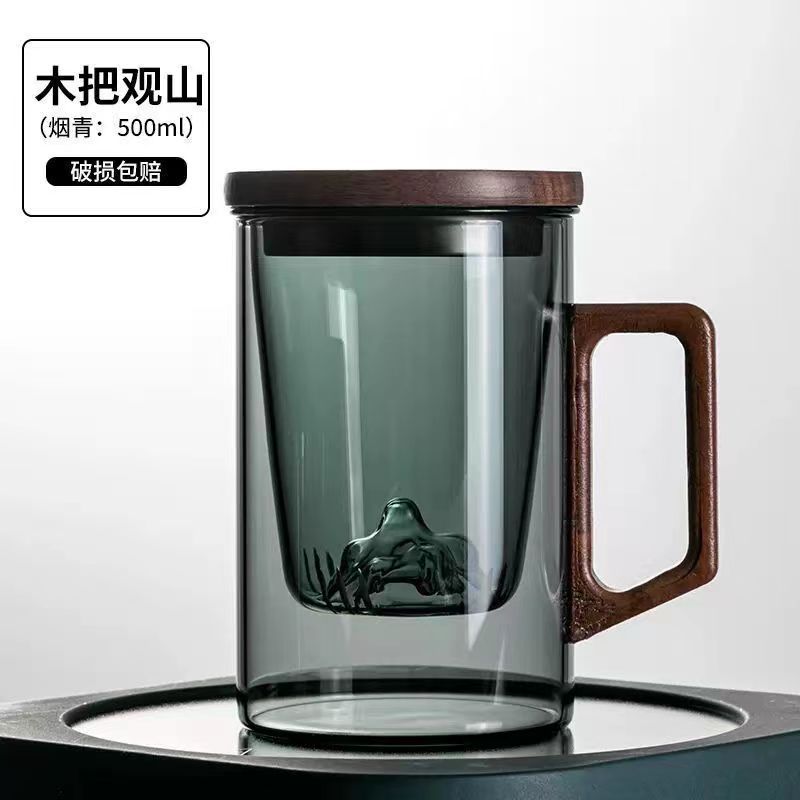 붕규산 유리 물 컵 차 분리 차 컵 사무실 필터 두껍게 Guanshan 컵 대나무 커버 티 컵스토어 가기