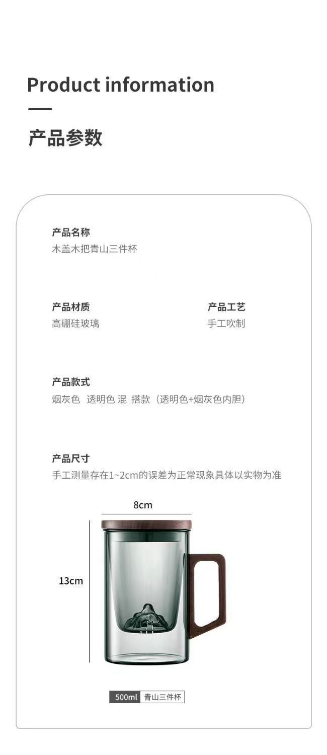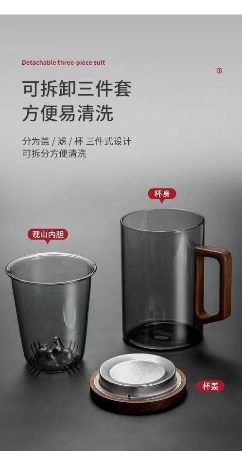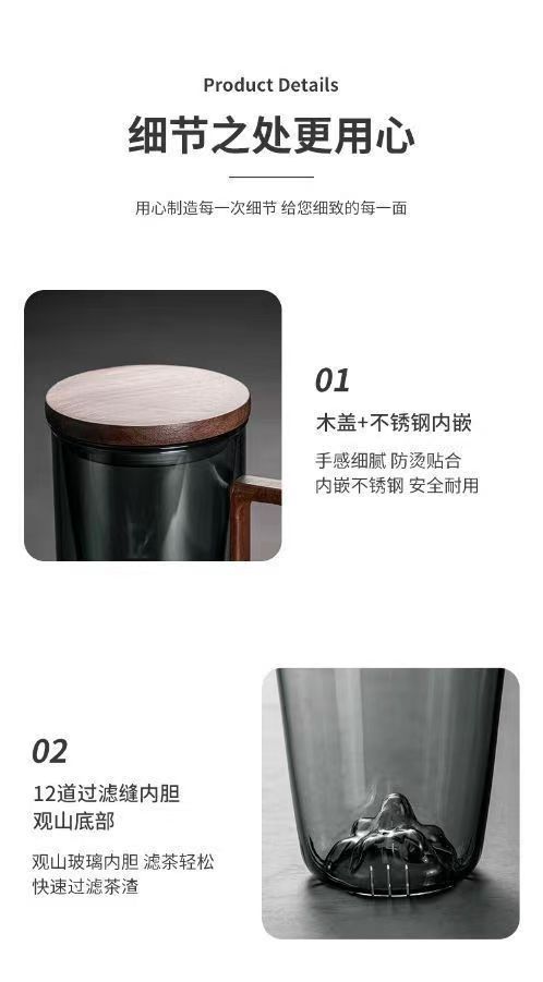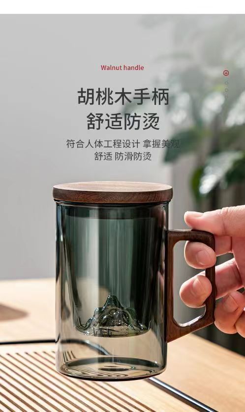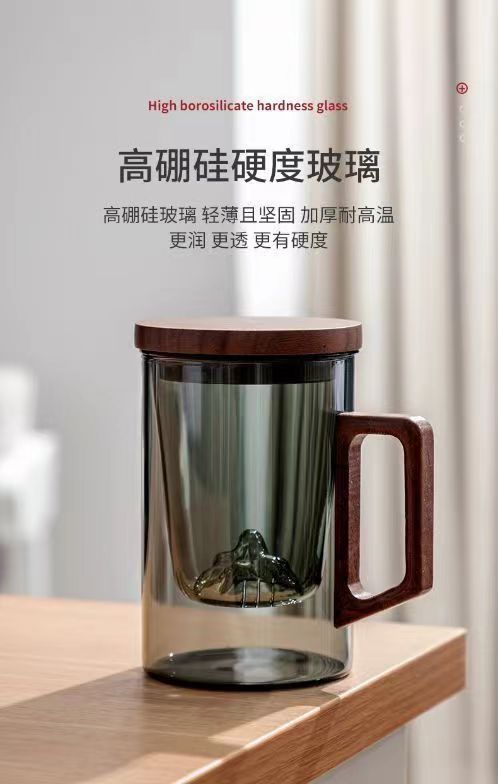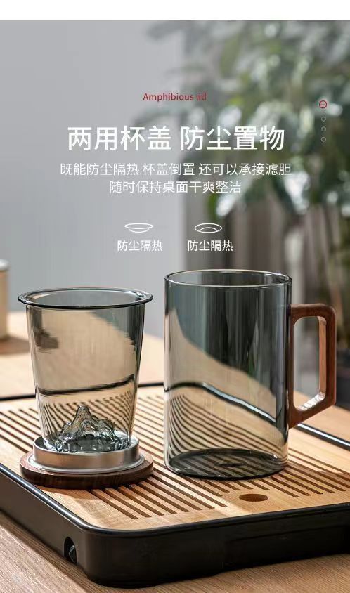 붕규산 유리 물 컵 차 분리 차 컵 사무실 필터 두껍게 Guanshan 컵 대나무 커버 티 컵
