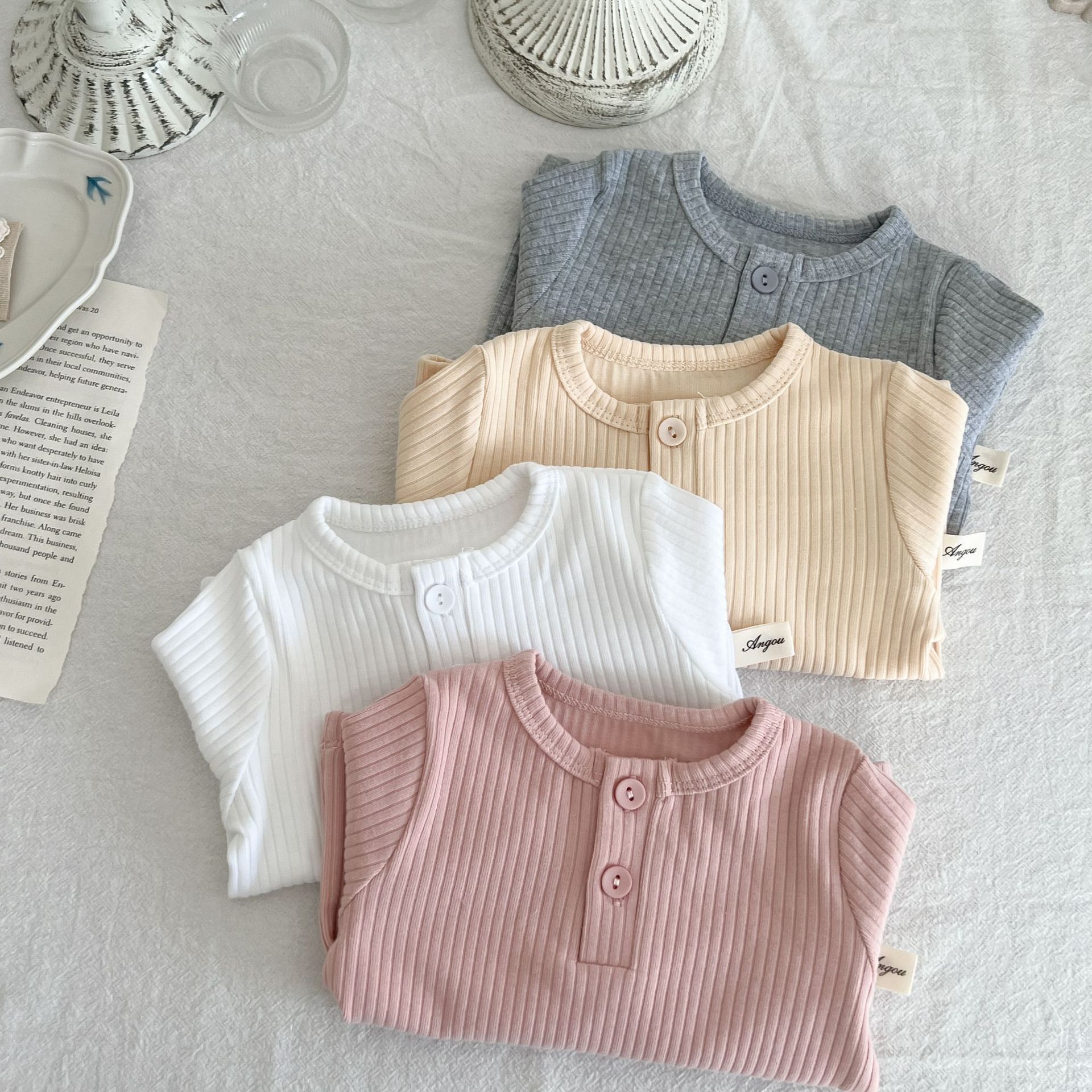 아기 소녀 탄성 구덩이 면화 최고 아기 매치하기 쉬운 티셔츠 한국 스타일 아동복 아기 속옷 봄과 가을 의류스토어 가기