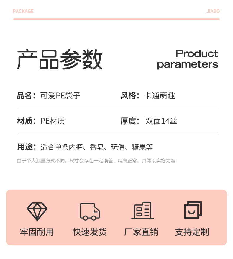 공장 직접 만화 pe ziplock 가방 신선한 귀여운 머리핀 속옷 지퍼 가방 투명 어린이 의류 포장 가방