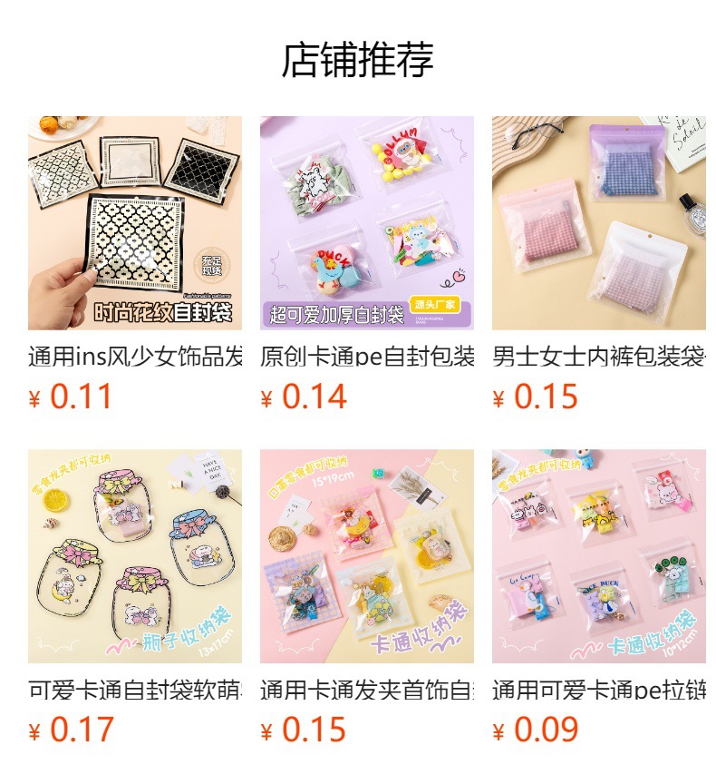 공장 직접 만화 pe ziplock 가방 신선한 귀여운 머리핀 속옷 지퍼 가방 투명 어린이 의류 포장 가방스토어 가기