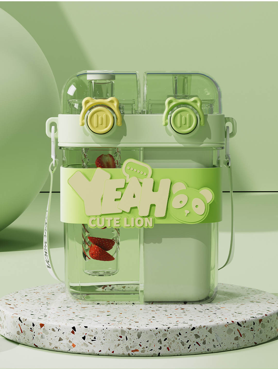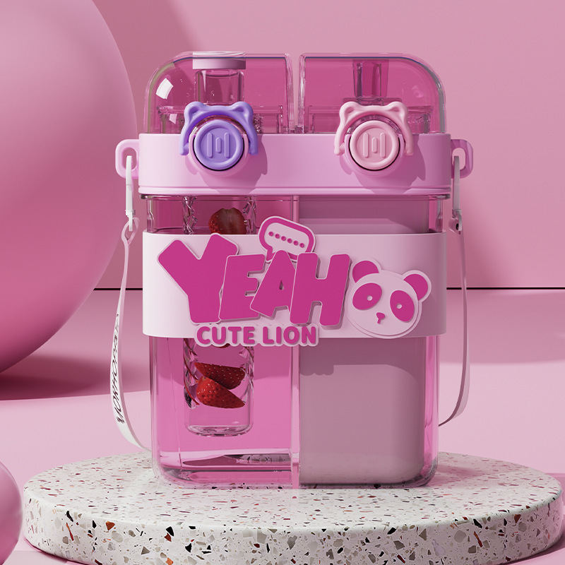 대용량 더블 드루킹 컵 어린이 워터 컵 학생 밀짚 마시는 컵 만화 높은 색상 가치 야외 기내 컵