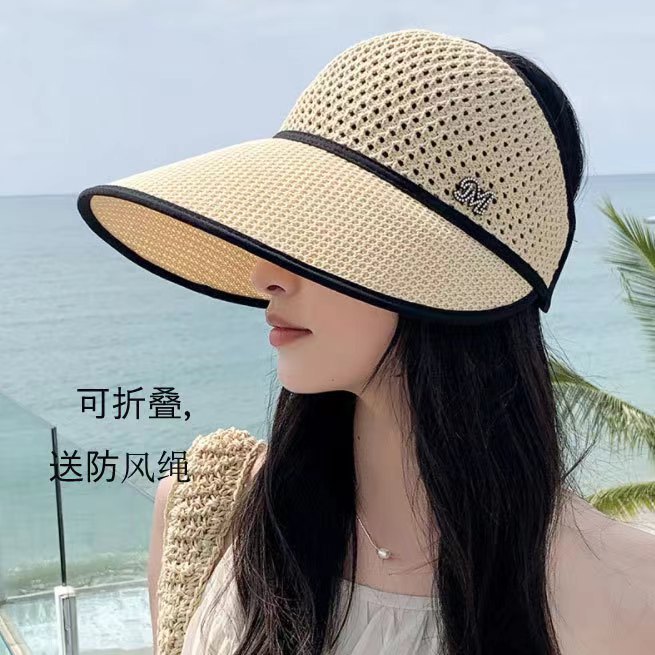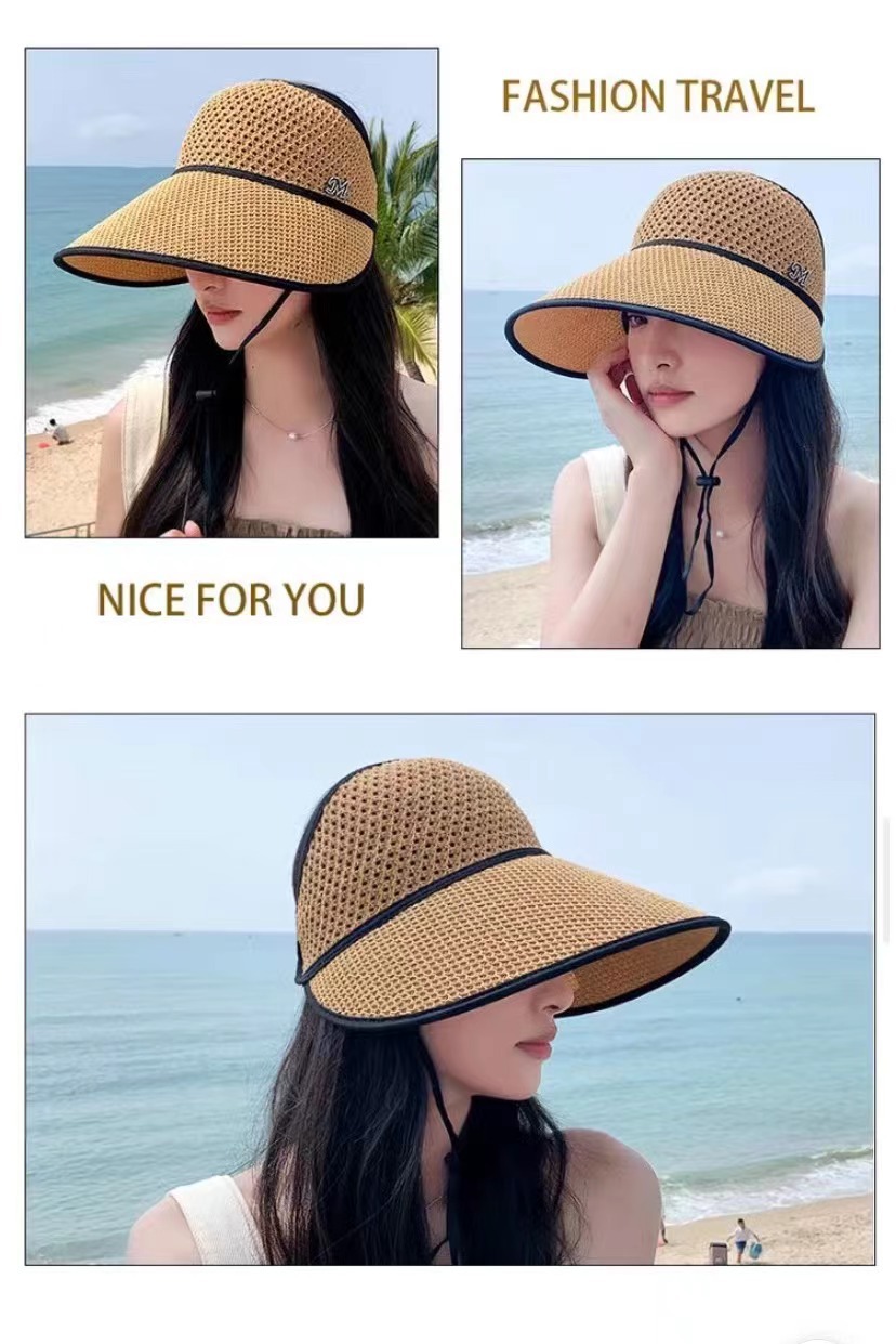 여름 모자 중년 및 노인 여성 어머니 태양 모자 커버 얼굴 태양 모자 얇은 통기성 큰 테두리 빈 탑 태양 모자스토어 가기