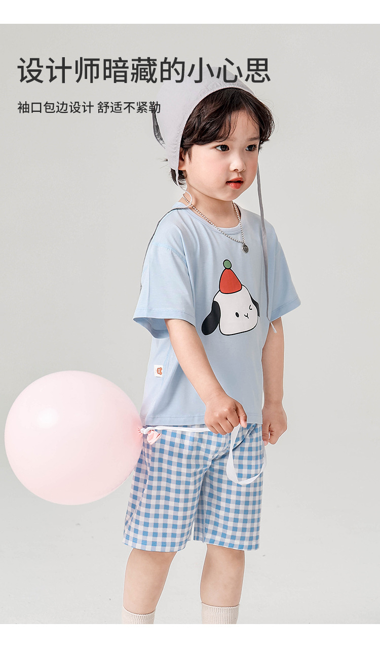 ZYZ 디자이너 소년 잠옷 투피스 만화 어린이 홈웨어 통기성 클래스 야셀 반소매 세트