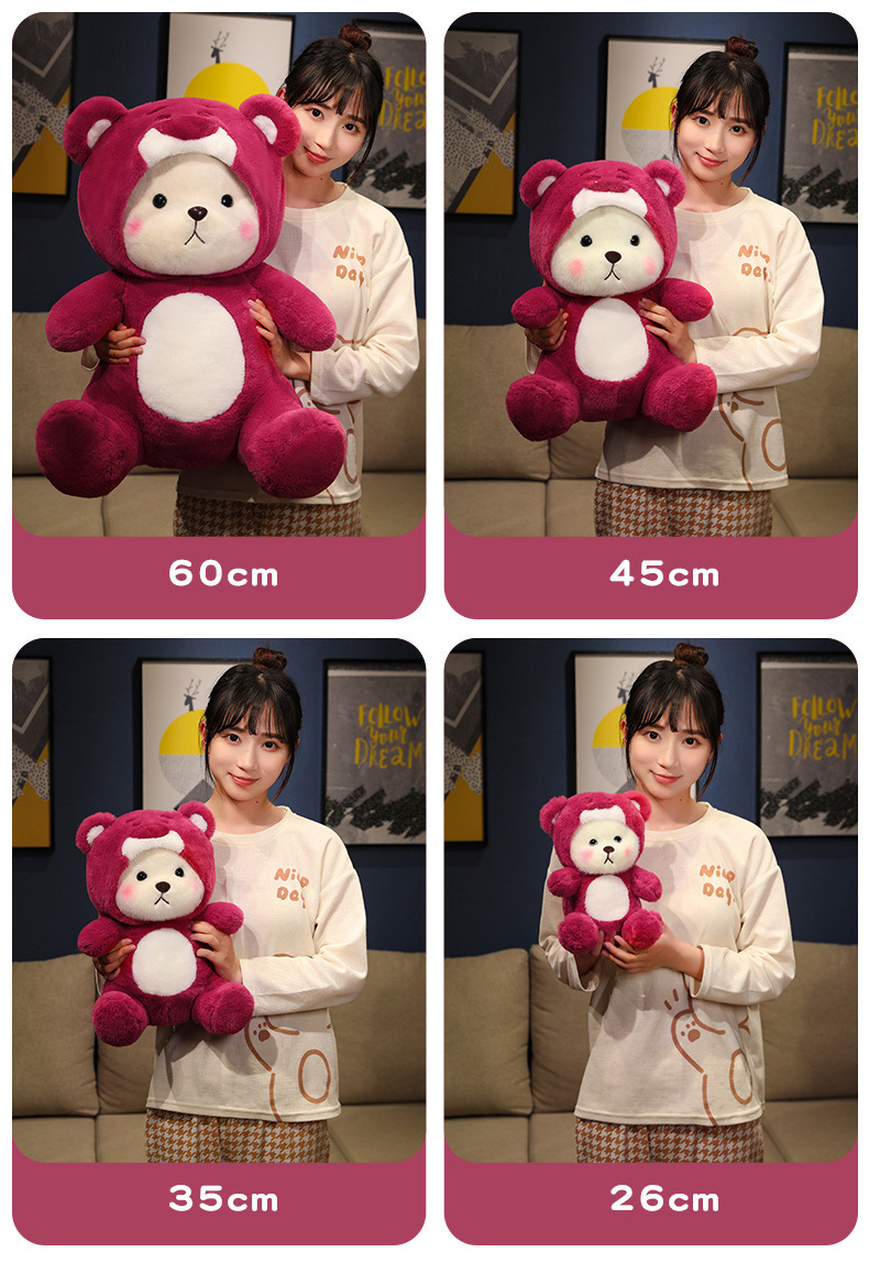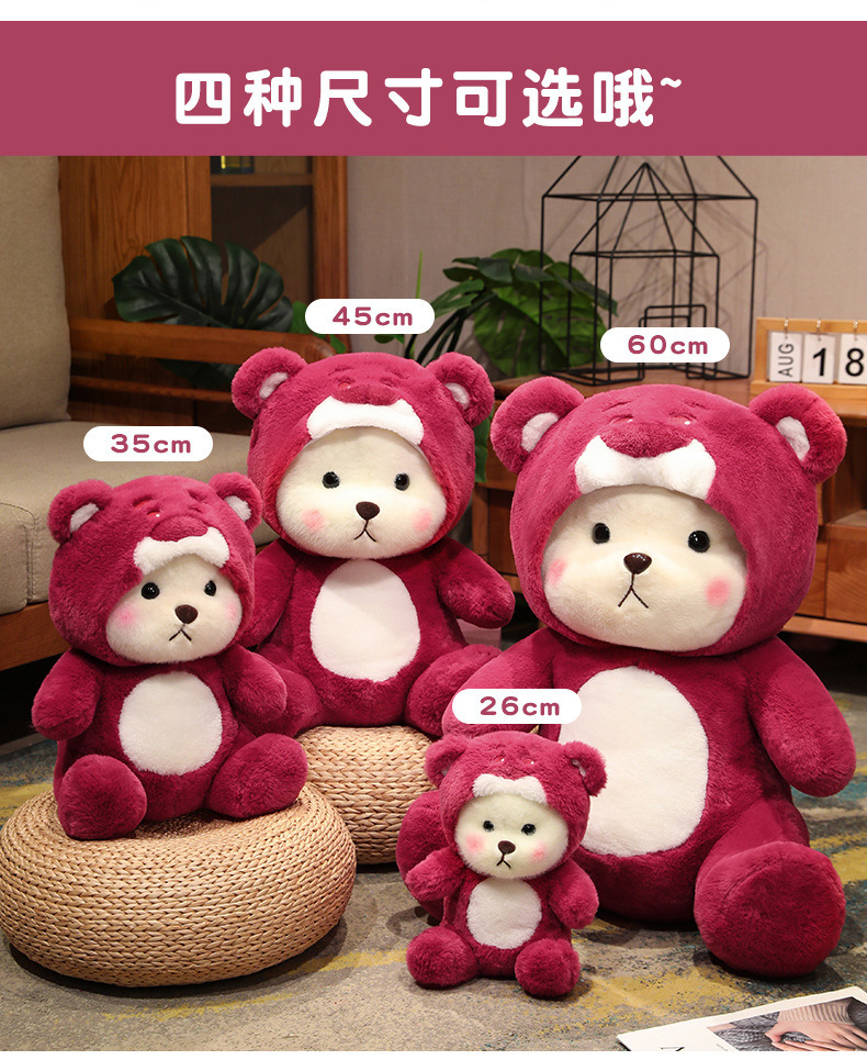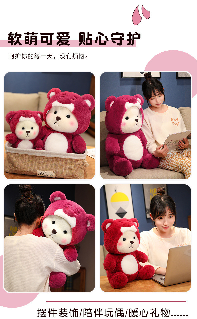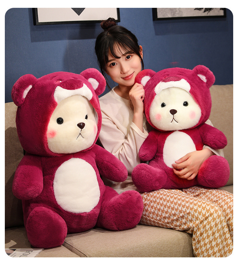 온라인 유명 딸기 곰 인형 봉제 인형 변형 곰 잠자는 인형 베개 소녀 생일 선물 인형스토어 가기