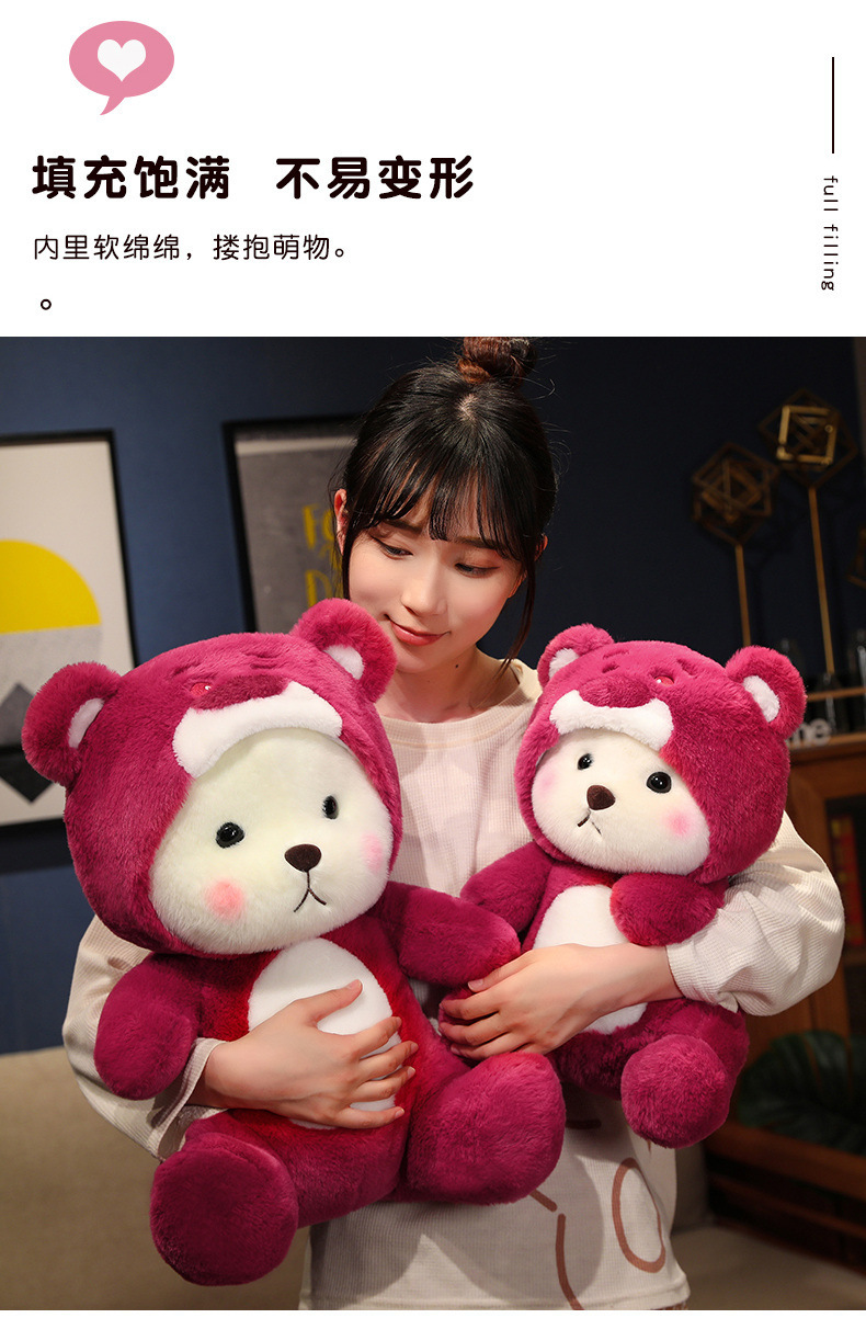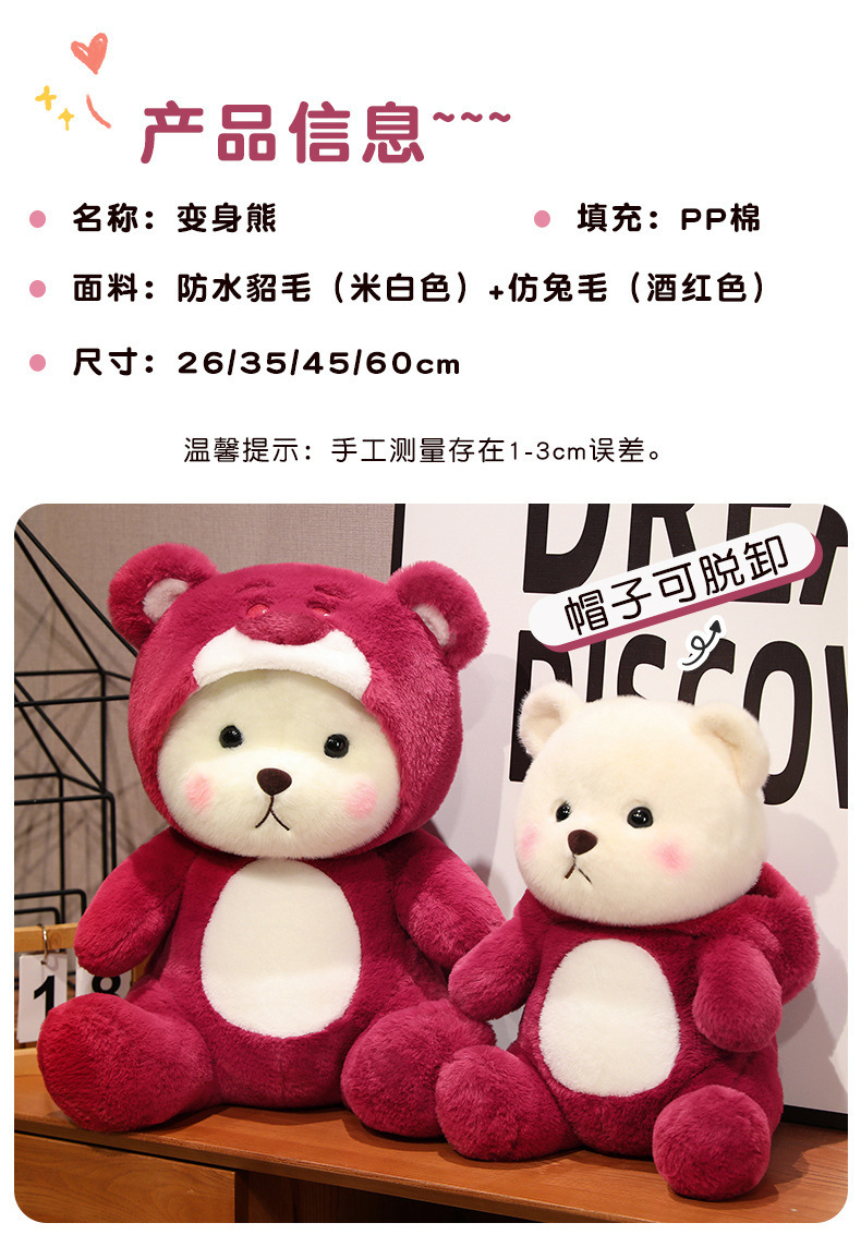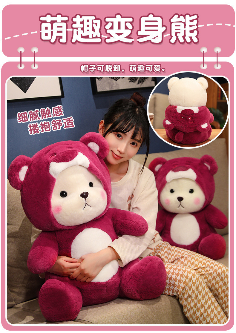 온라인 유명 딸기 곰 인형 봉제 인형 변형 곰 잠자는 인형 베개 소녀 생일 선물 인형