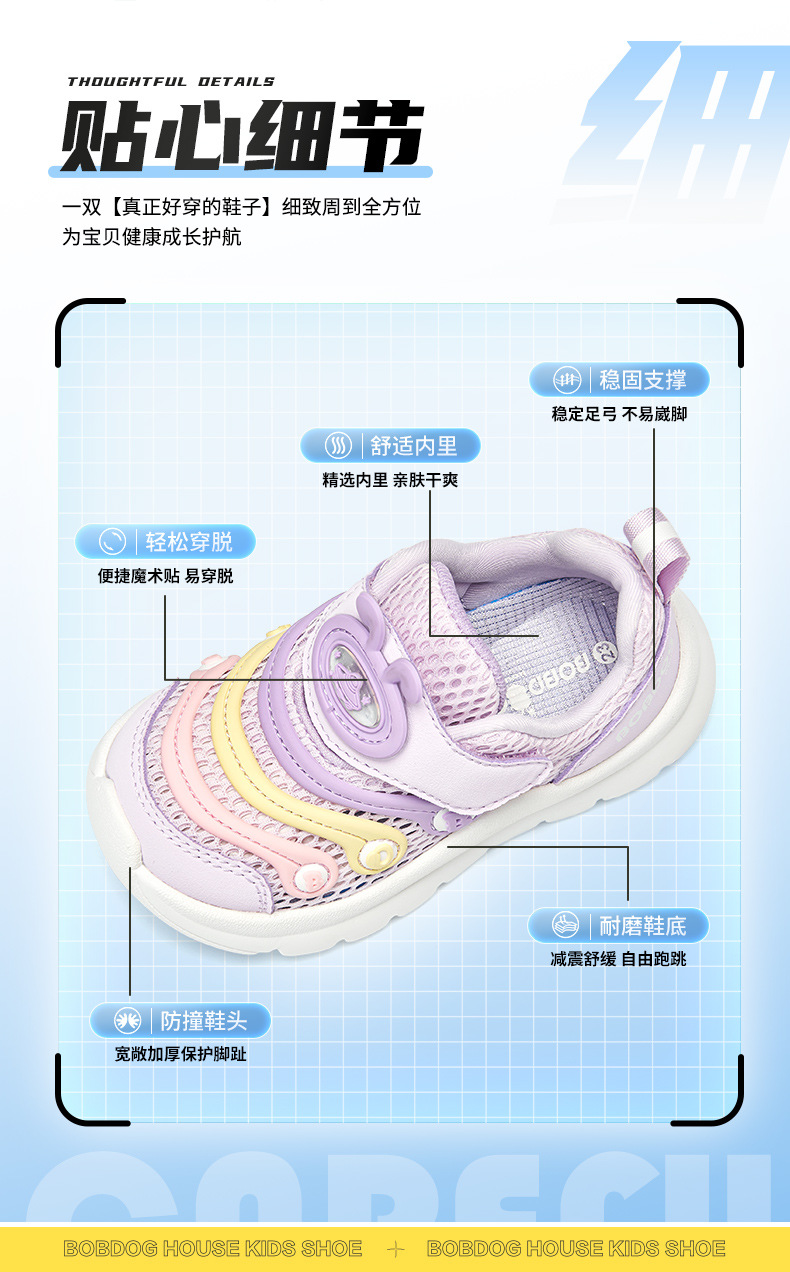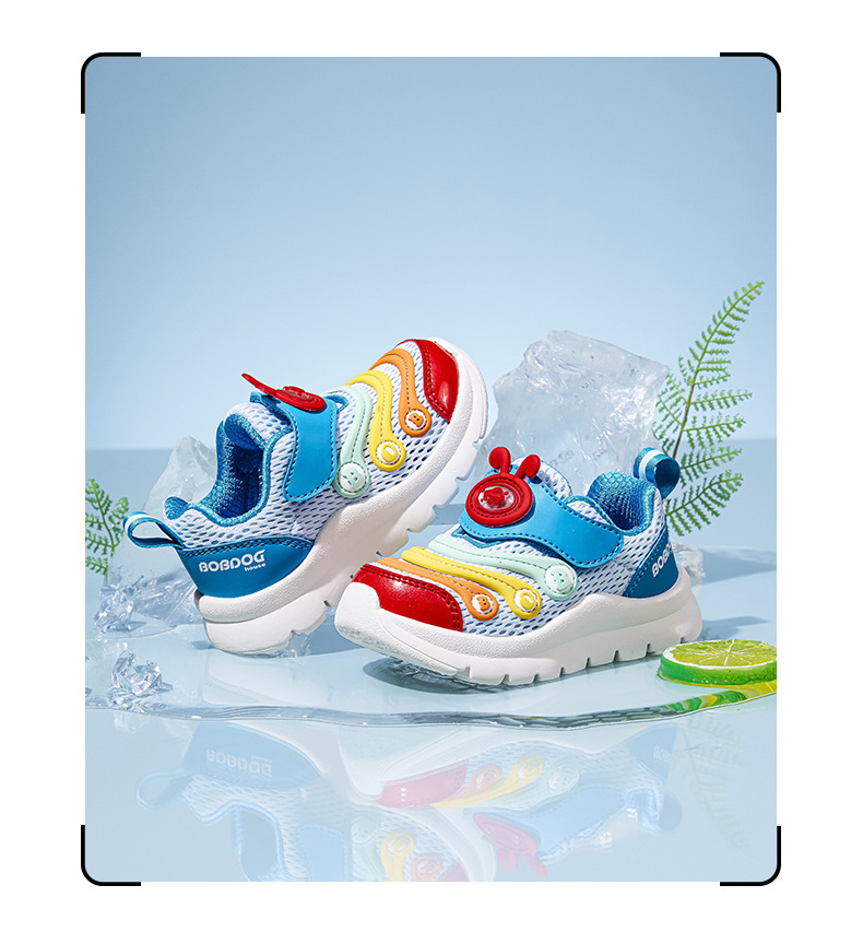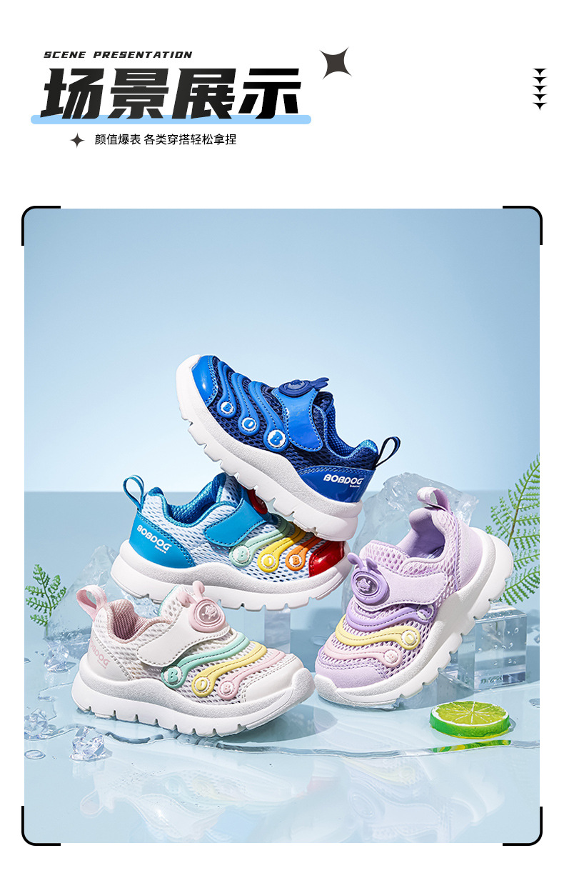 Babdou 2024 봄과 여름 경량 어린이 통기성 더블 메쉬 캐터필러 어린이 신발 남성과 여성의 미끄럼 방지 아동용 운동화스토어 가기