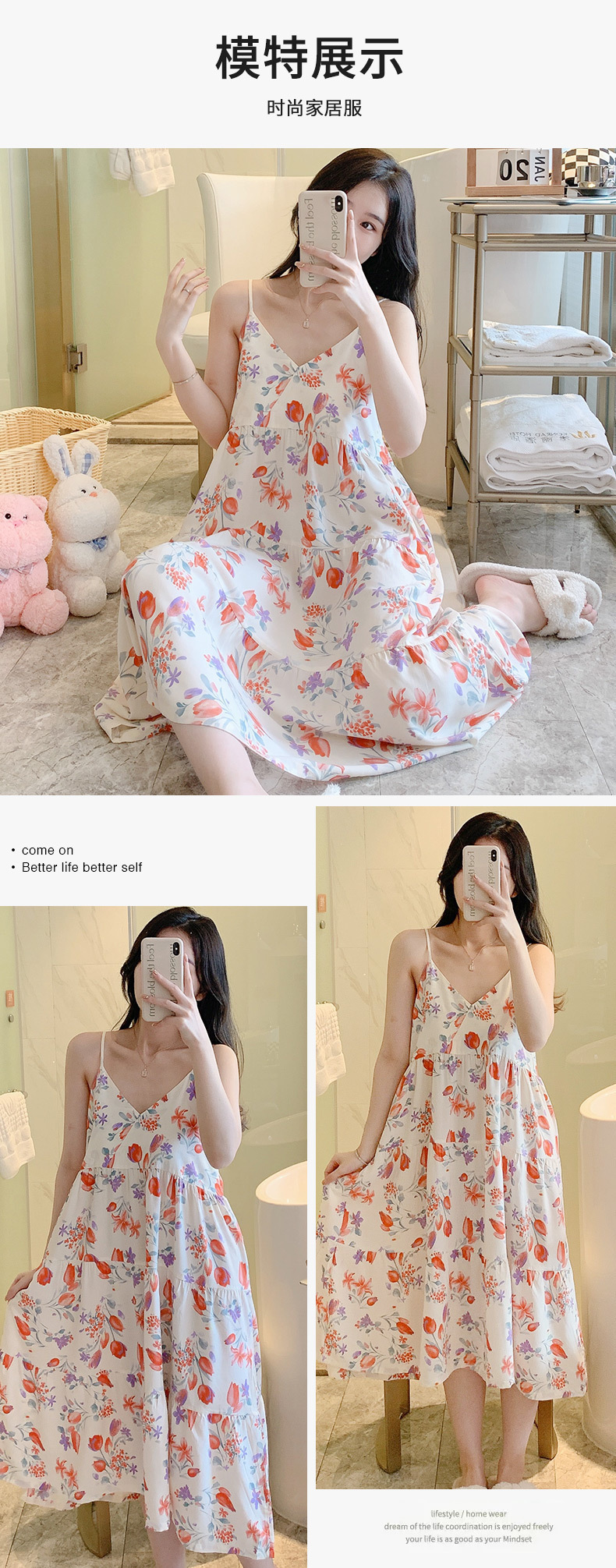 2026년 신상 여름 솔리드 컬러 V넥 면 실크 슬립 드레스, 루즈핏 대형 사이즈 멜빵 슬립 드레스, 여성 홈웨어, 외출복으로도 가능