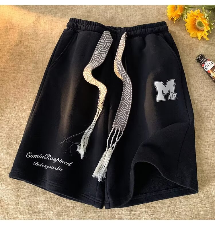 2024 뜨거운 판매 인기있는 반바지 남성 여름 얇은 미국 하이 스트리트 트렌디 반바지 느슨한 스포츠 캐주얼 중간 바지
