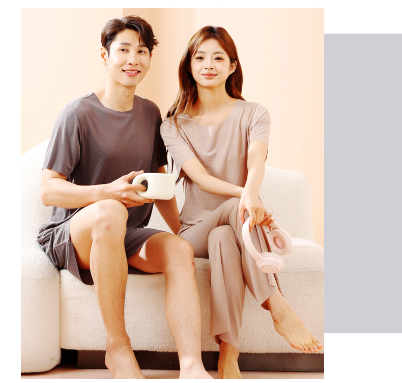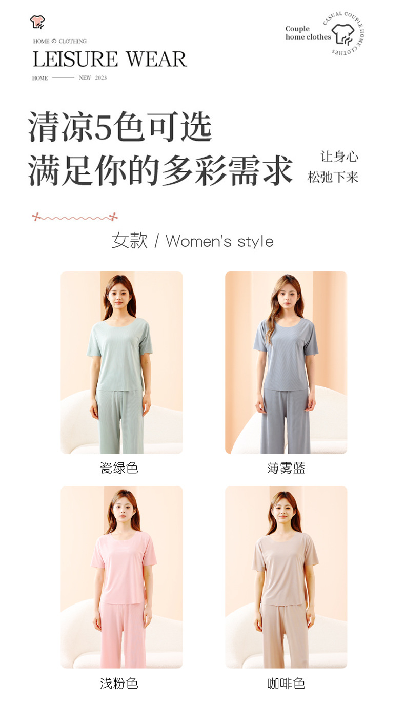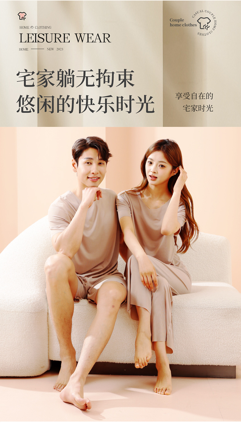 TikTok Quick Hands 인터넷 연예인 느슨한 여성 커플 잠옷 아이스 실크 투피스 캐주얼 홈 의류 여름 파자마 여성 여름스토어 가기